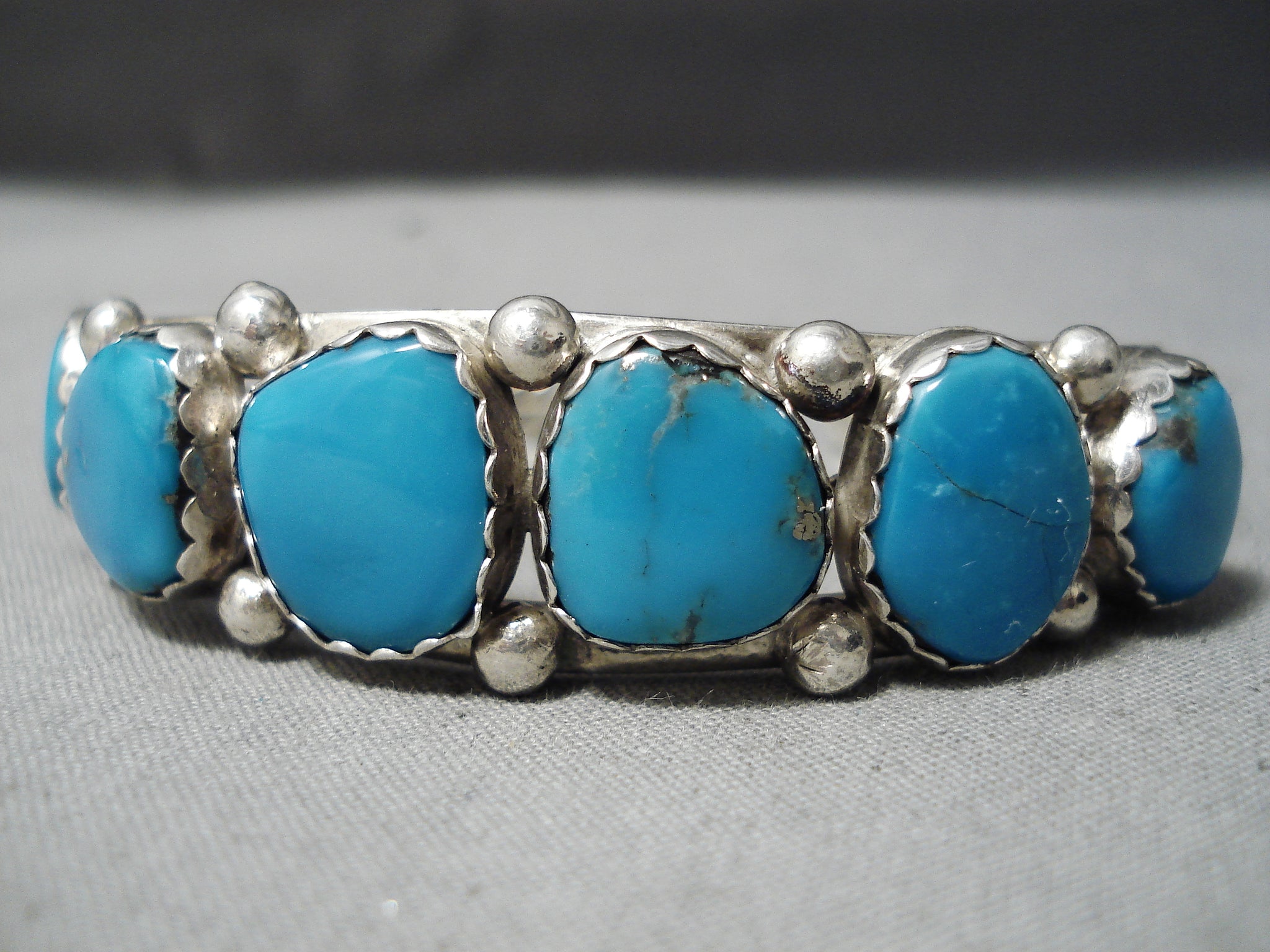 Stunning Vintage Native American Navajo Blue Gem Turquoise Sterling Silver Bracelet Old
