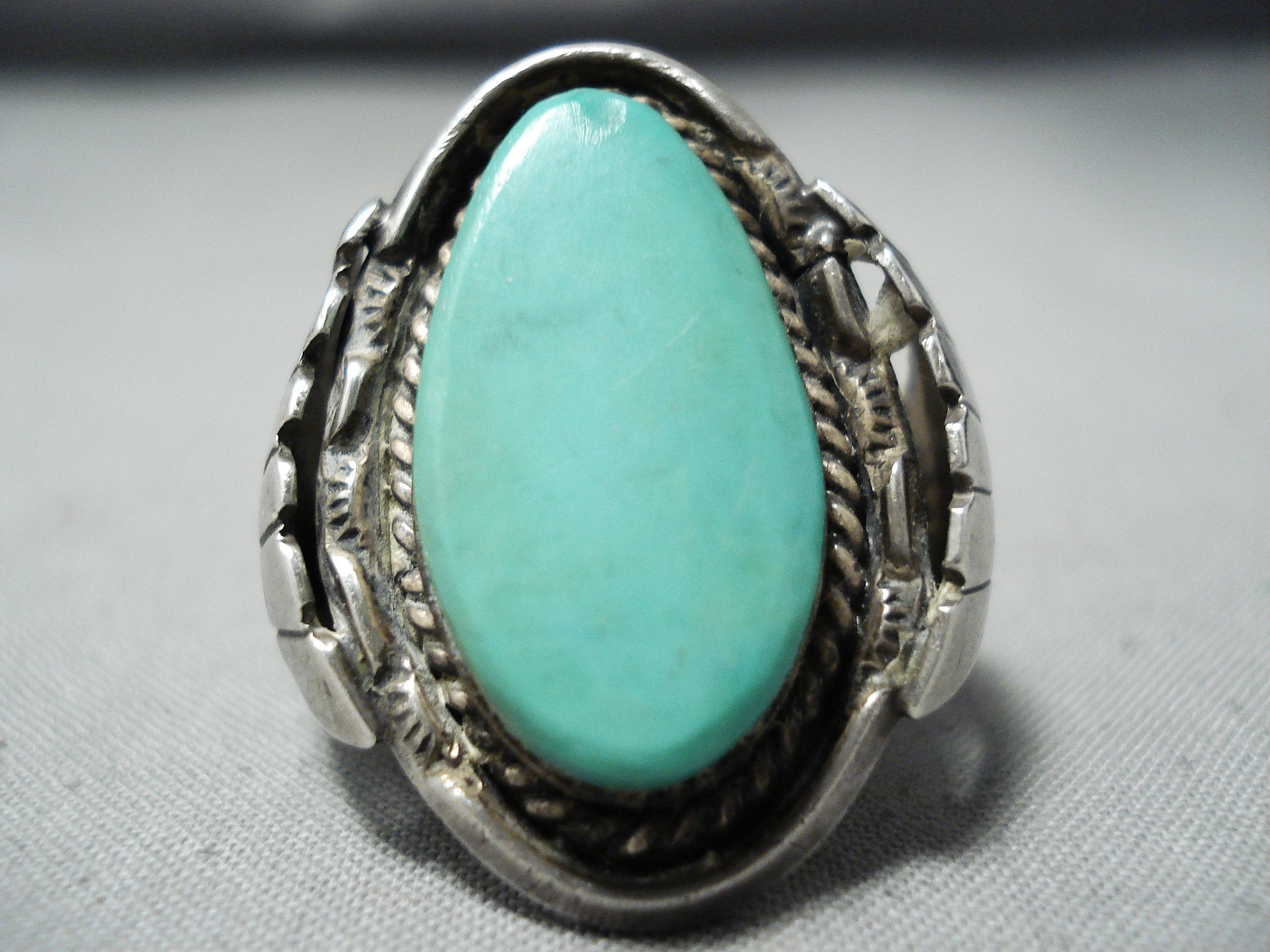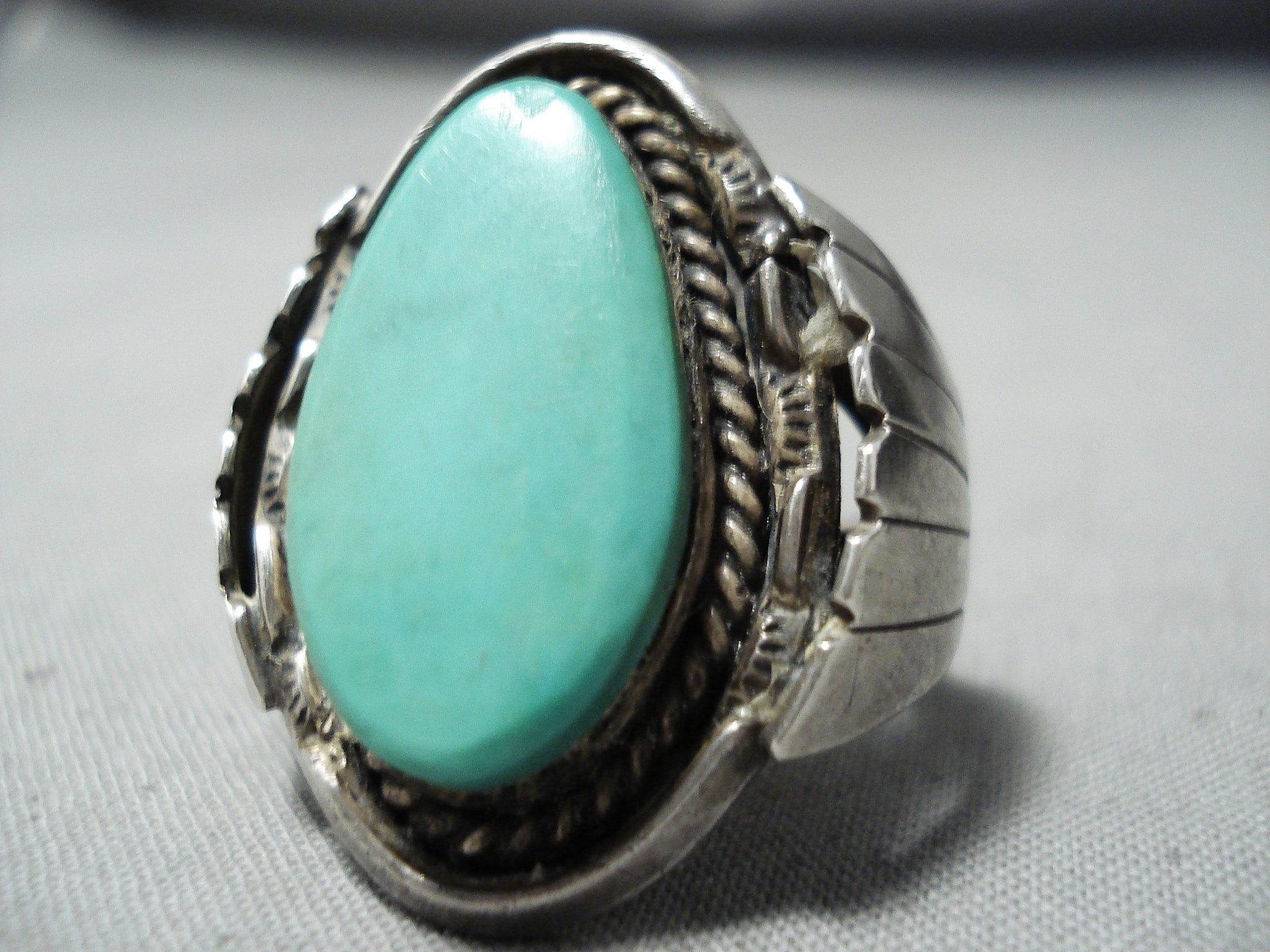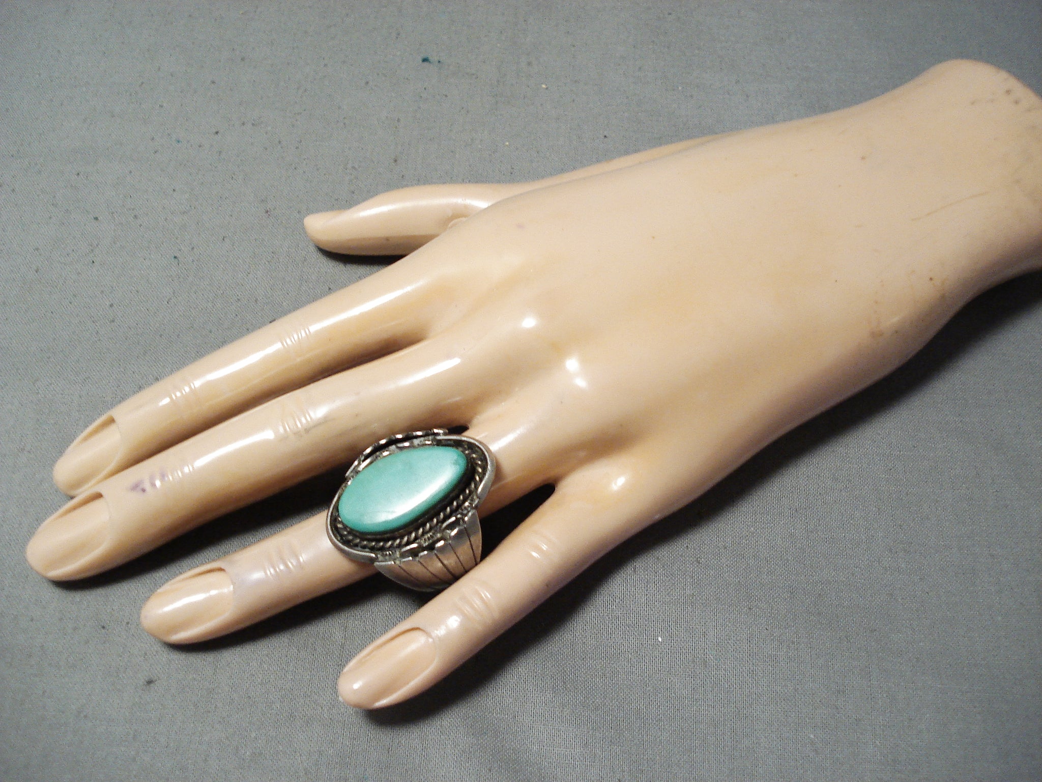Stunning Vintage Native American Navajo Blue Turquoise Flank Sterling Silver Ring Old