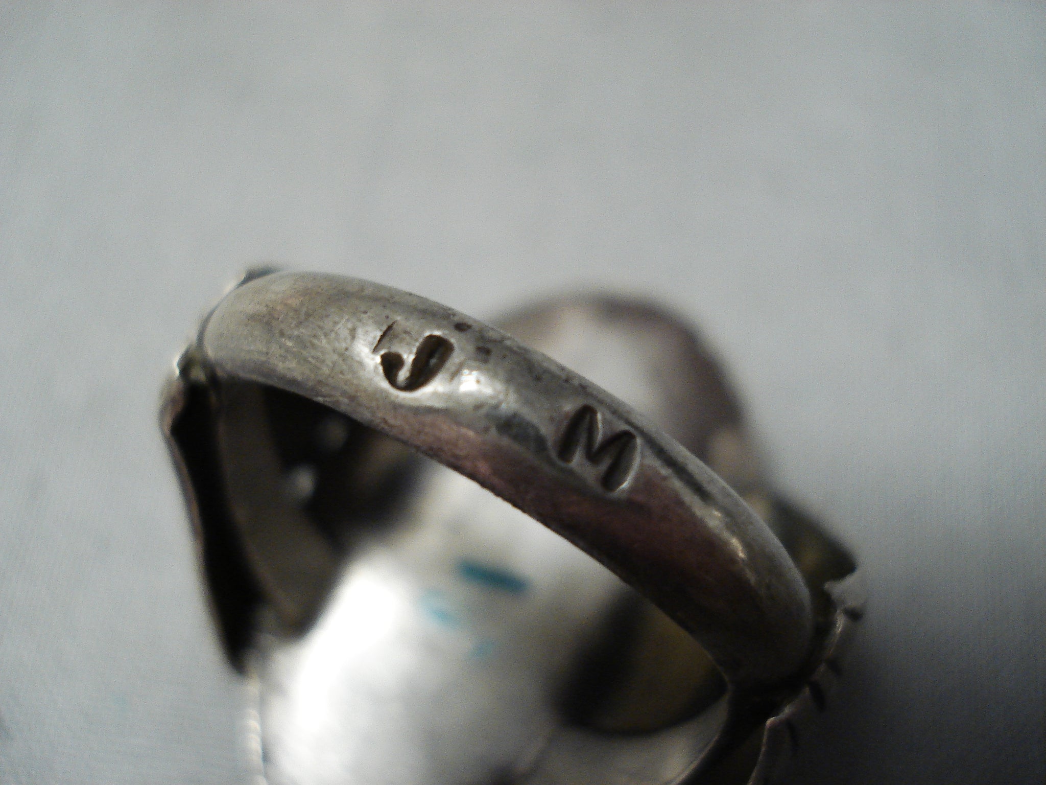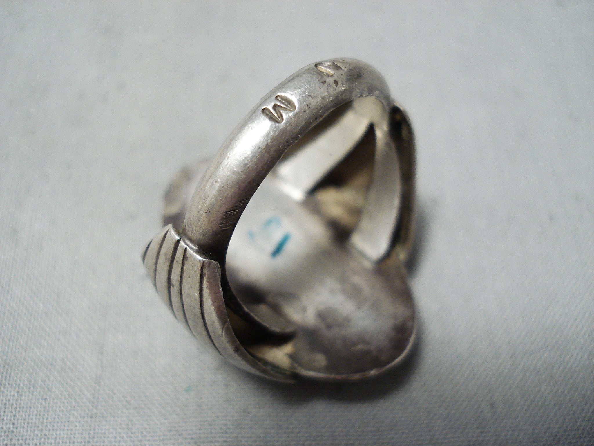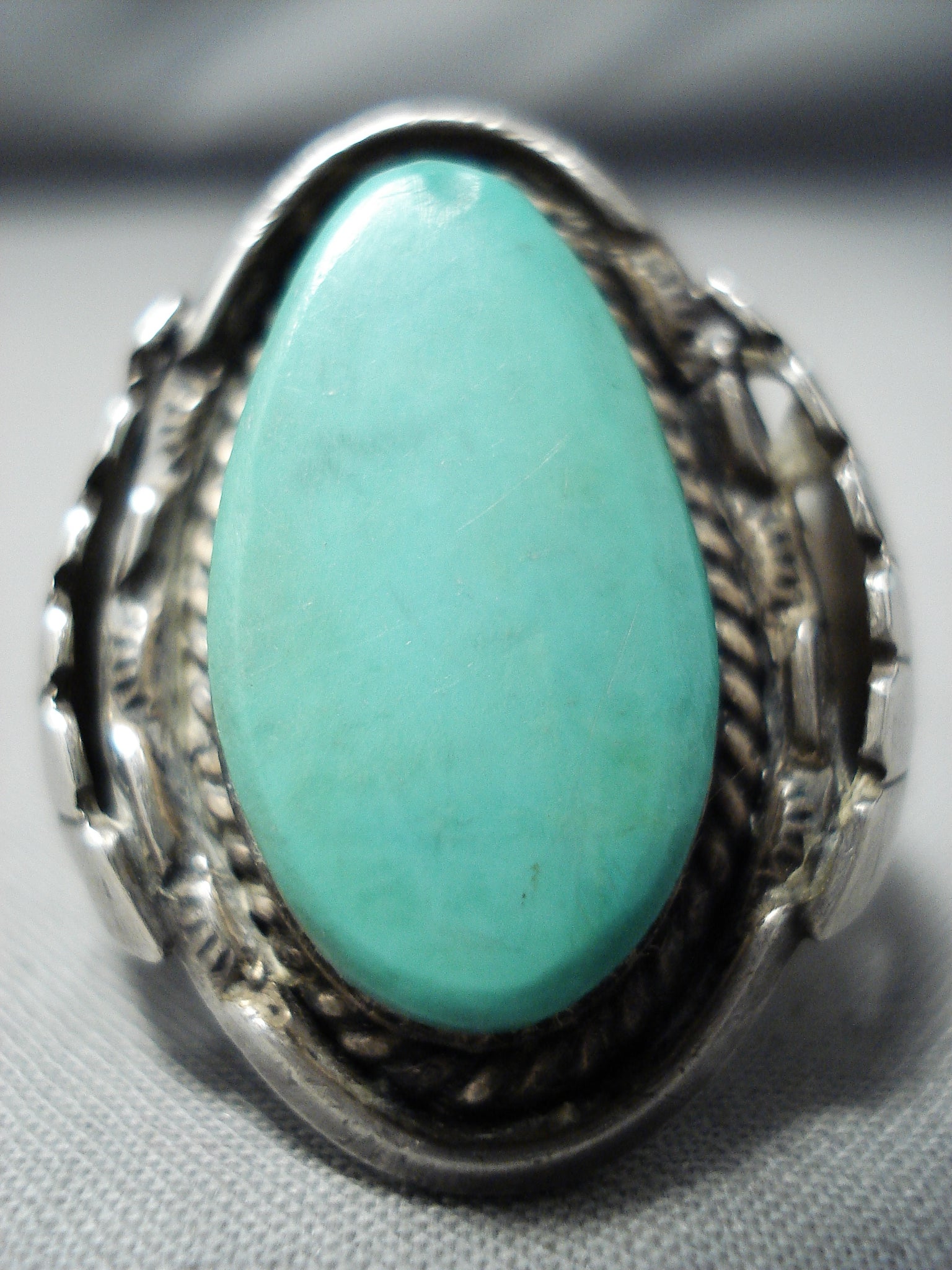 Stunning Vintage Native American Navajo Blue Turquoise Flank Sterling Silver Ring Old