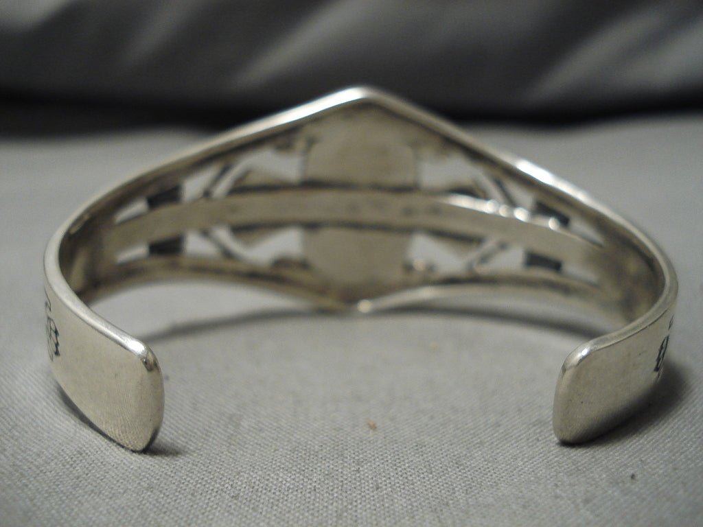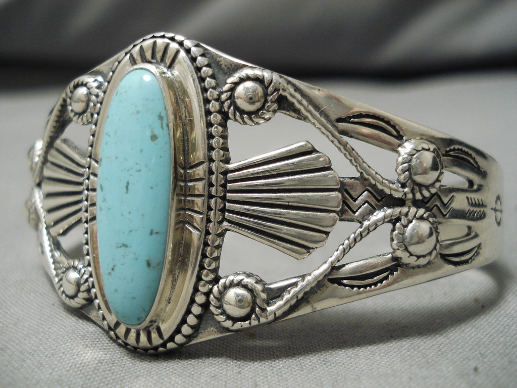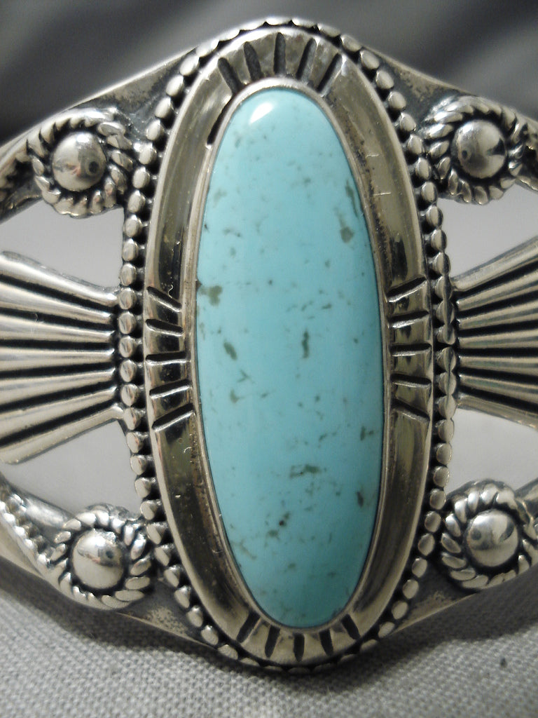 Stunning Vintage Native American Navajo Domed Turquoise Sterling Silver Bracelet Old