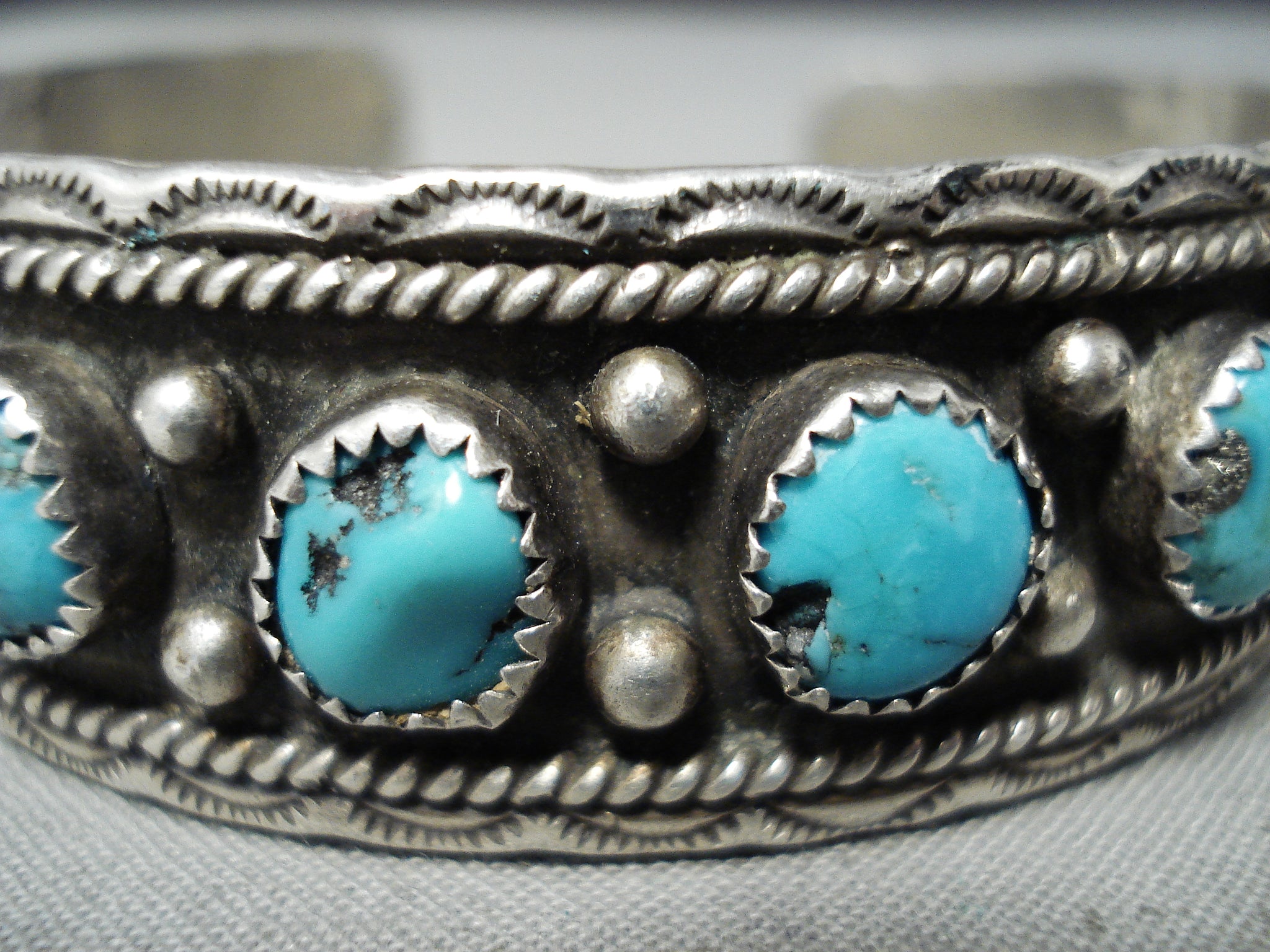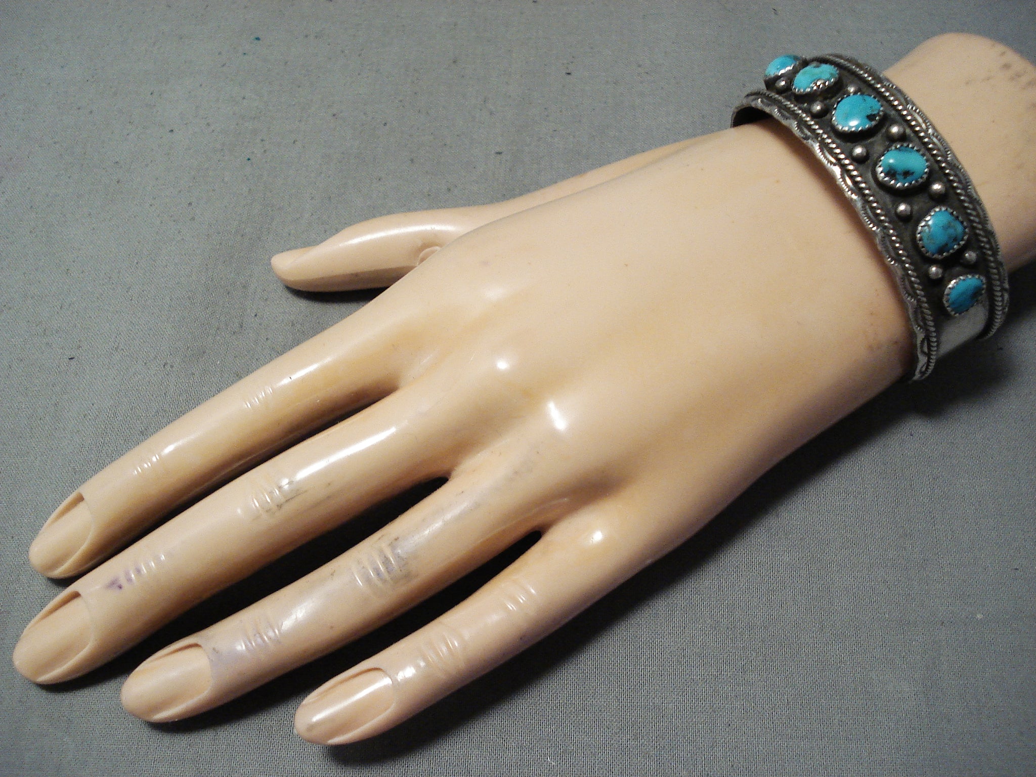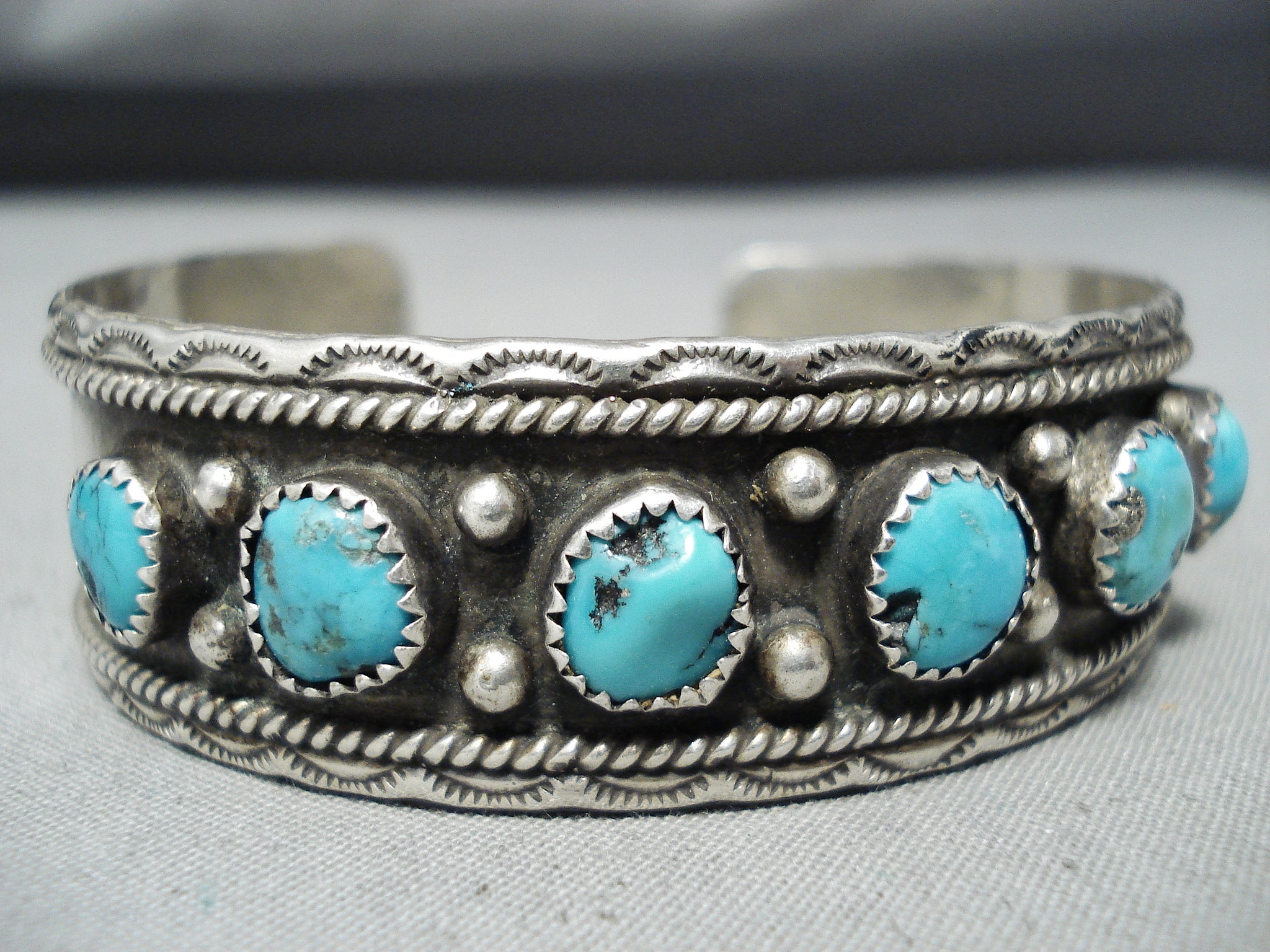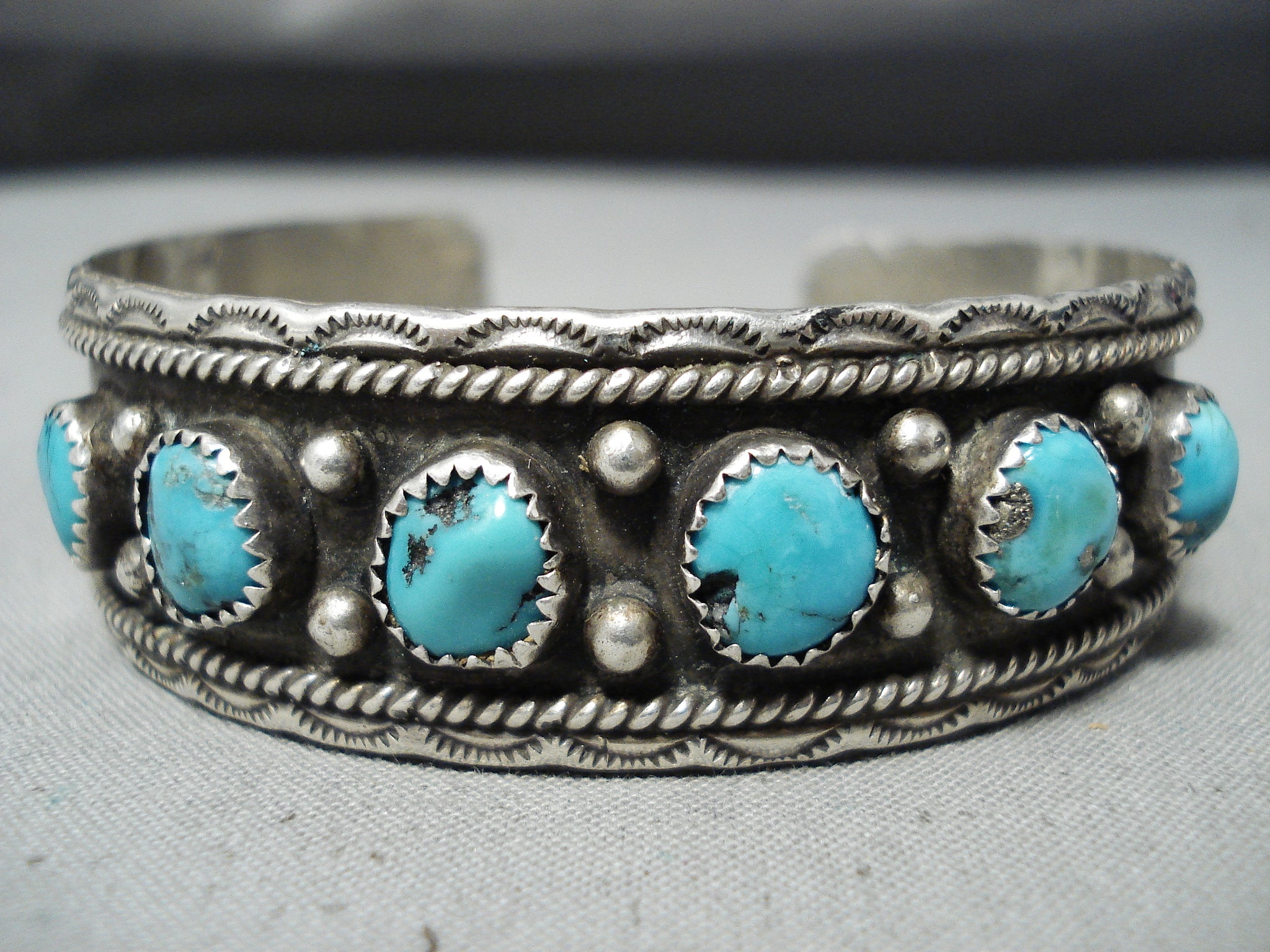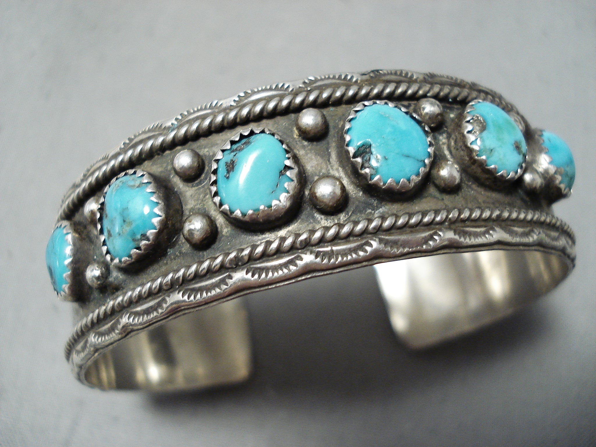 Stunning Vintage Native American Navajo Old Kingman Turquoise Sterling Silver Bracelet