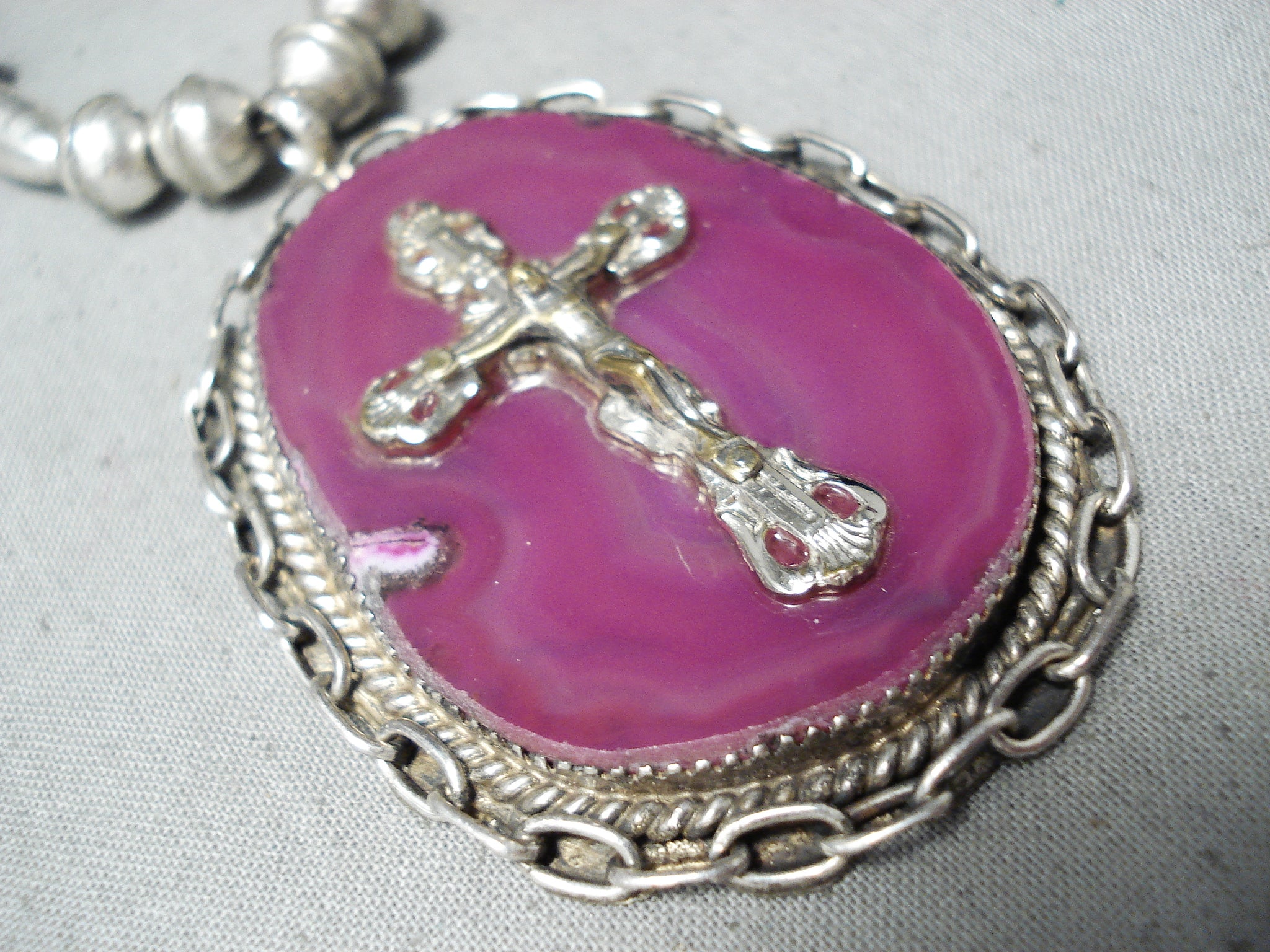 Stunning Vintage Native American Navajo Purple Jasper Sterling Silver Necklace Old