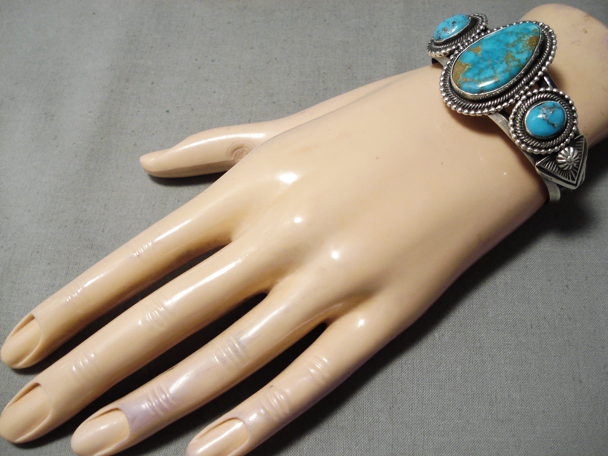 Stunning Vintage Native American Navajo Royston & Old Kingman Turquoise Silver Bracelet