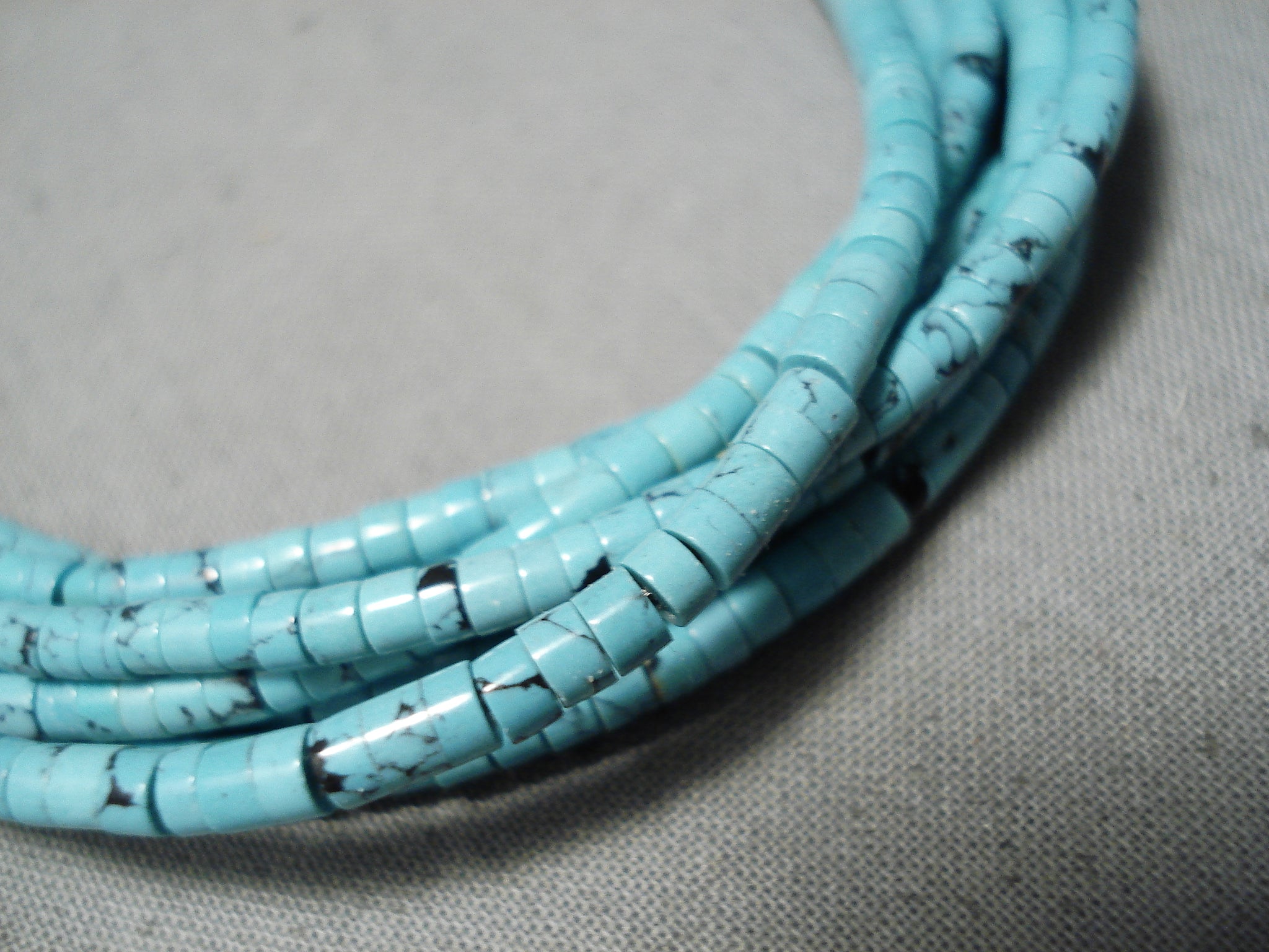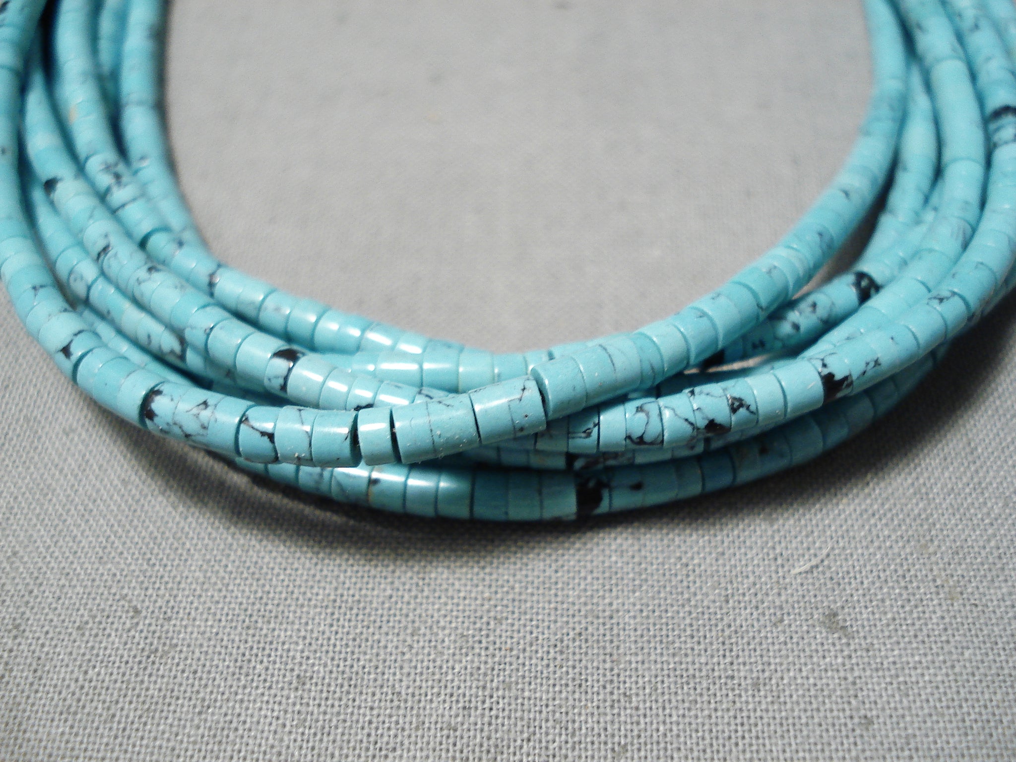 Stunning Vintage Native American Navajo Turquoise Heishi Sterling Silver Drum Necklace