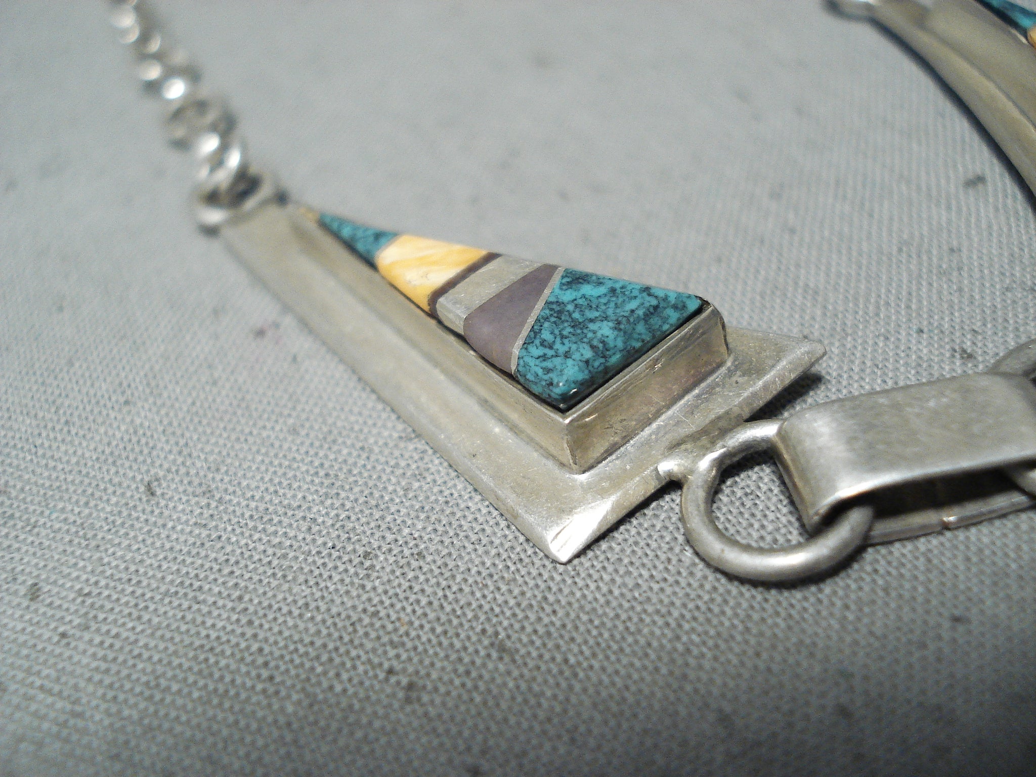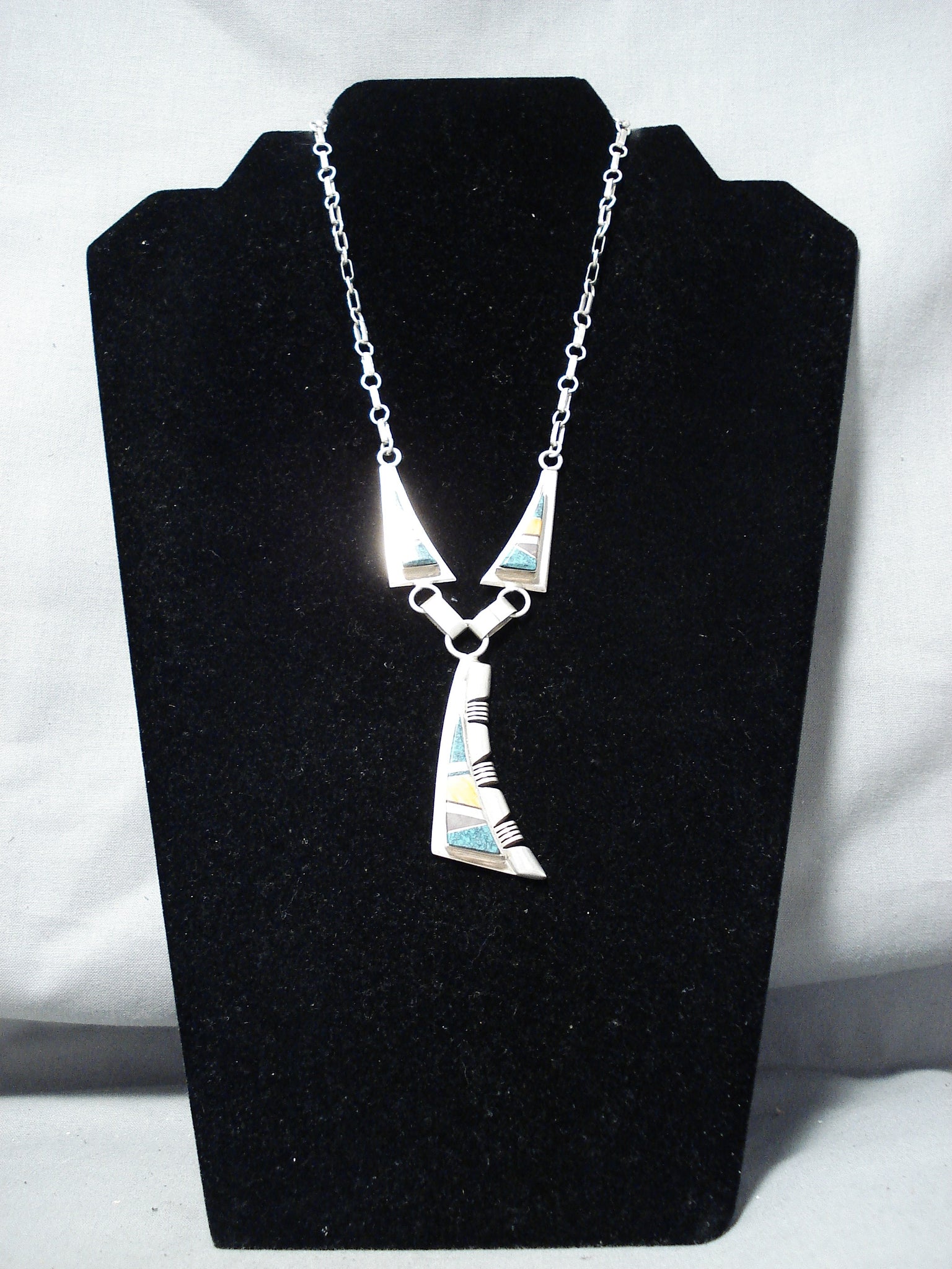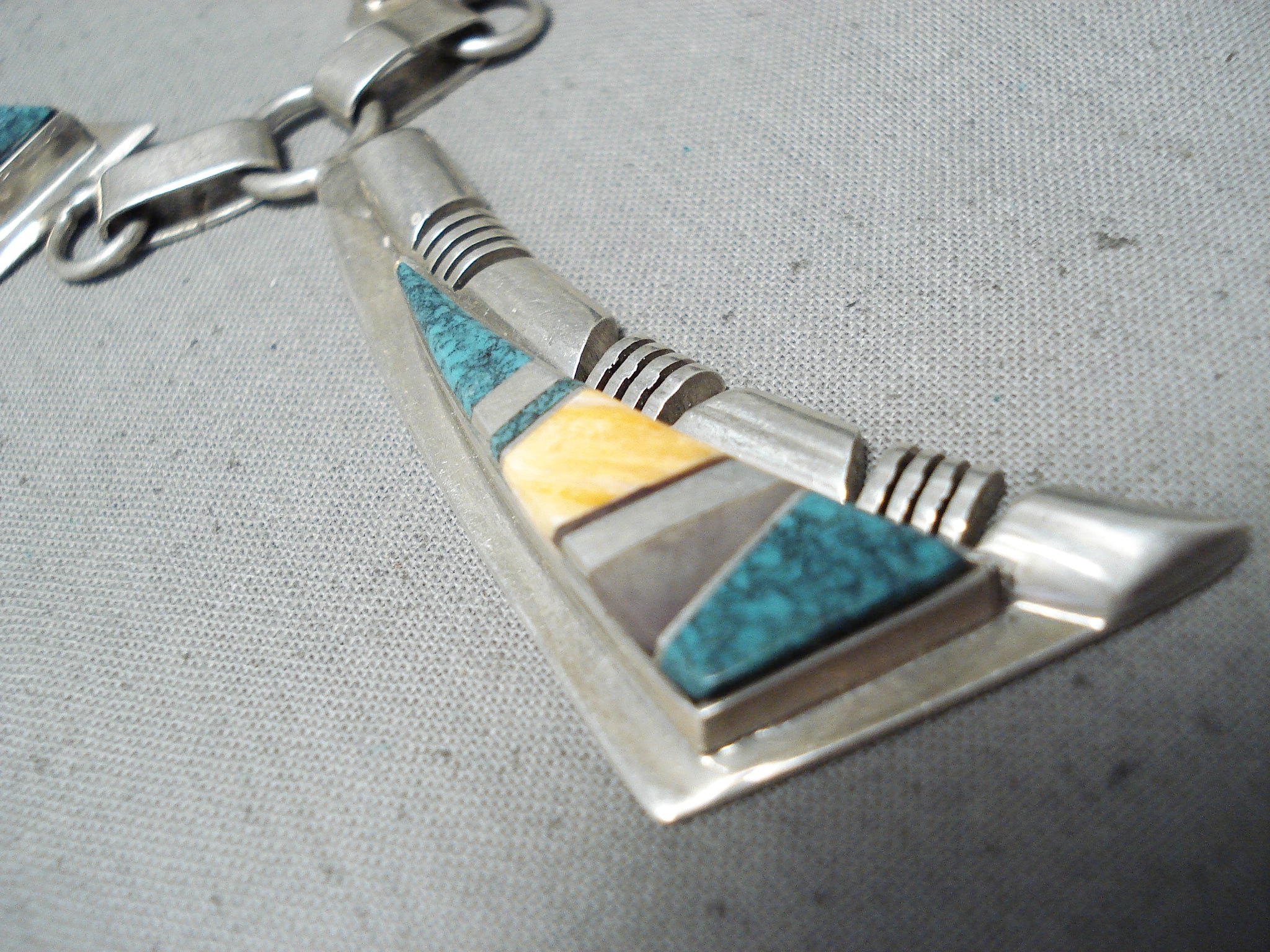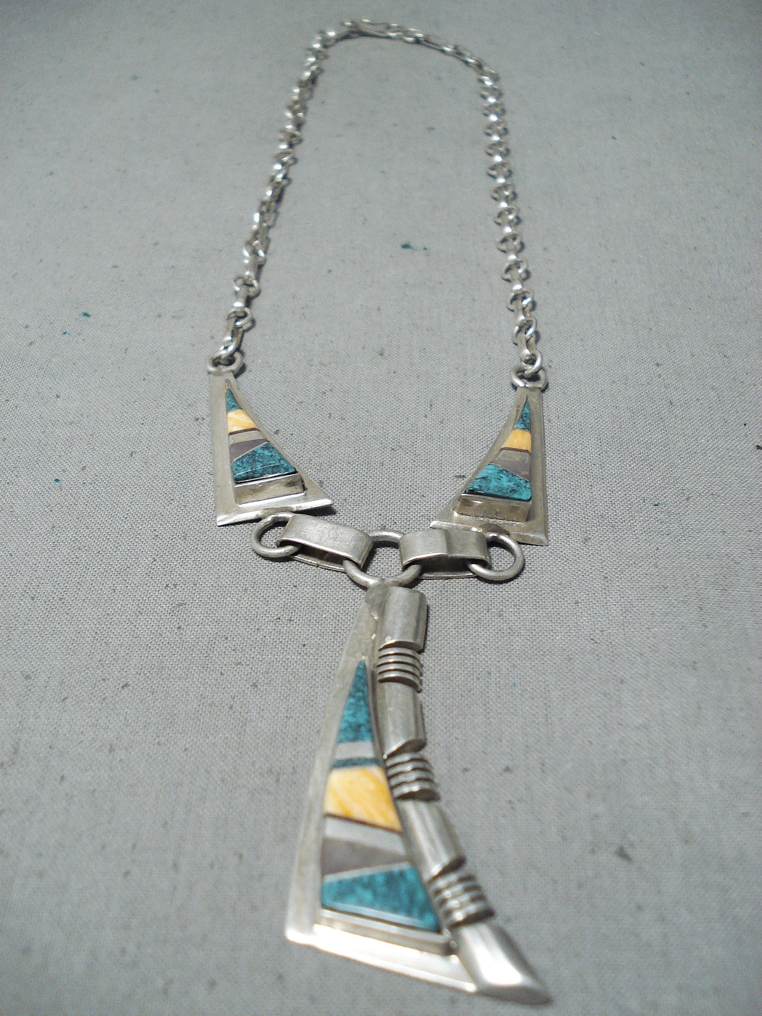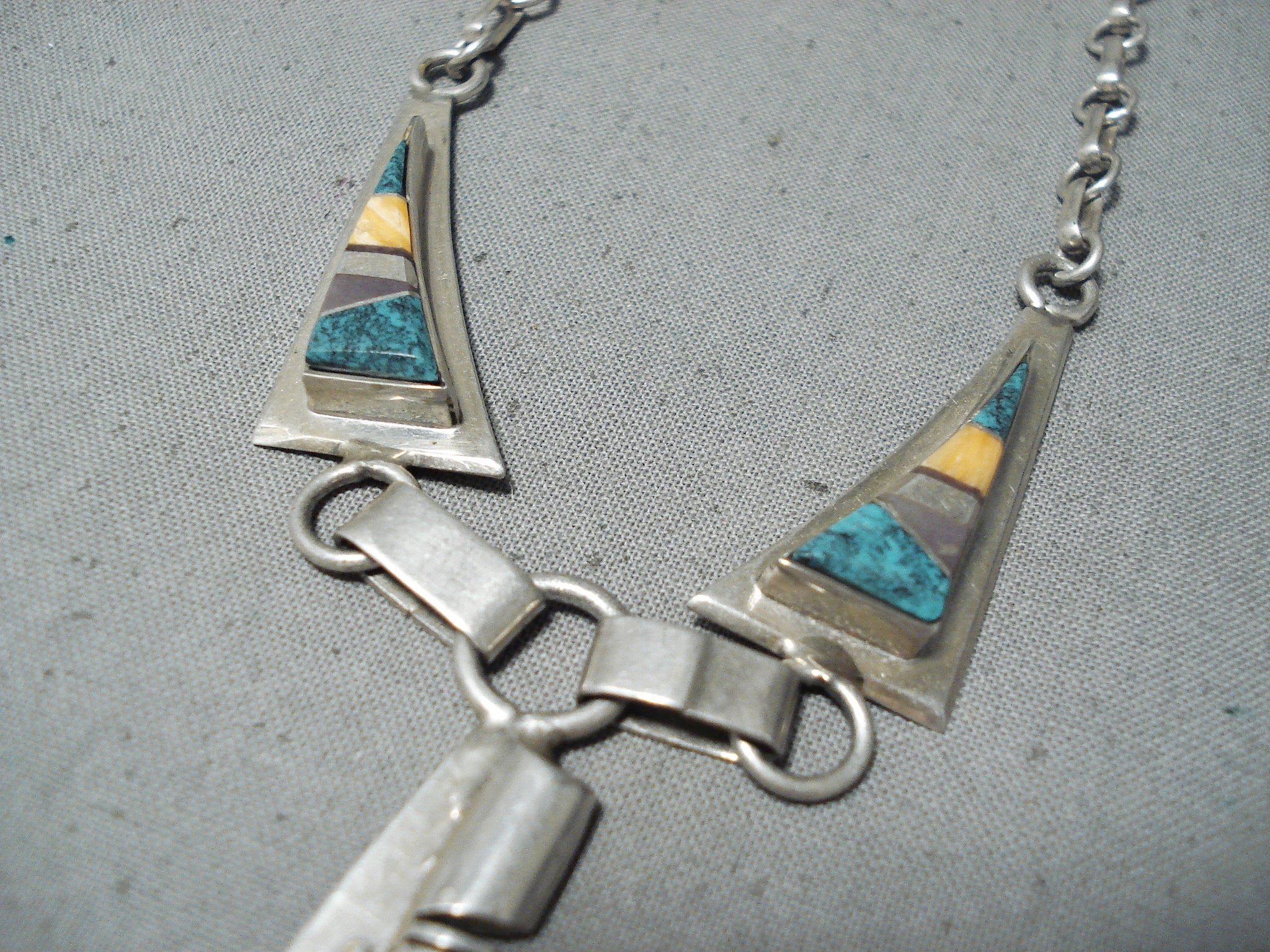Stunning Vintage Native American Navajo Turquoise Sterling Silver Necklace Old