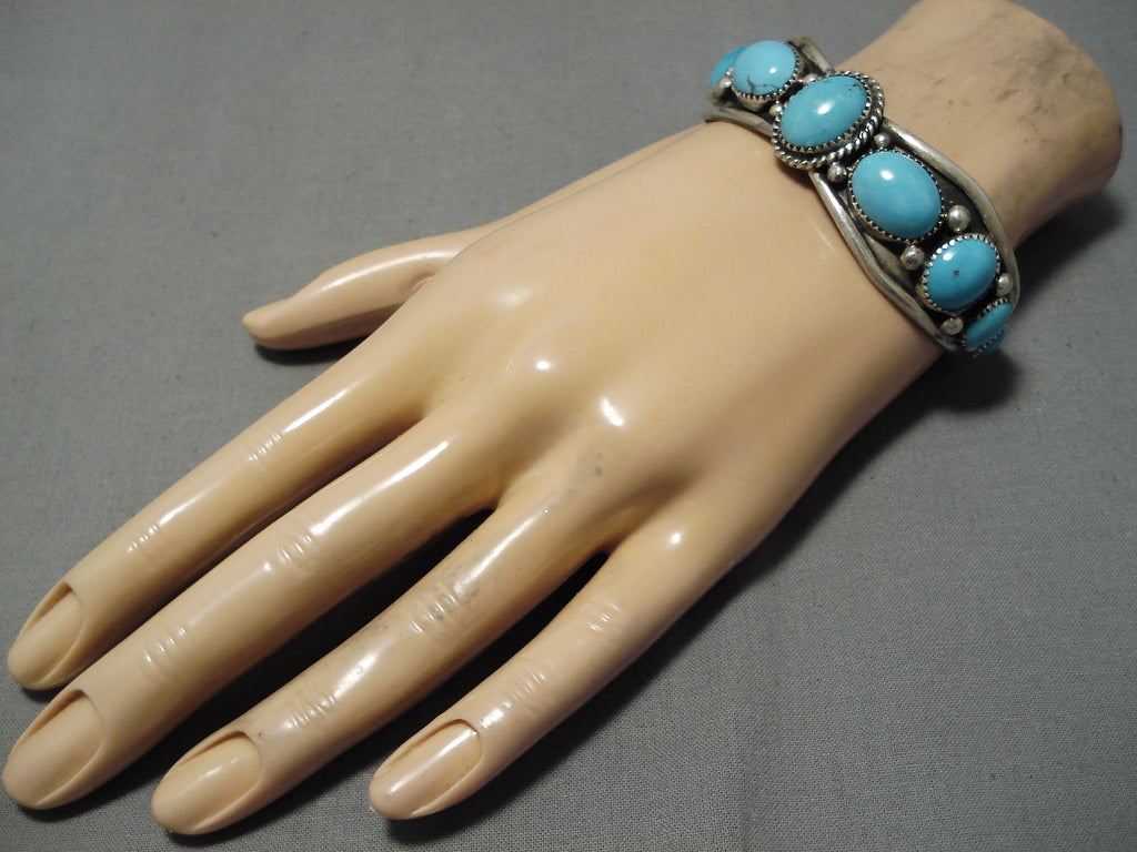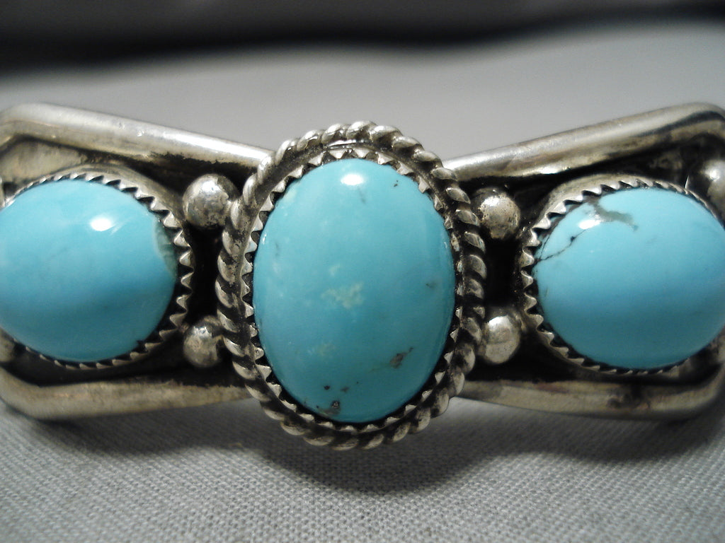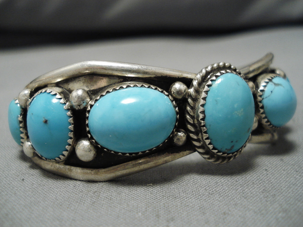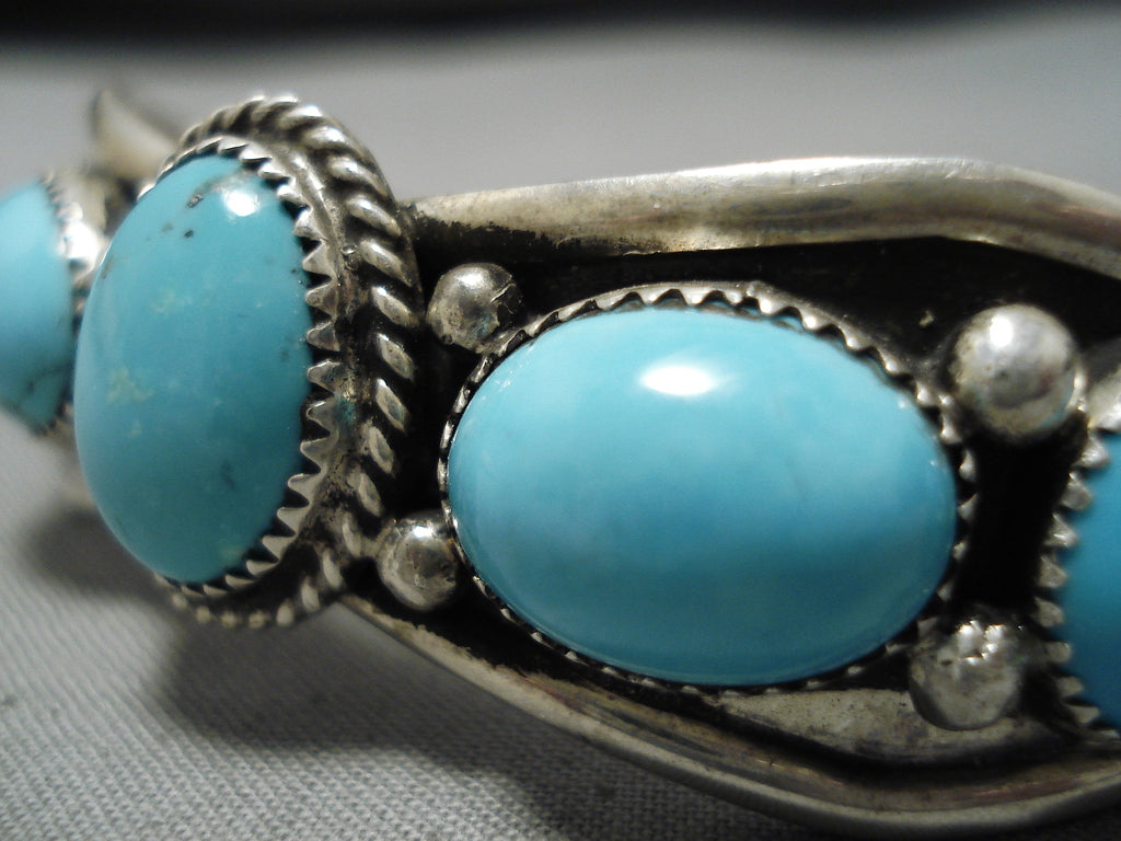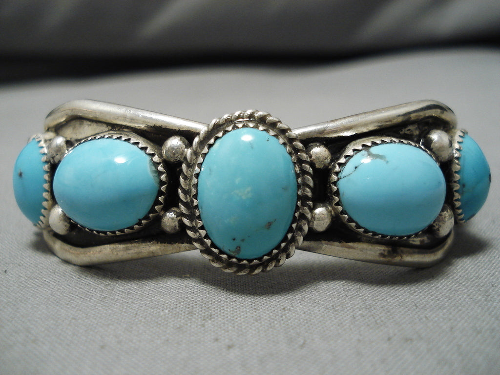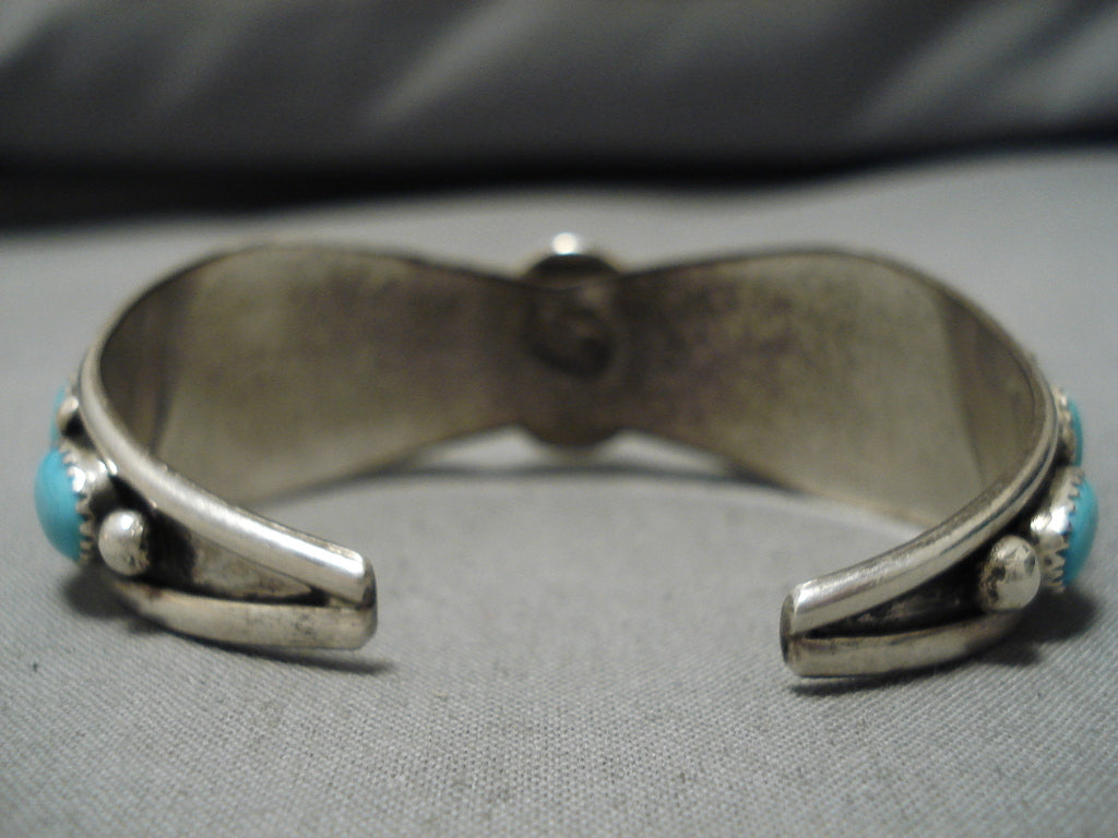 Stunning Vintage Native American Navajo Turquoise Wave Sterling Silver Bracelet Old Cuff