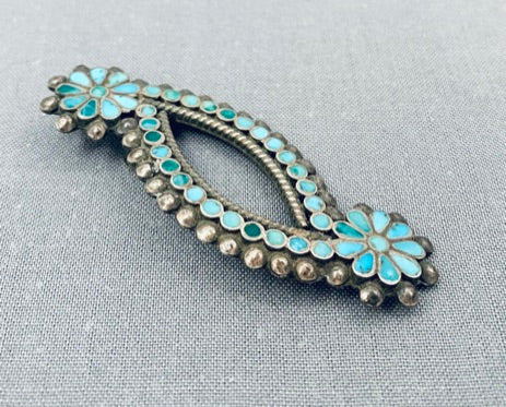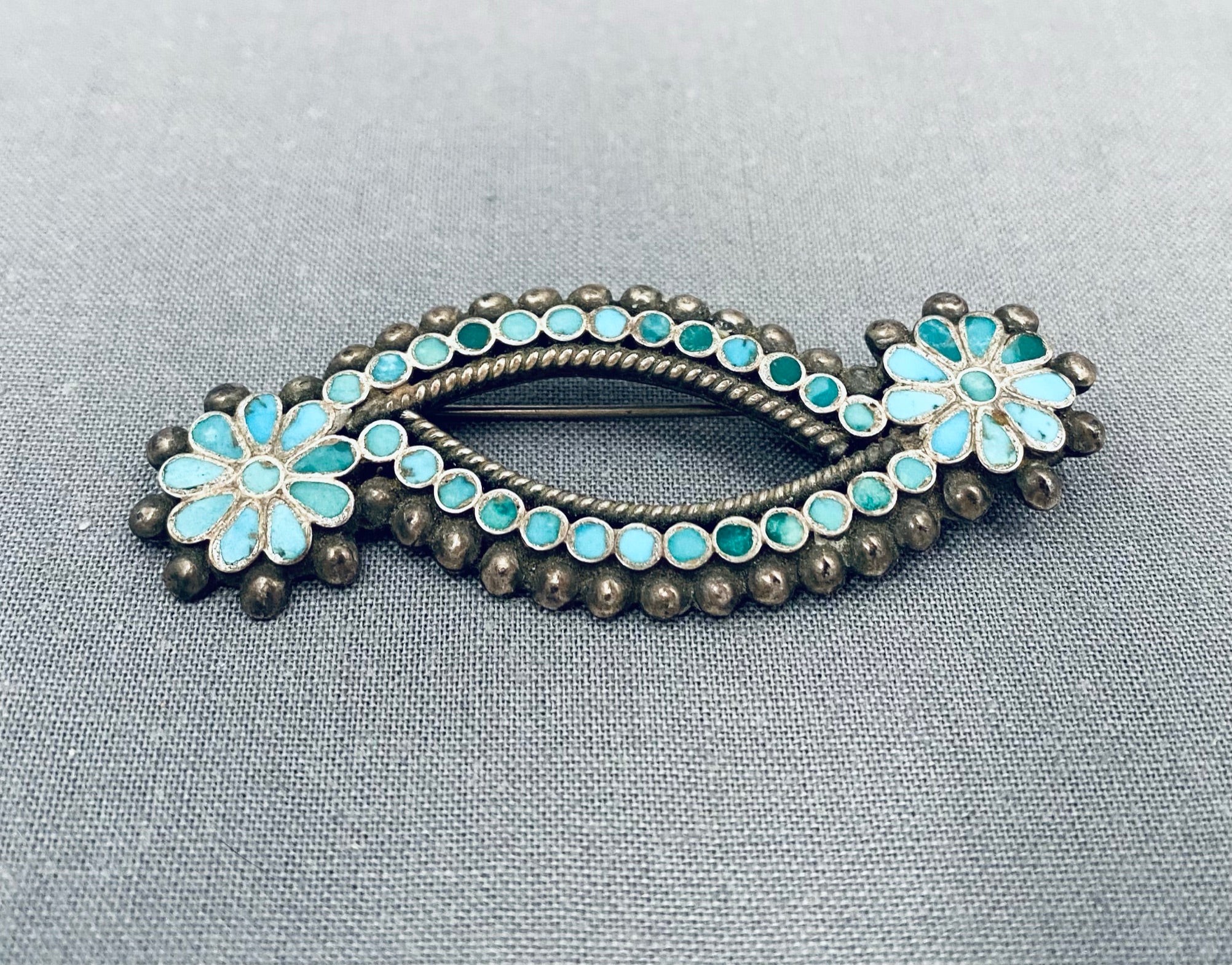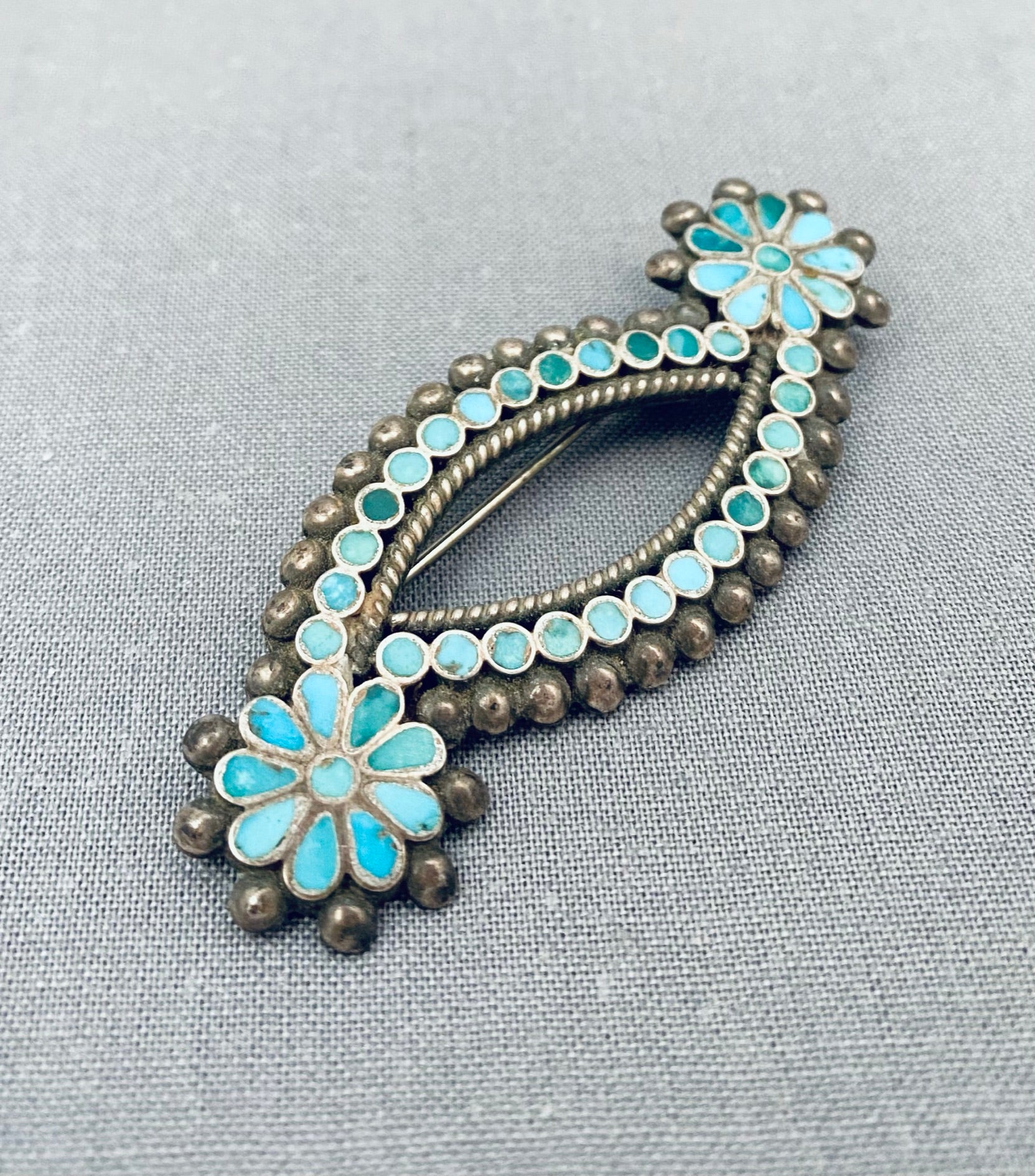 Stunning Vintage Native American Zuni Blue Gem Old Kingman Turquoise Sterling Silver Pin
