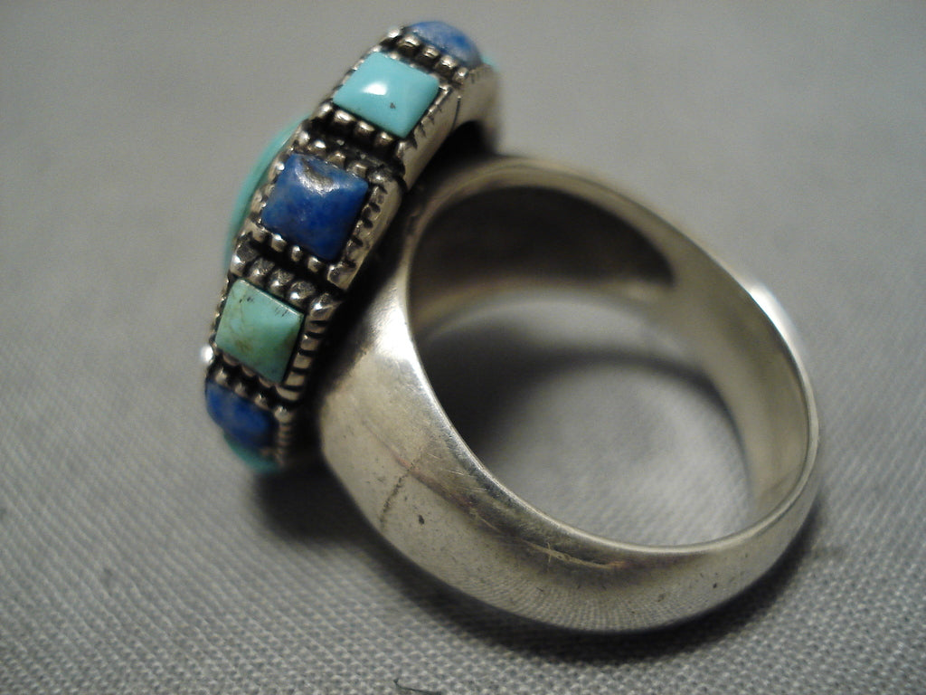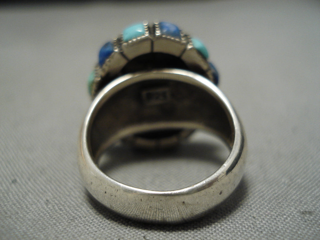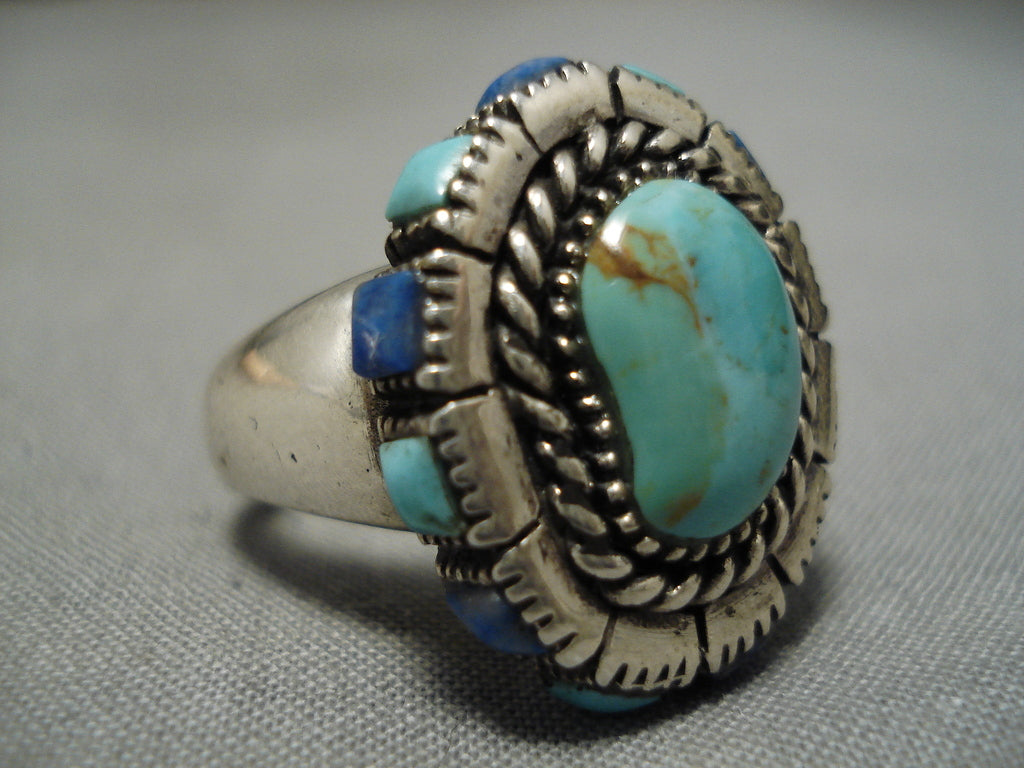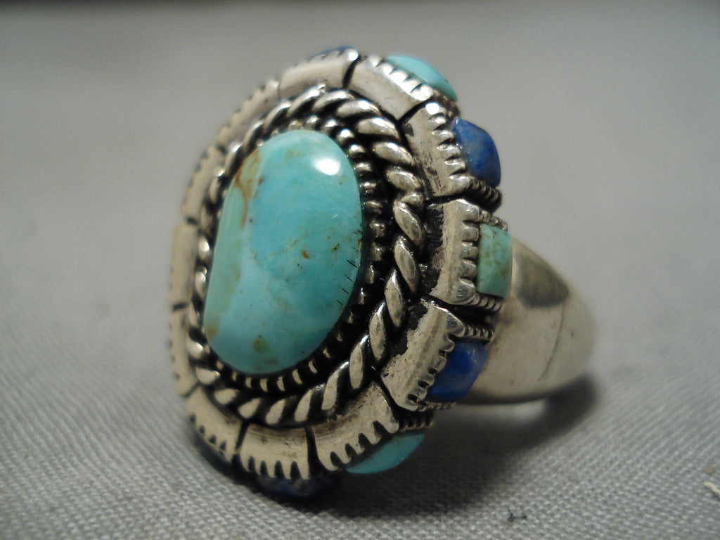 Stunning Vintage Navajo Turquoise Lapis Sterling Silver Native American Ring
