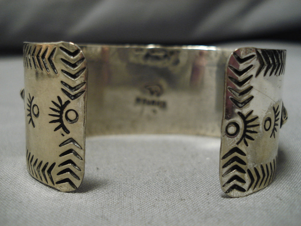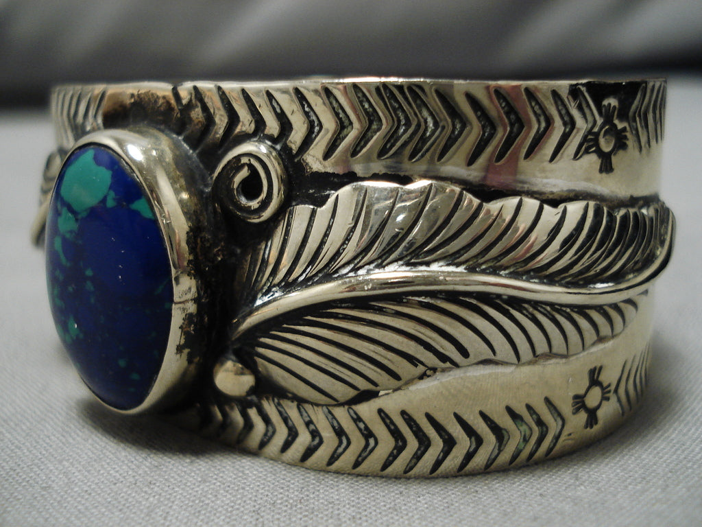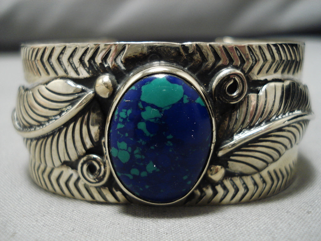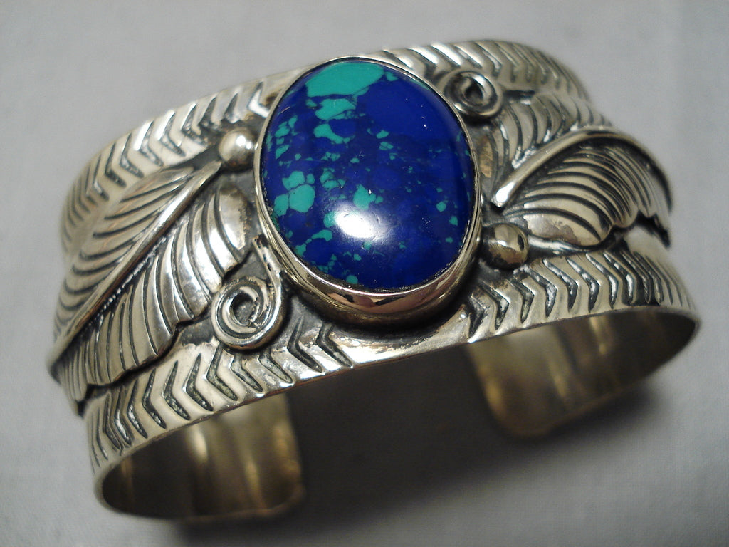 Stunning Vintage Navajo Wide Azurite Sterling Silver Native American Bracelet