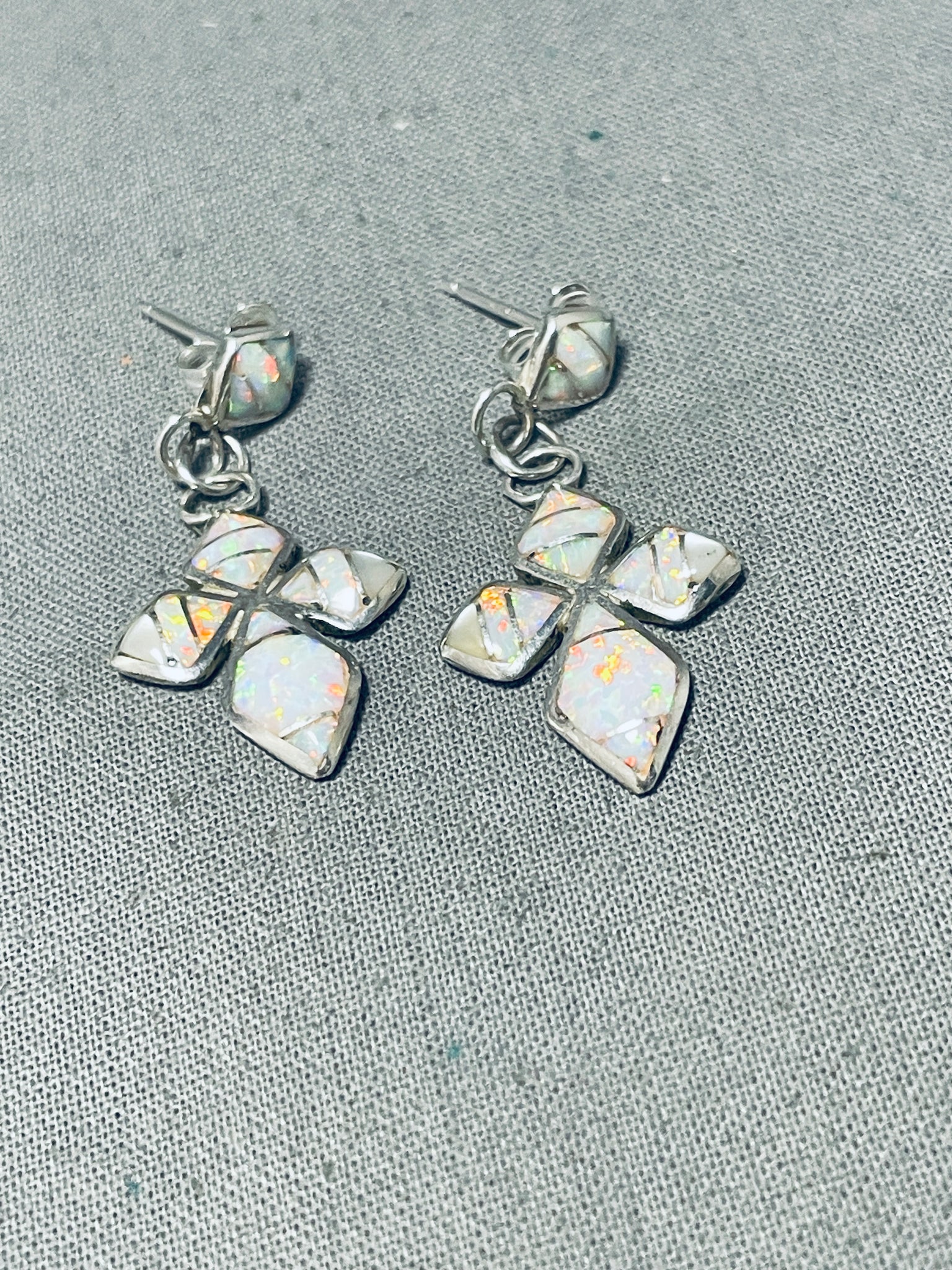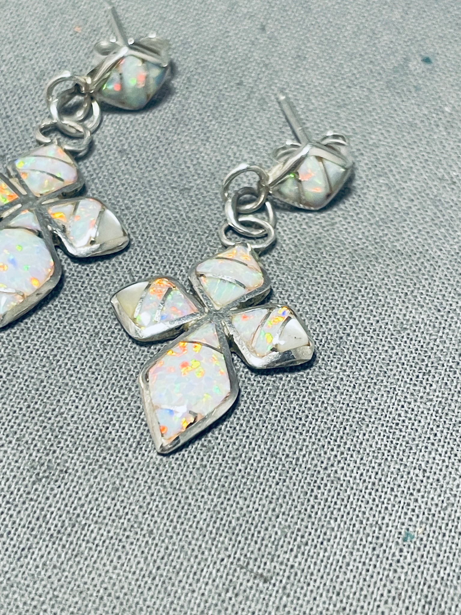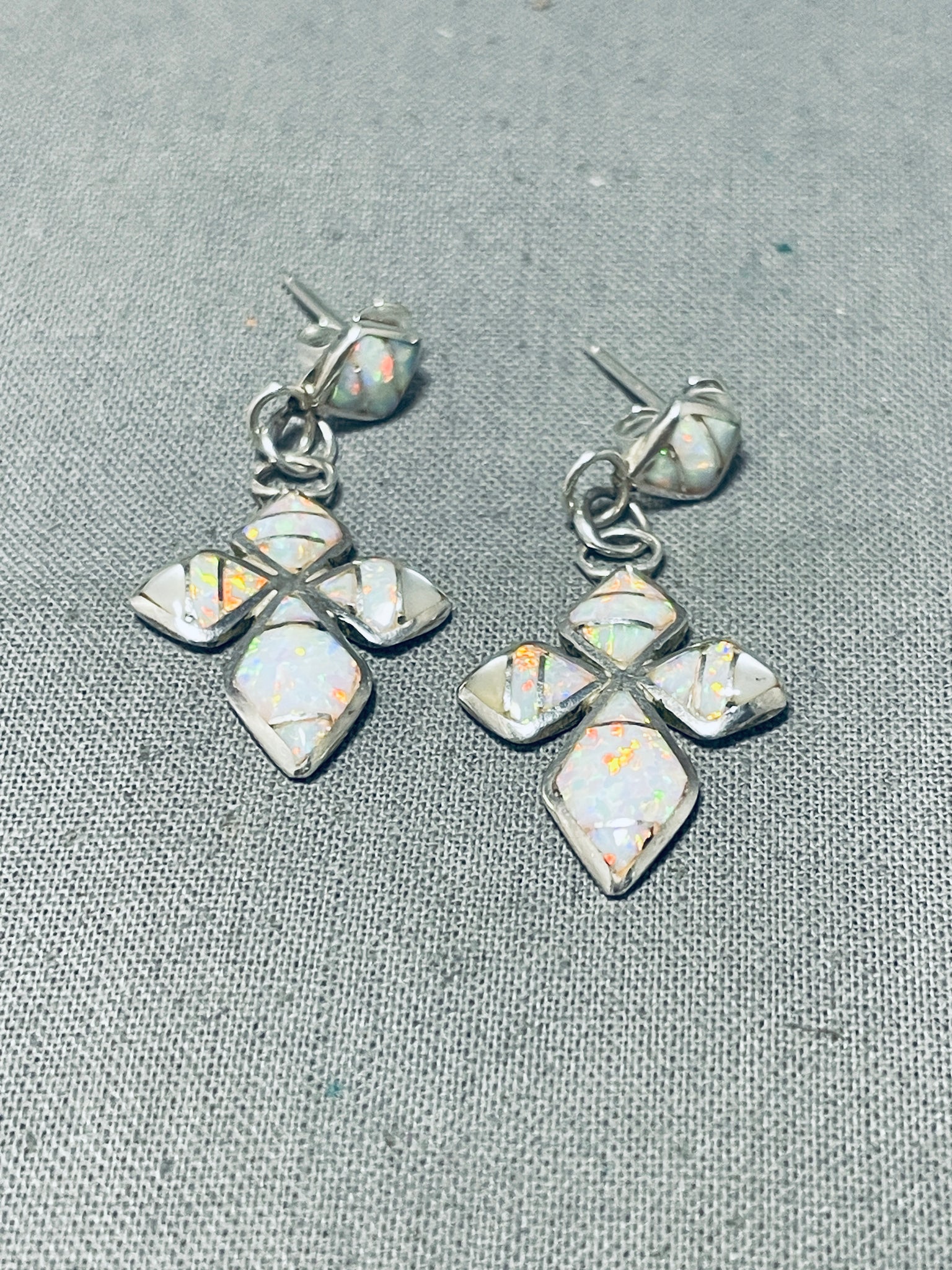 Stunning Vintage Santo Domingo Opal Sterling Silver Cross Earrings