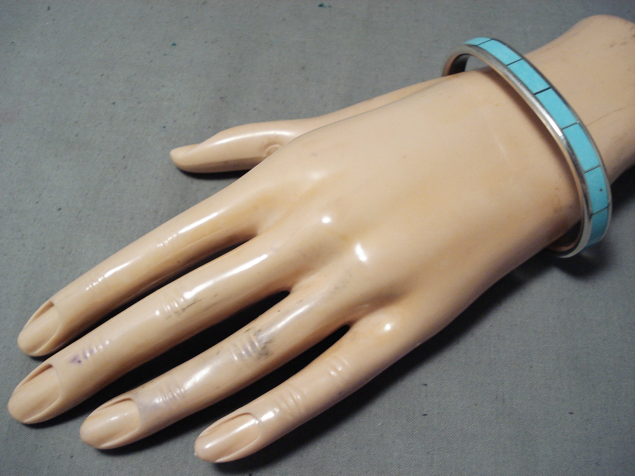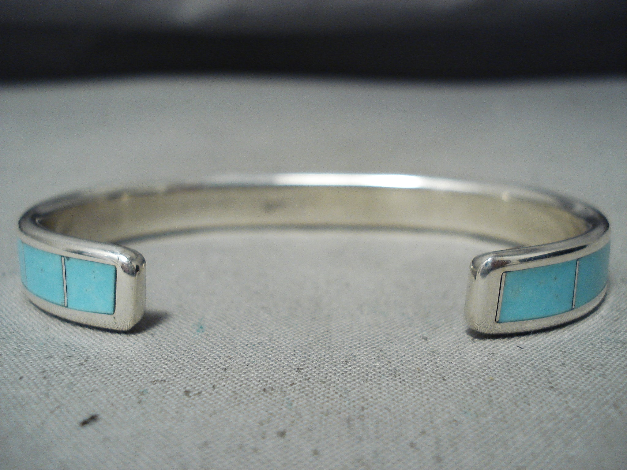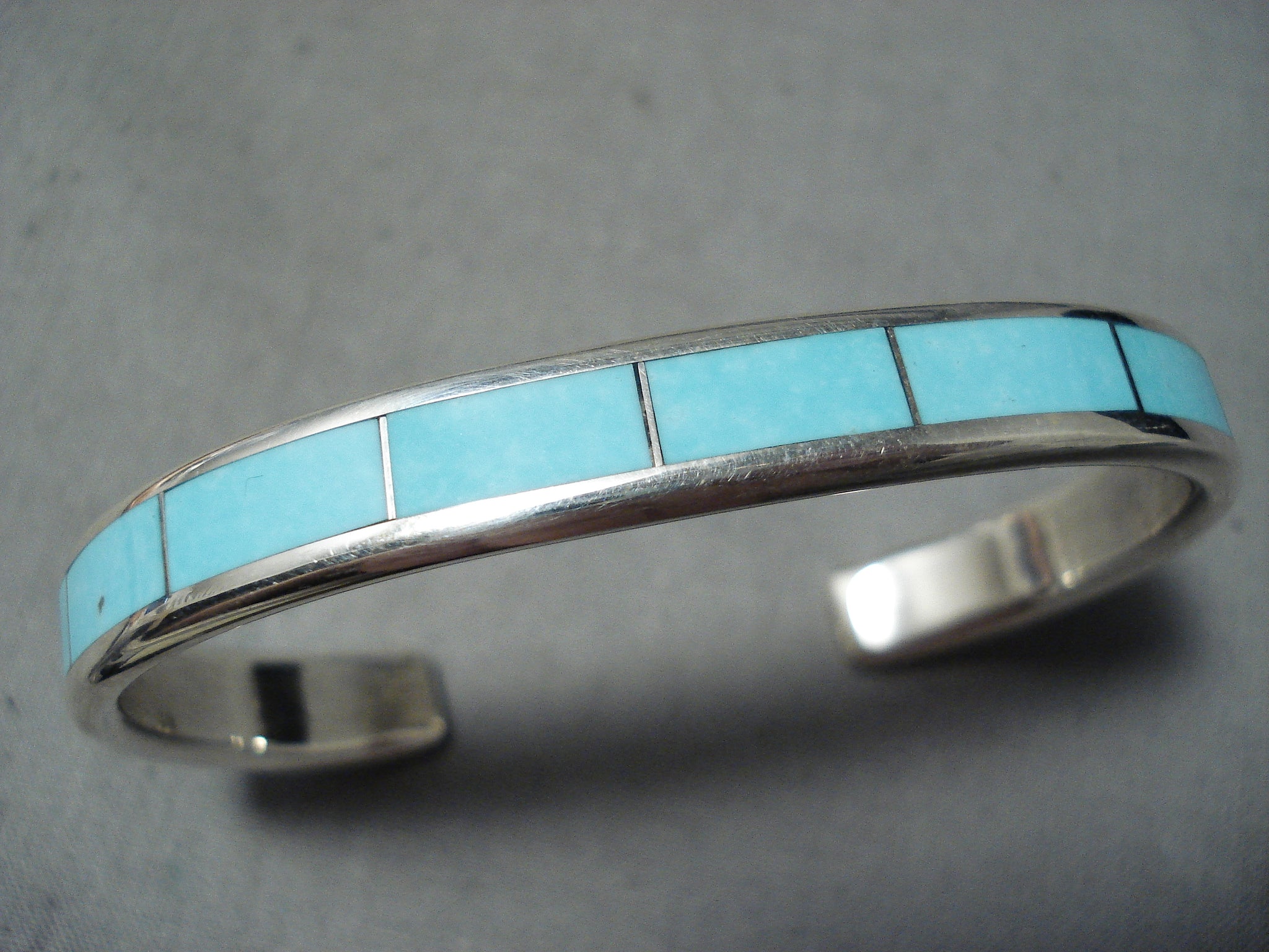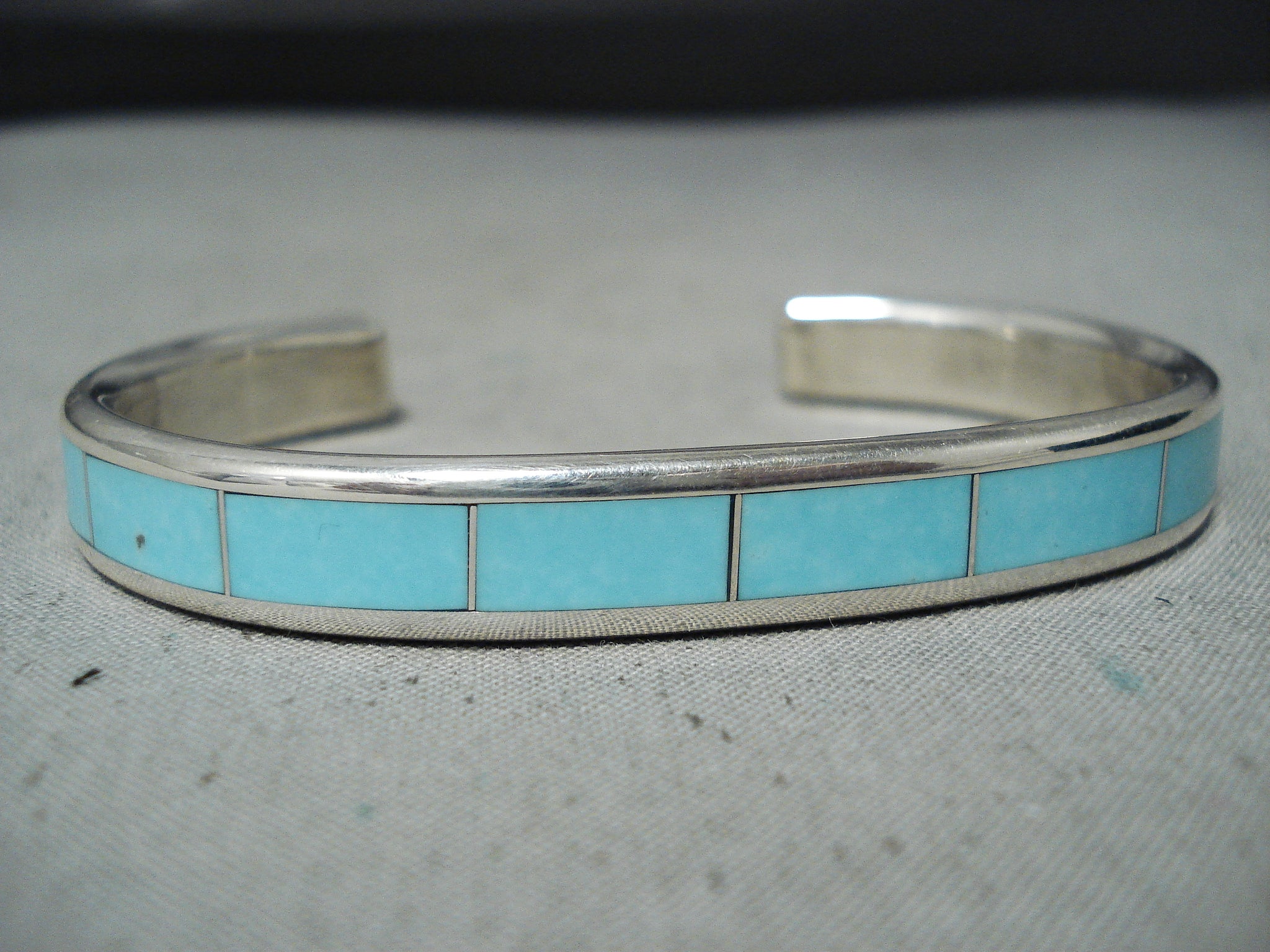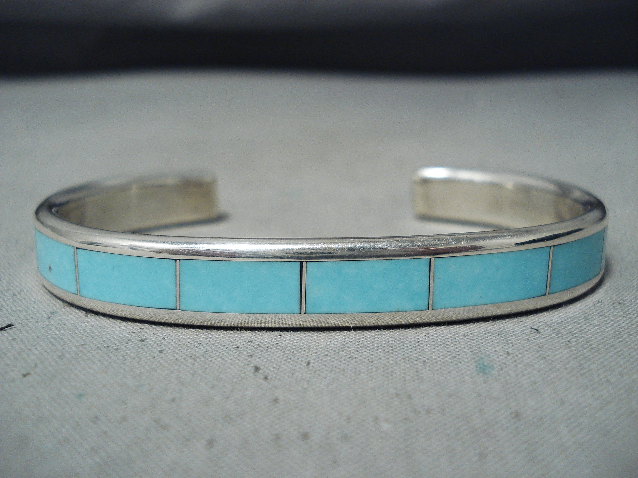 Stunning Zuni Native American Kingman Inlay Turquoise Sterling Silver Bracelet