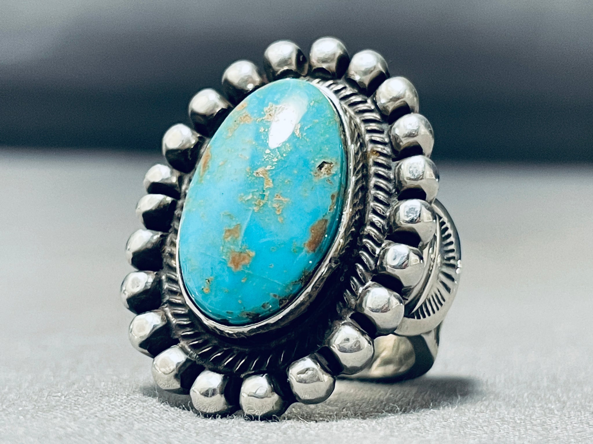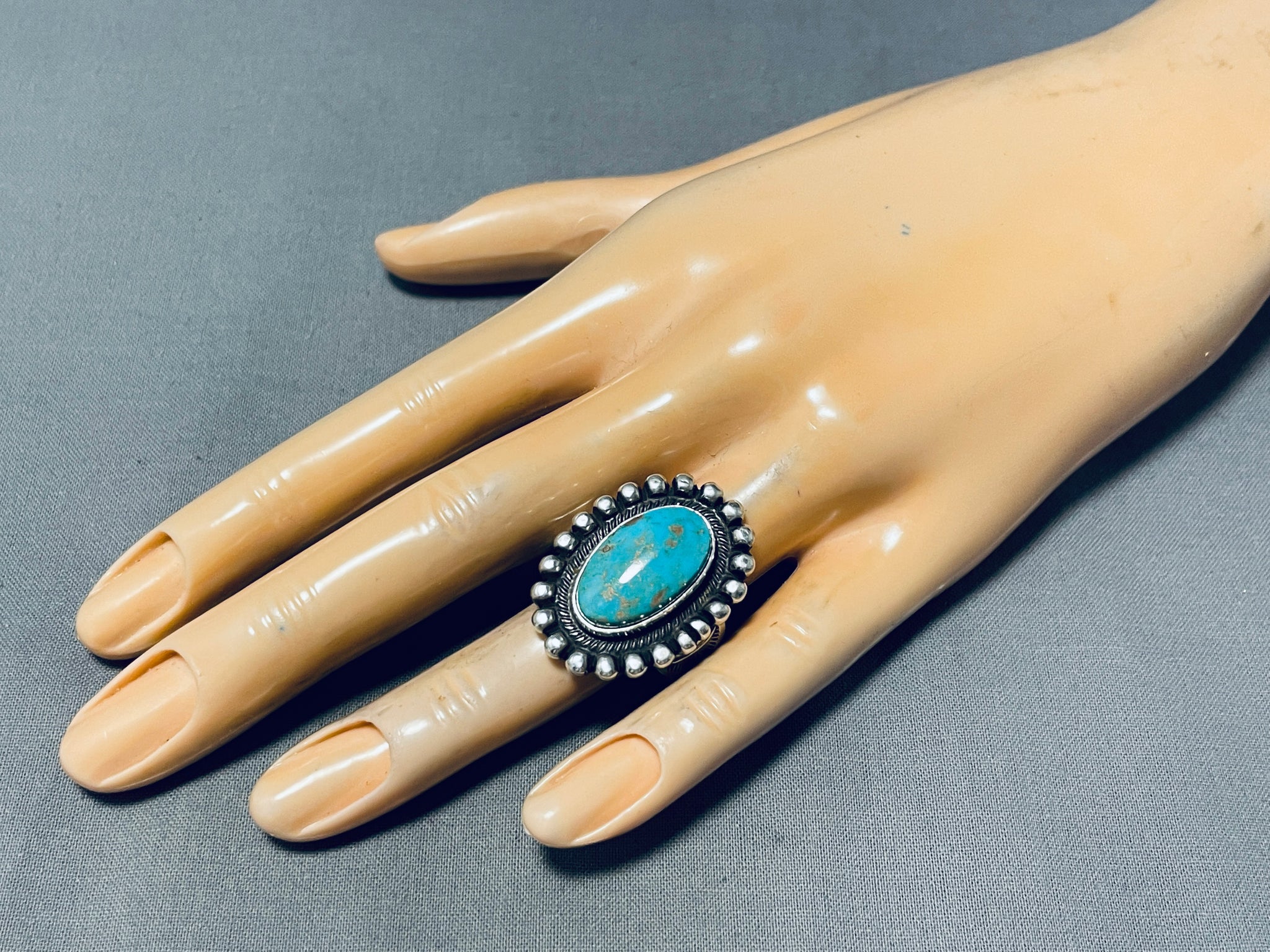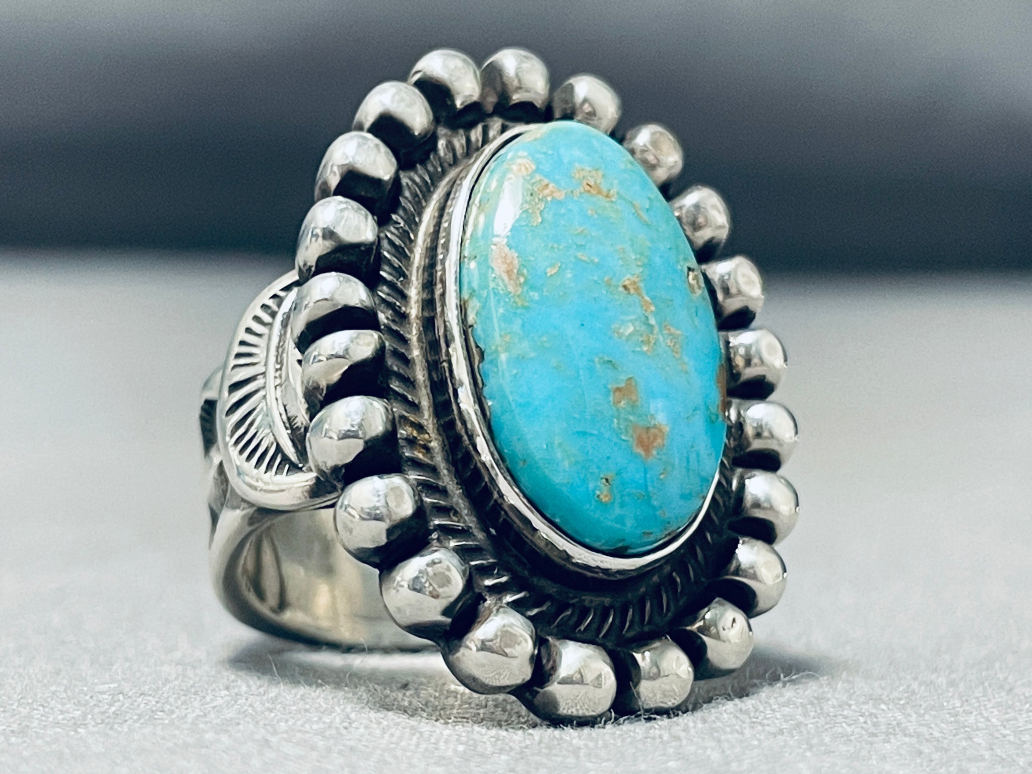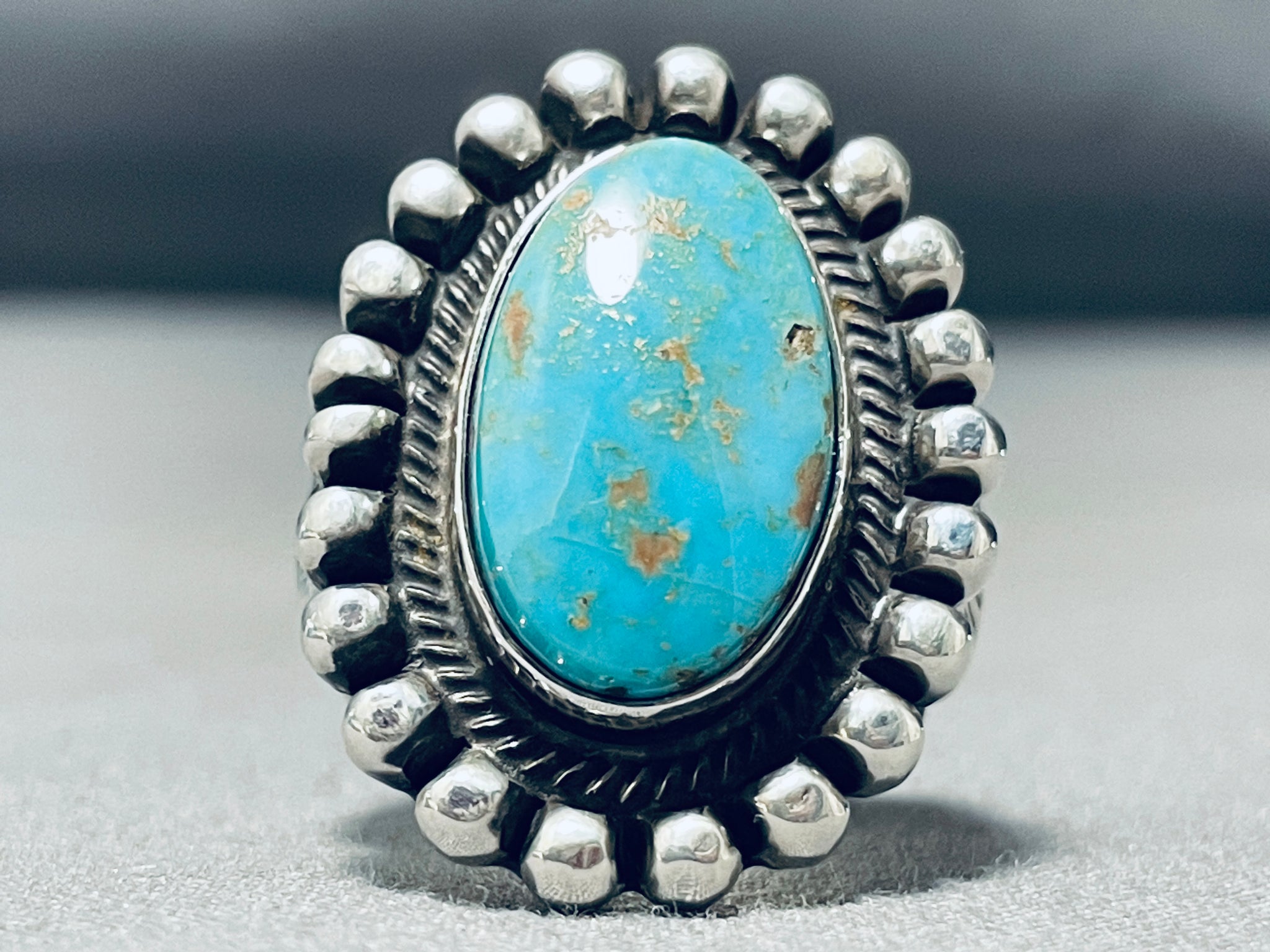 Sturdy Native American Navajo Pilot Mntn Turquoise Sterling Silver Thick Ring