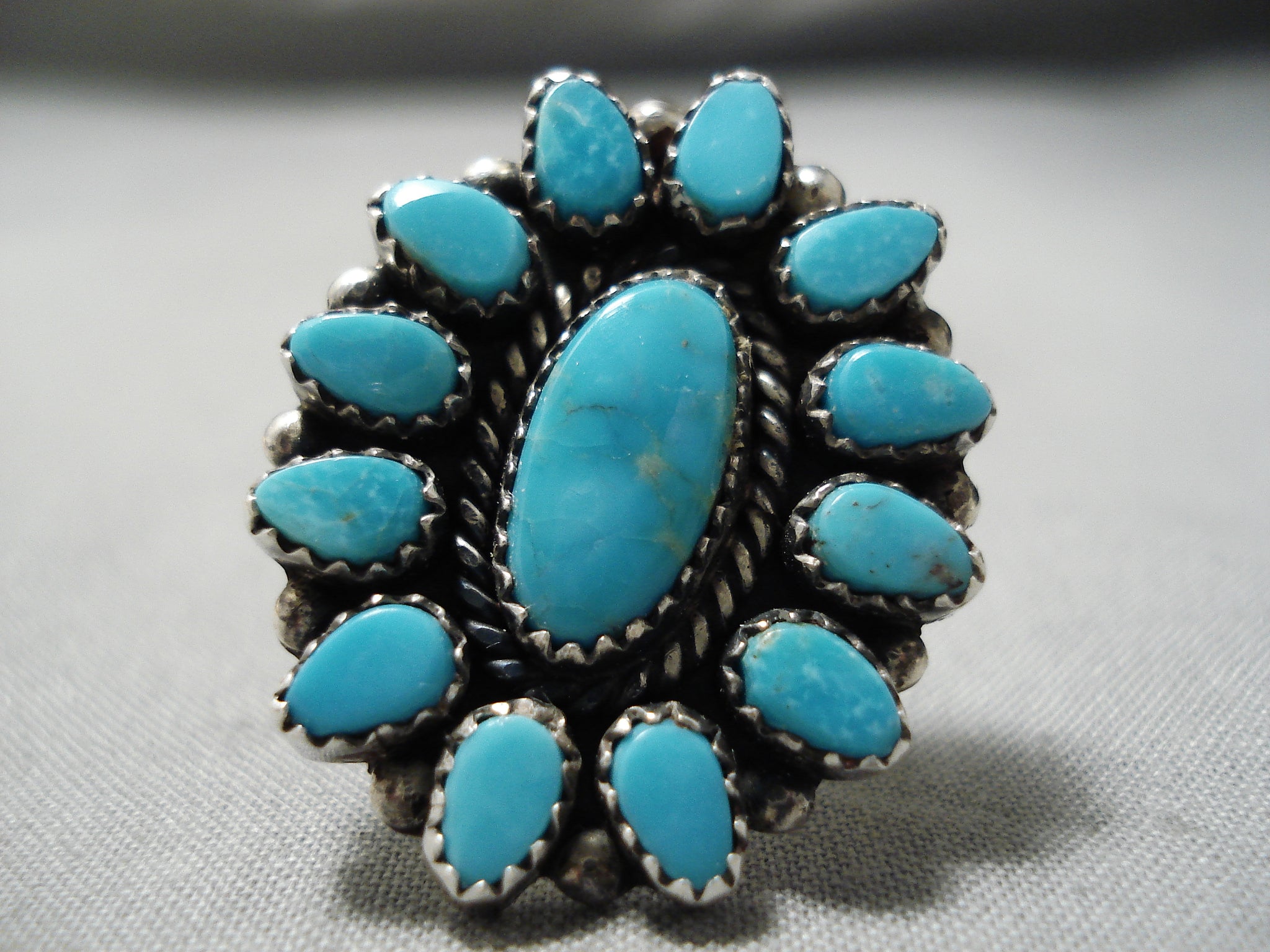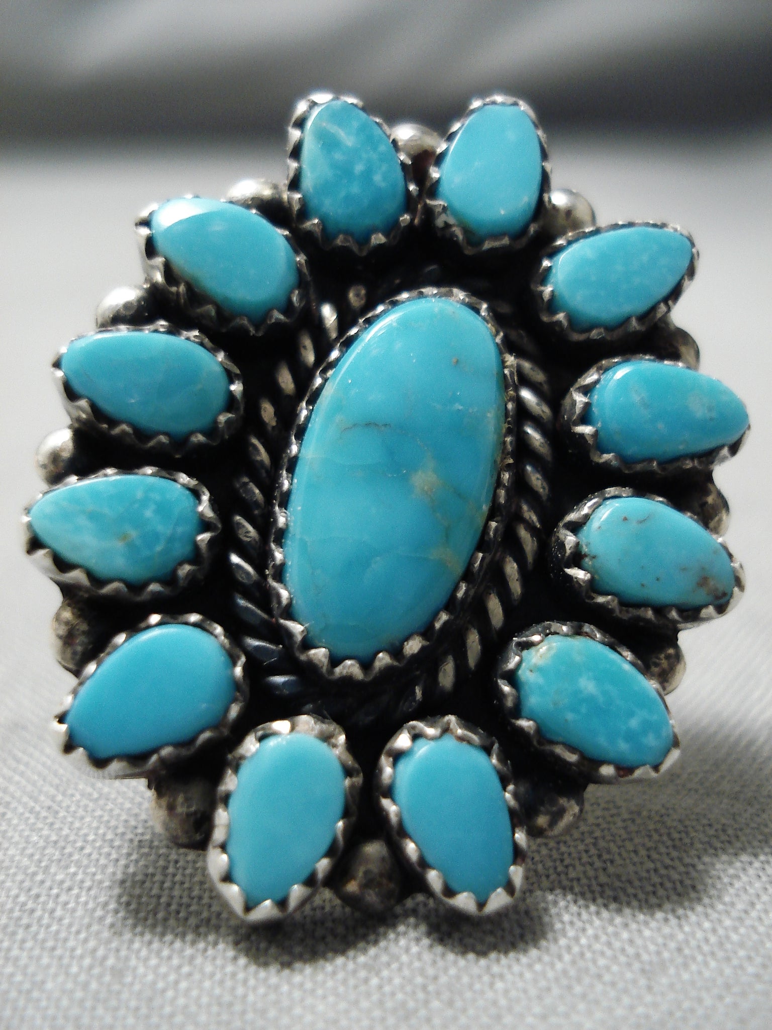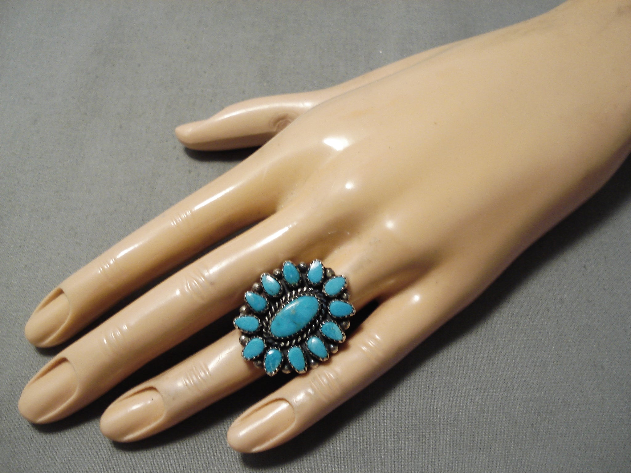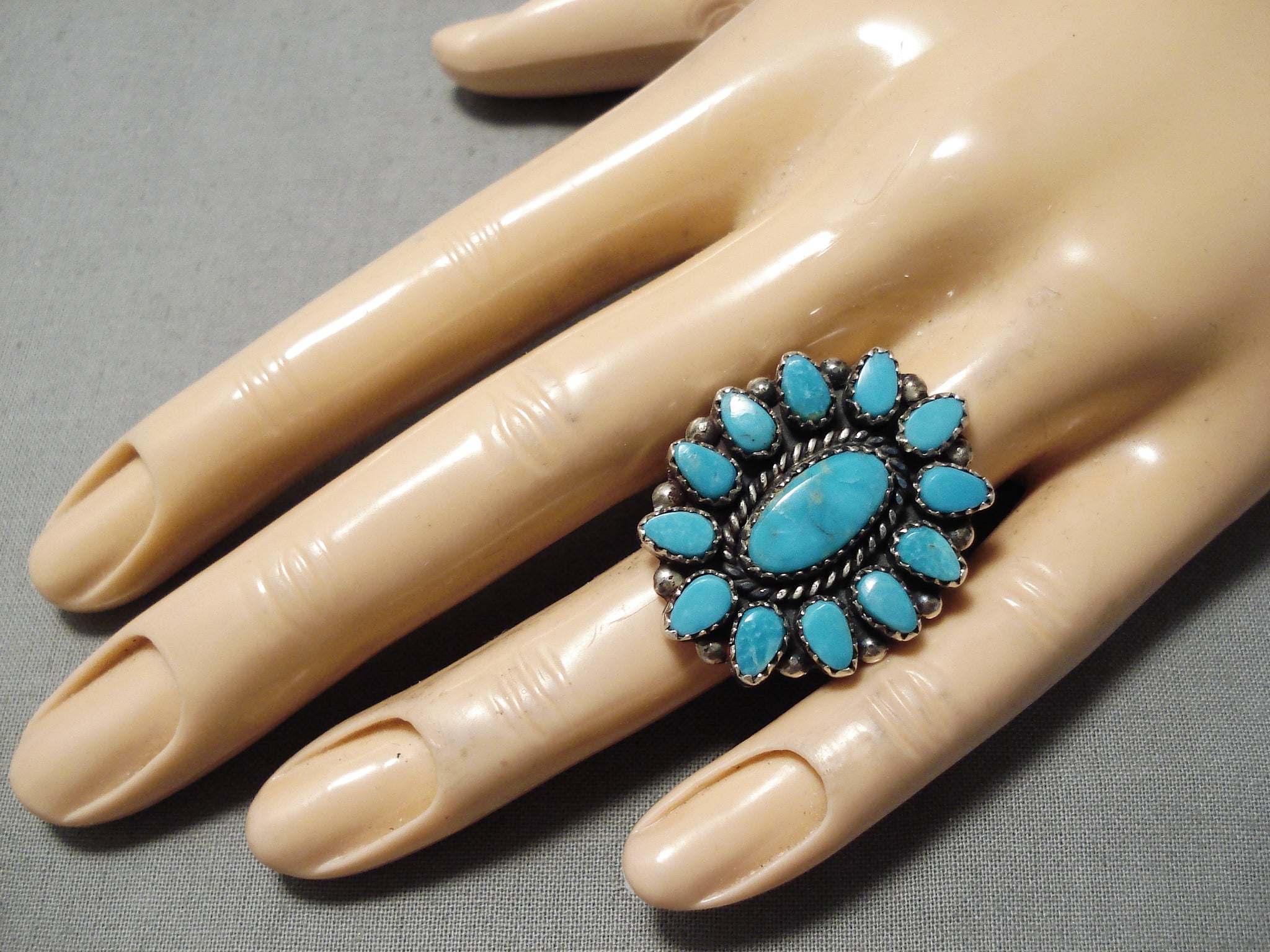 Super Chunky Vintage Native American Navajo Blue Carico Lake Turquoise Sterling Silver Ring