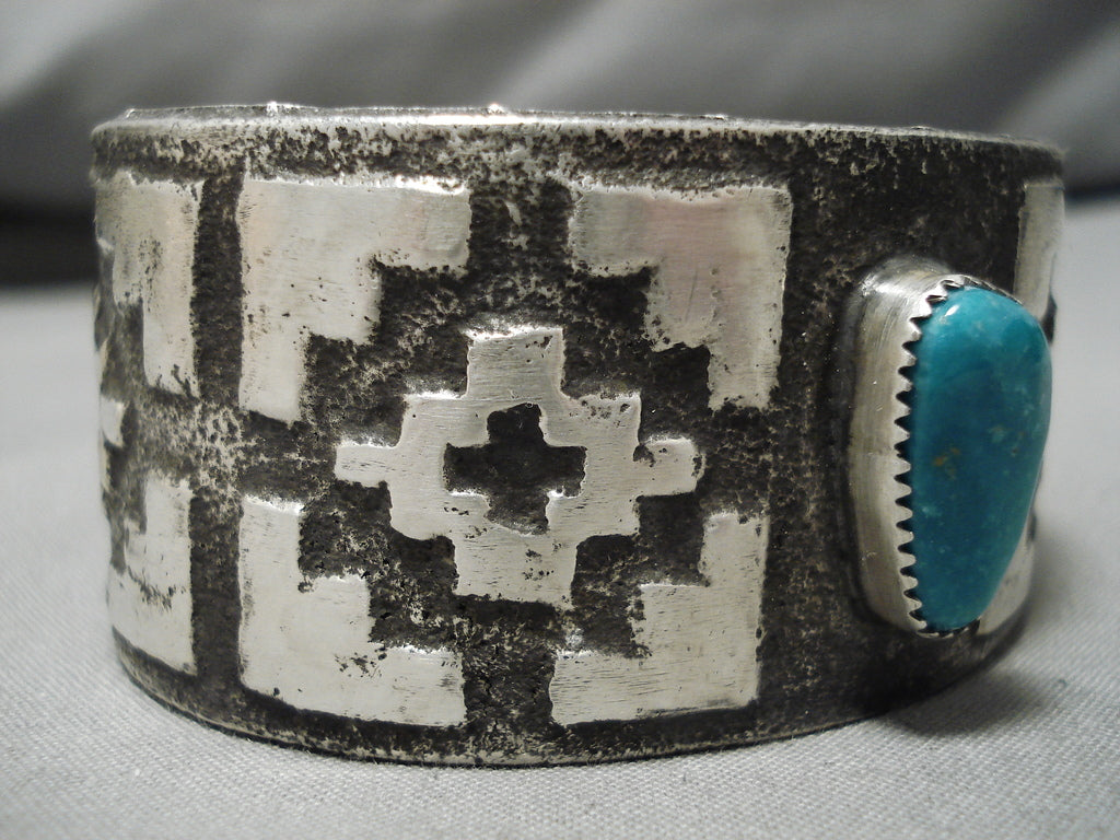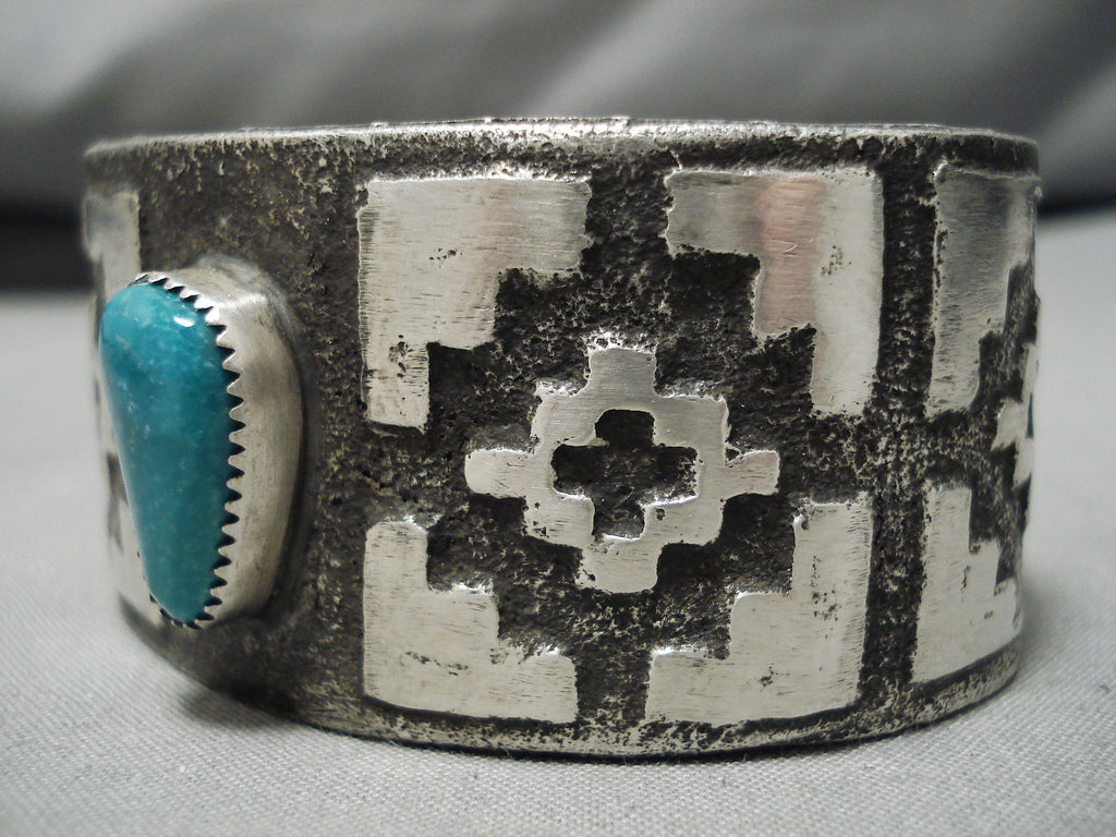 Super Heavy!! Native American Turquoise Sterling Silver Bracelet Cuff