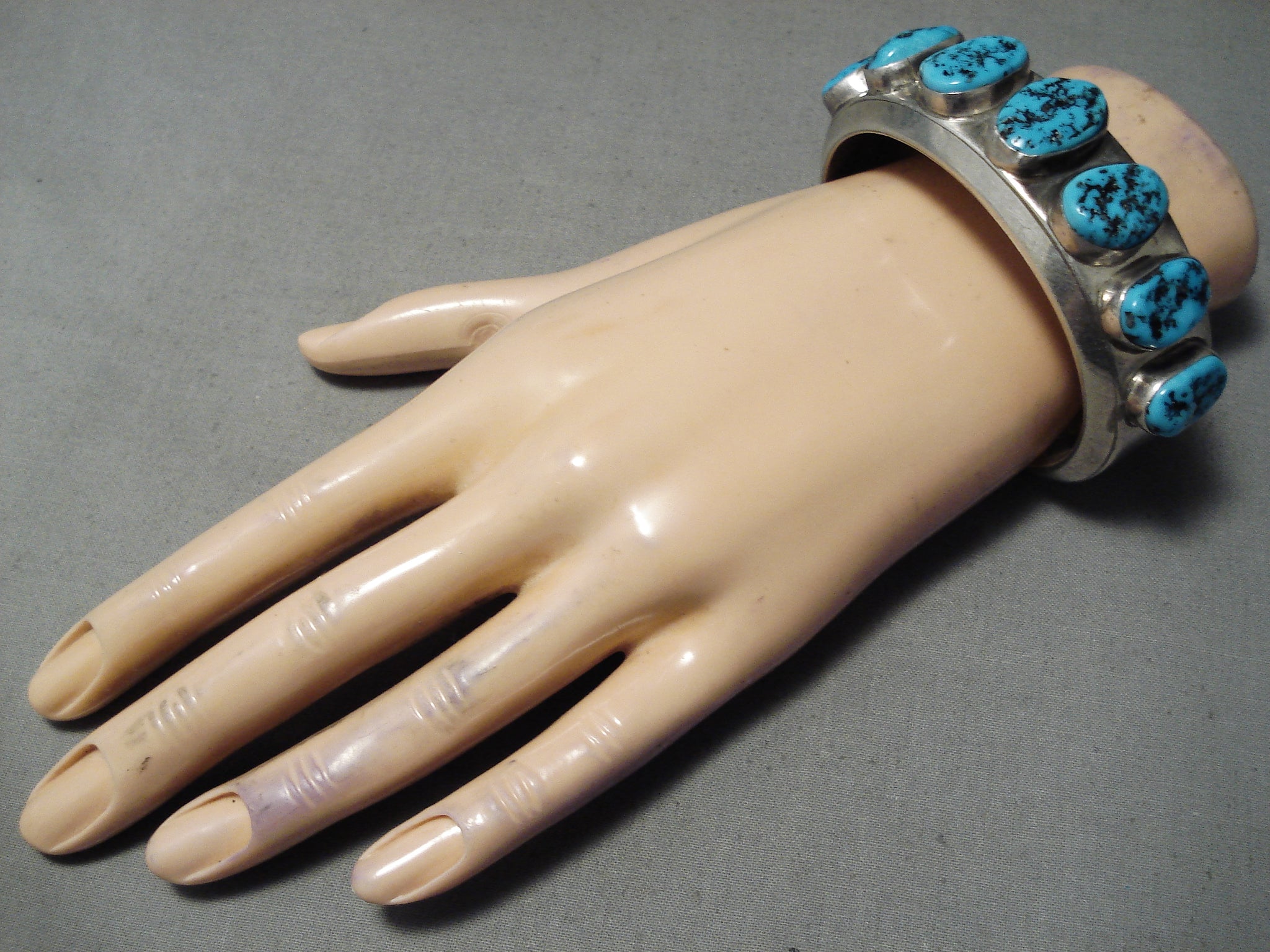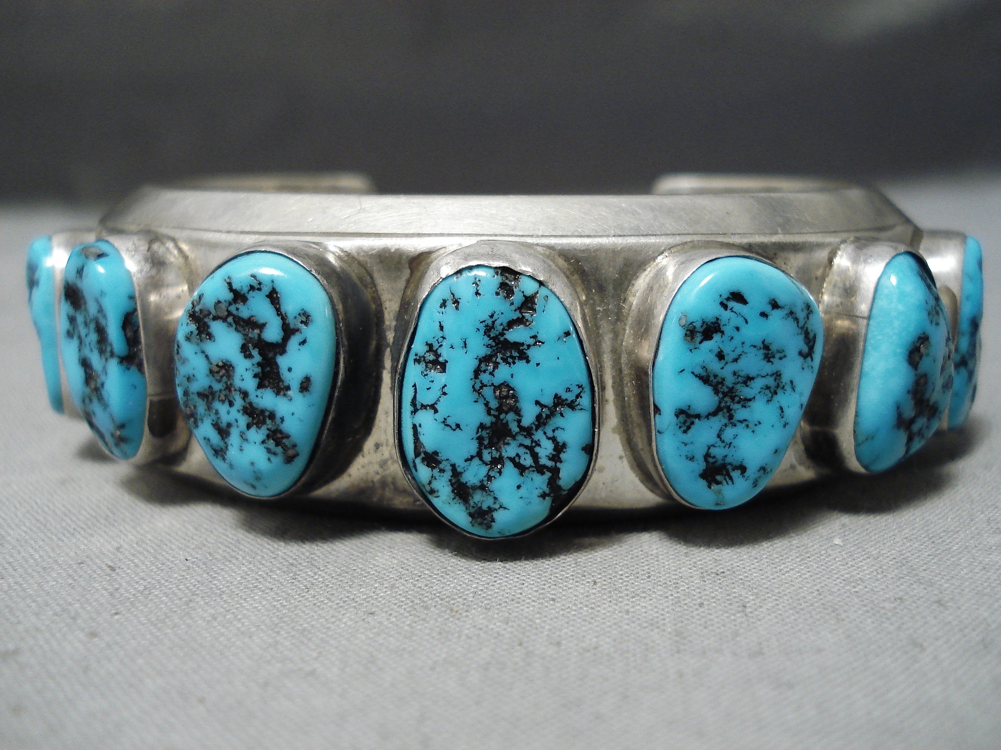 Super Heavy Vintage Native American Navajo Sleeping Beauty Sterling Silver Bracelet