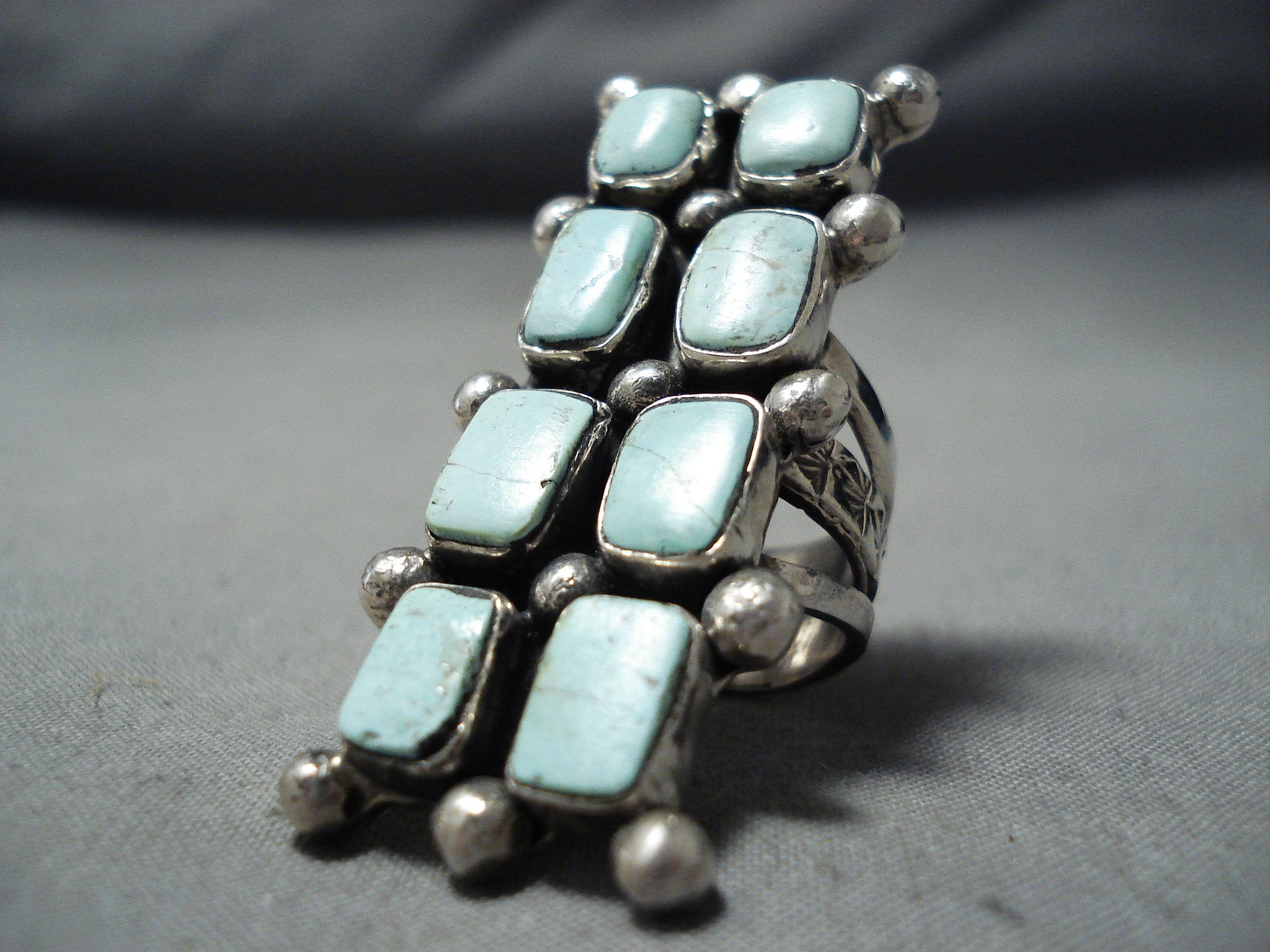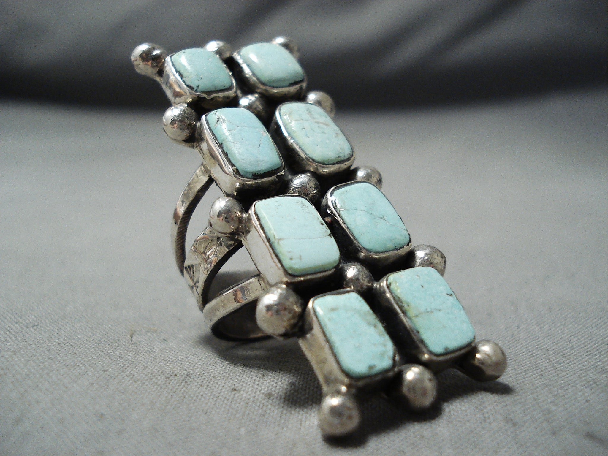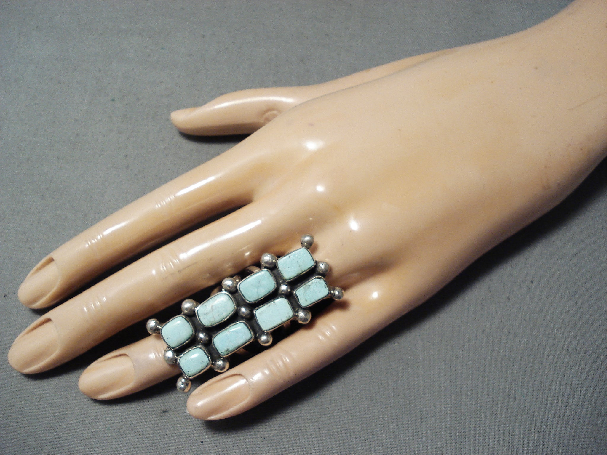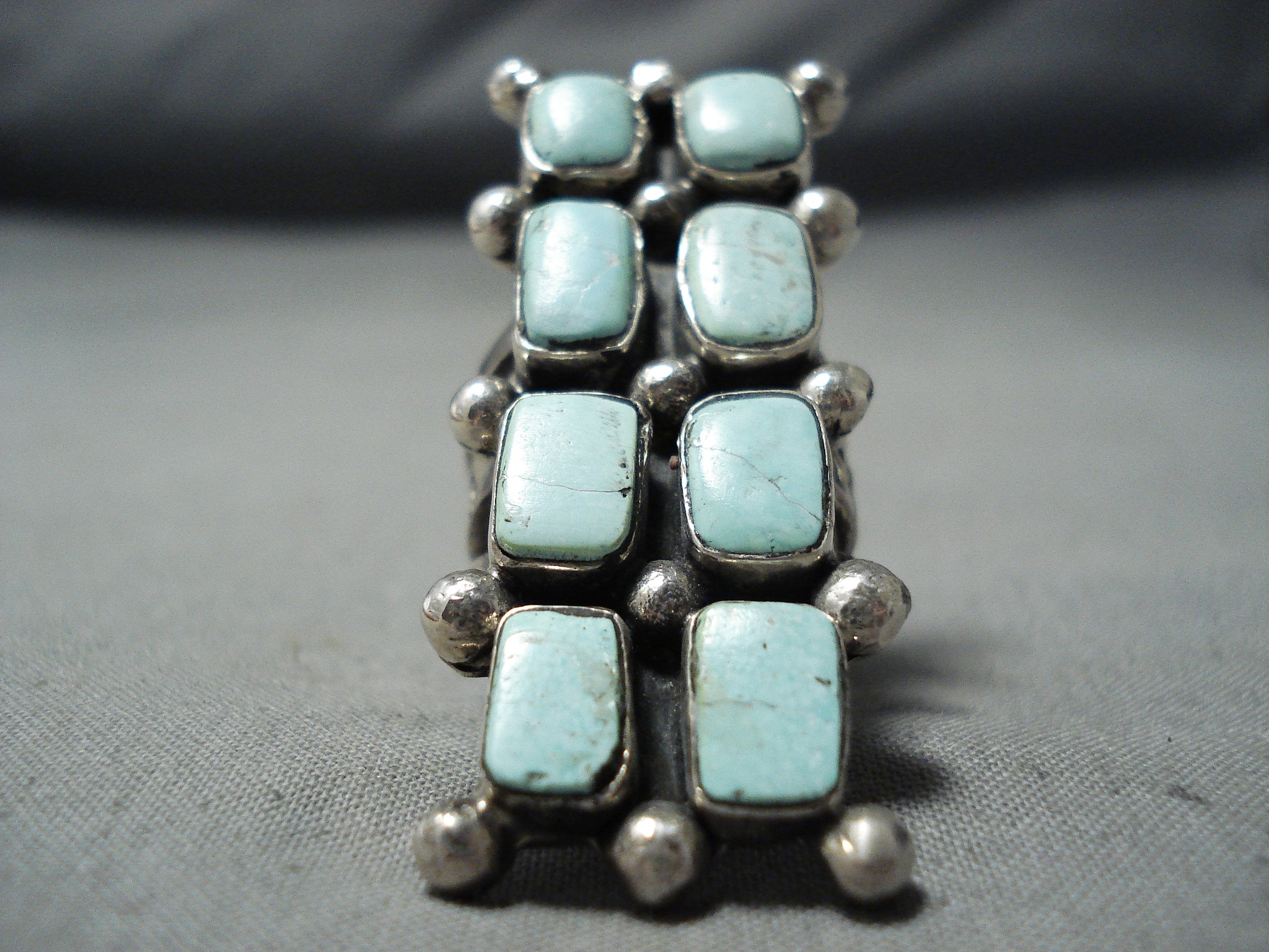 Superb San Felipe 8 Turquoise Squares Sterling Silver Ring Native American