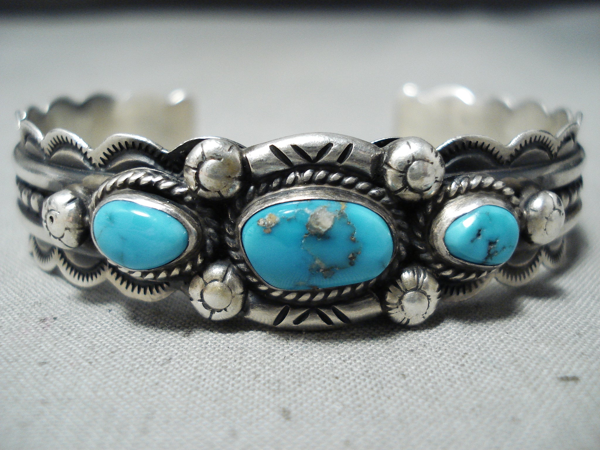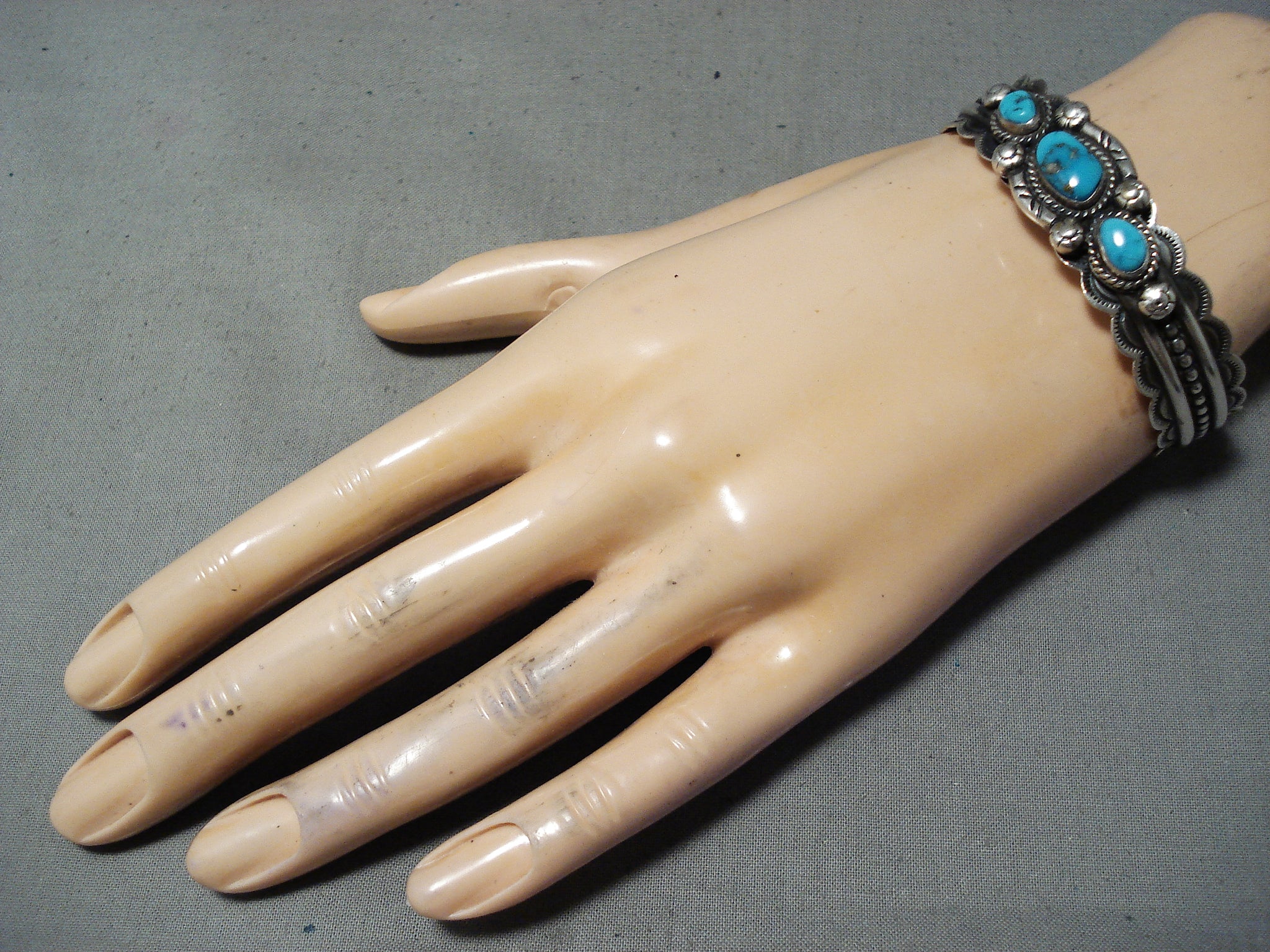 Superb Vinage Hopi Turquoise Sterling Silver Bracelet Native American Old