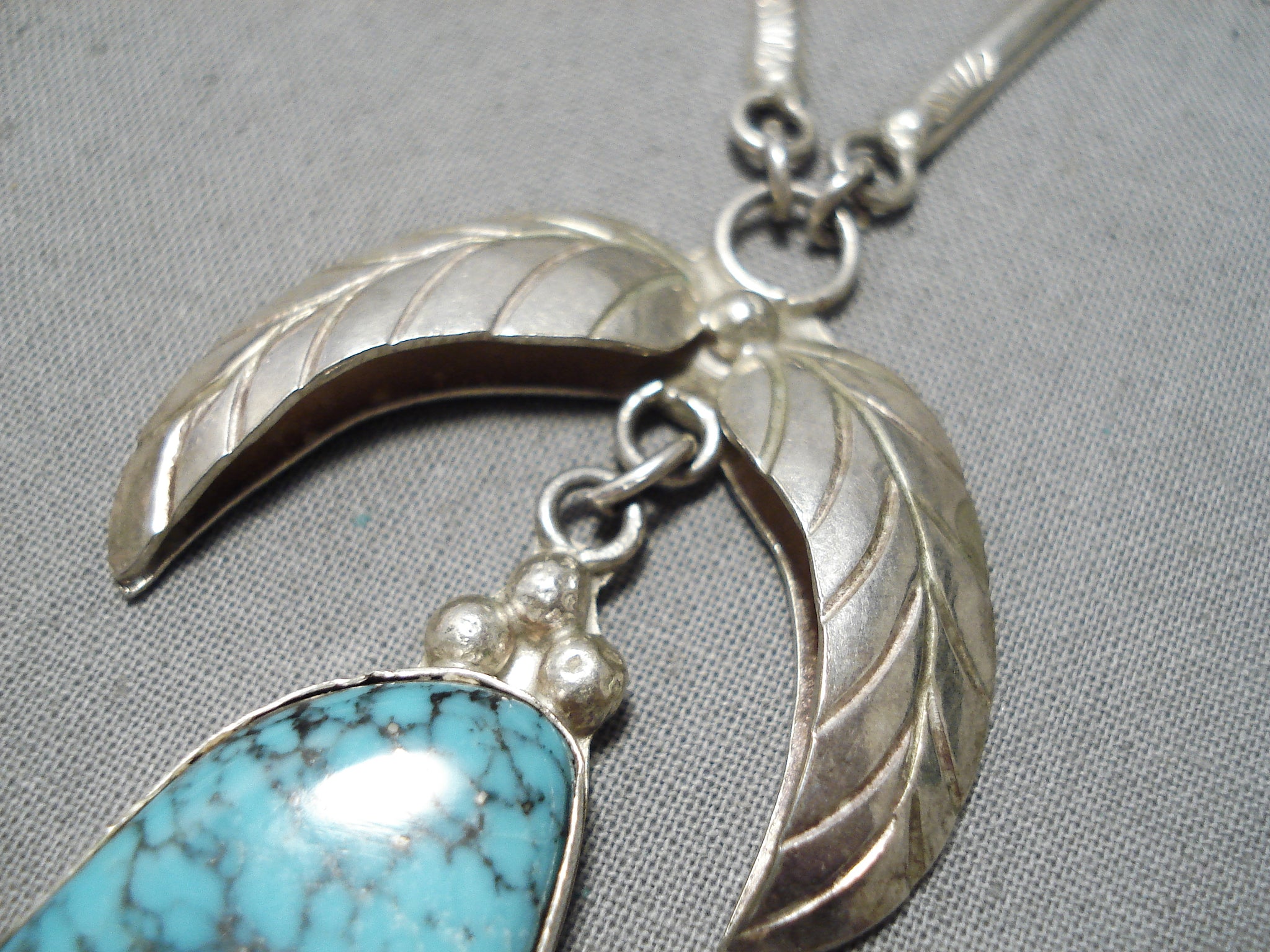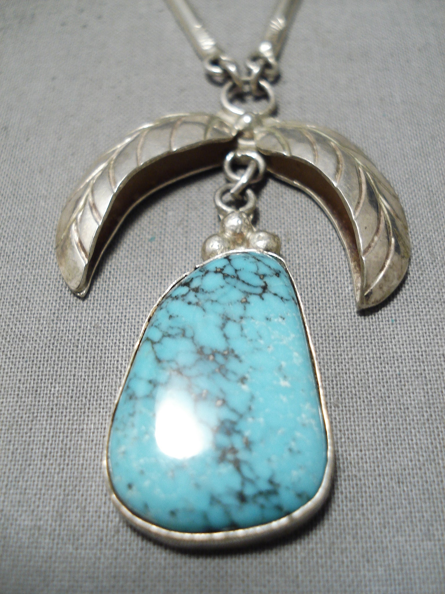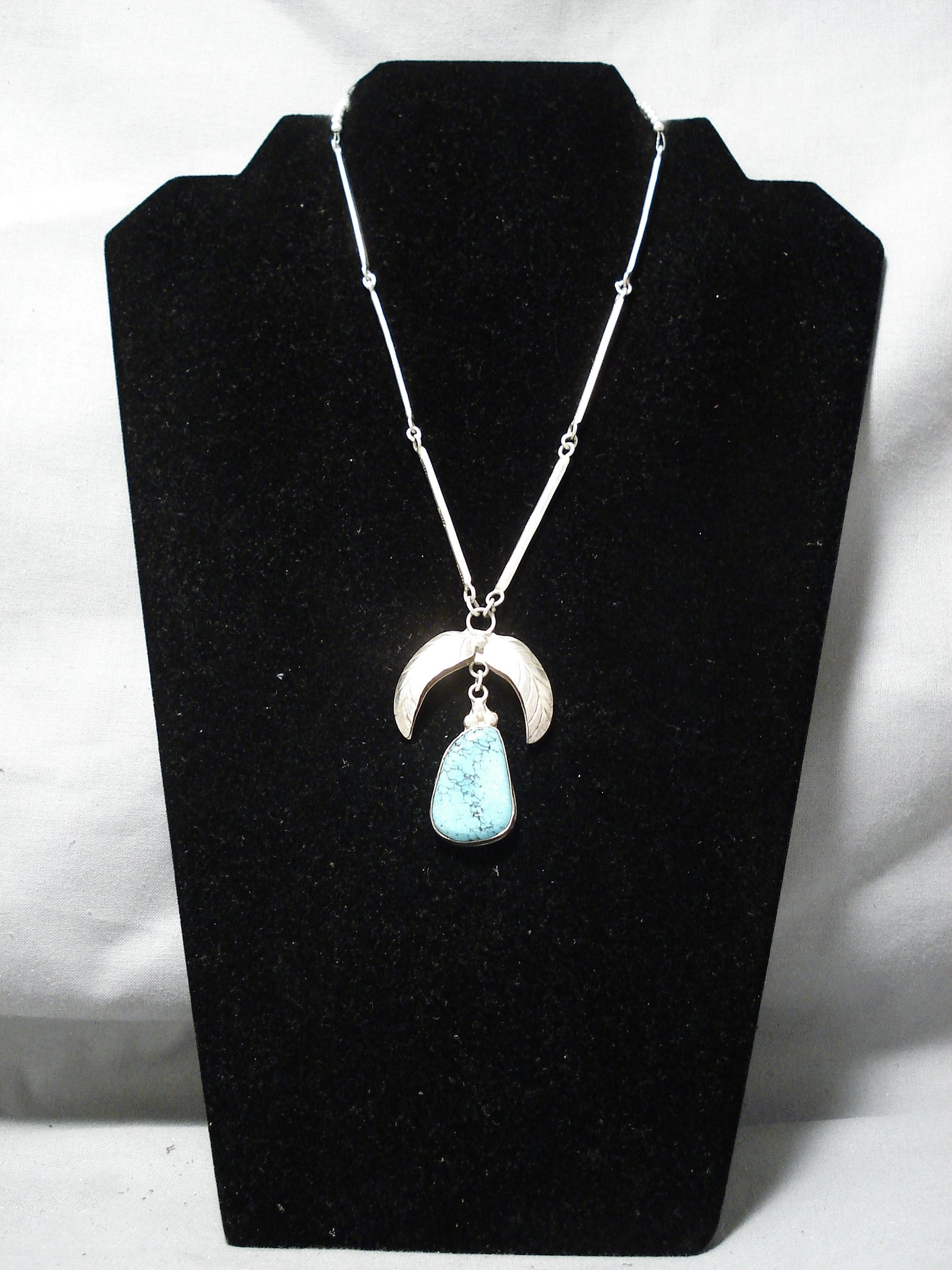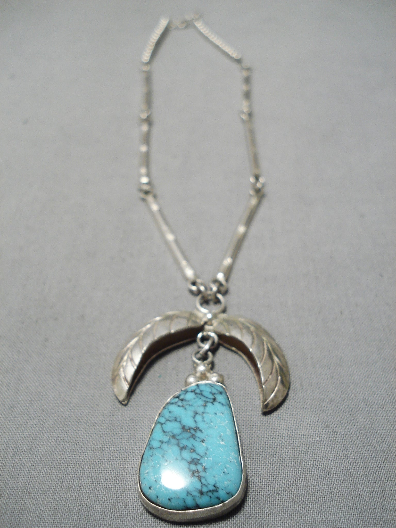 Superb Vintage Native American Navajo Blue Diamond Turquoise Sterling Silver Necklace