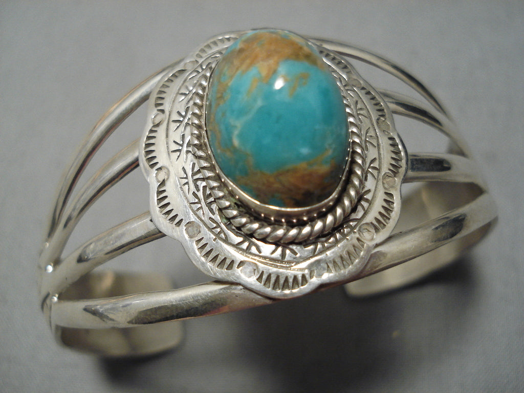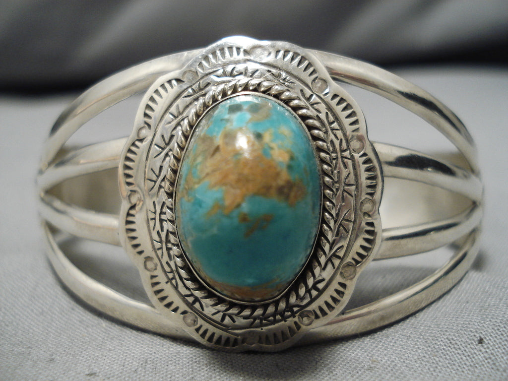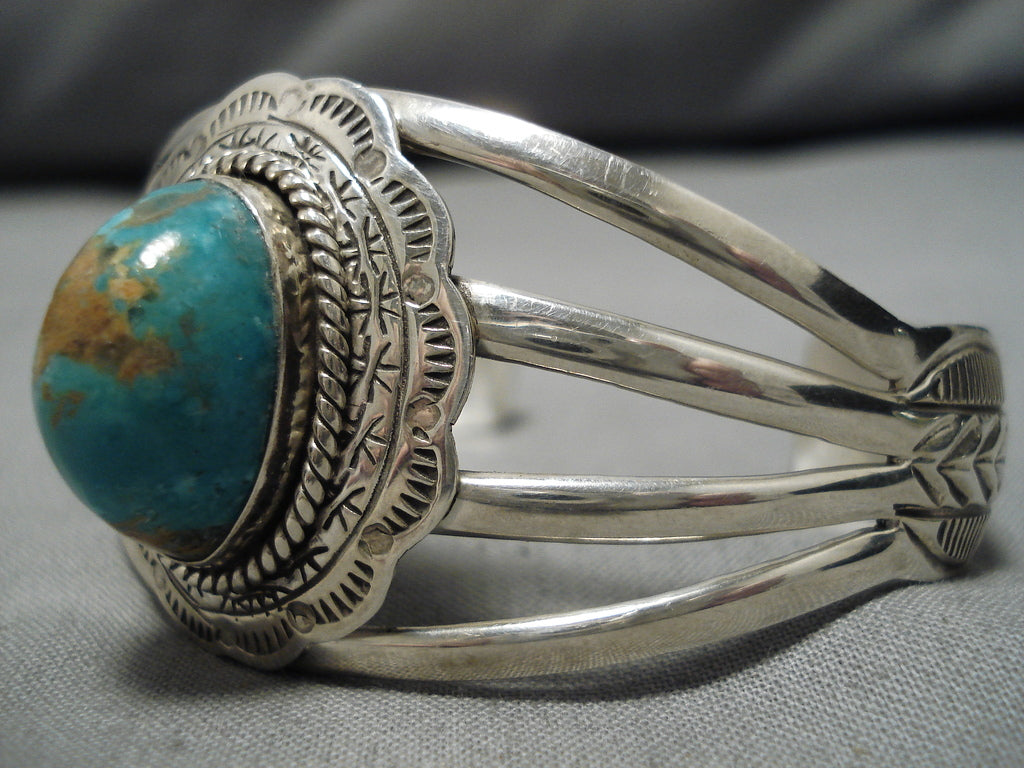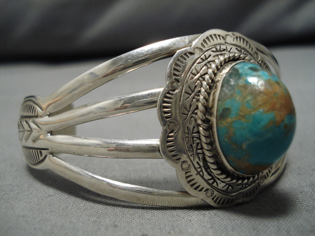 Superb Vintage Native American Navajo Royston Turquoise Sterling Silver Wil Benally Bracelet