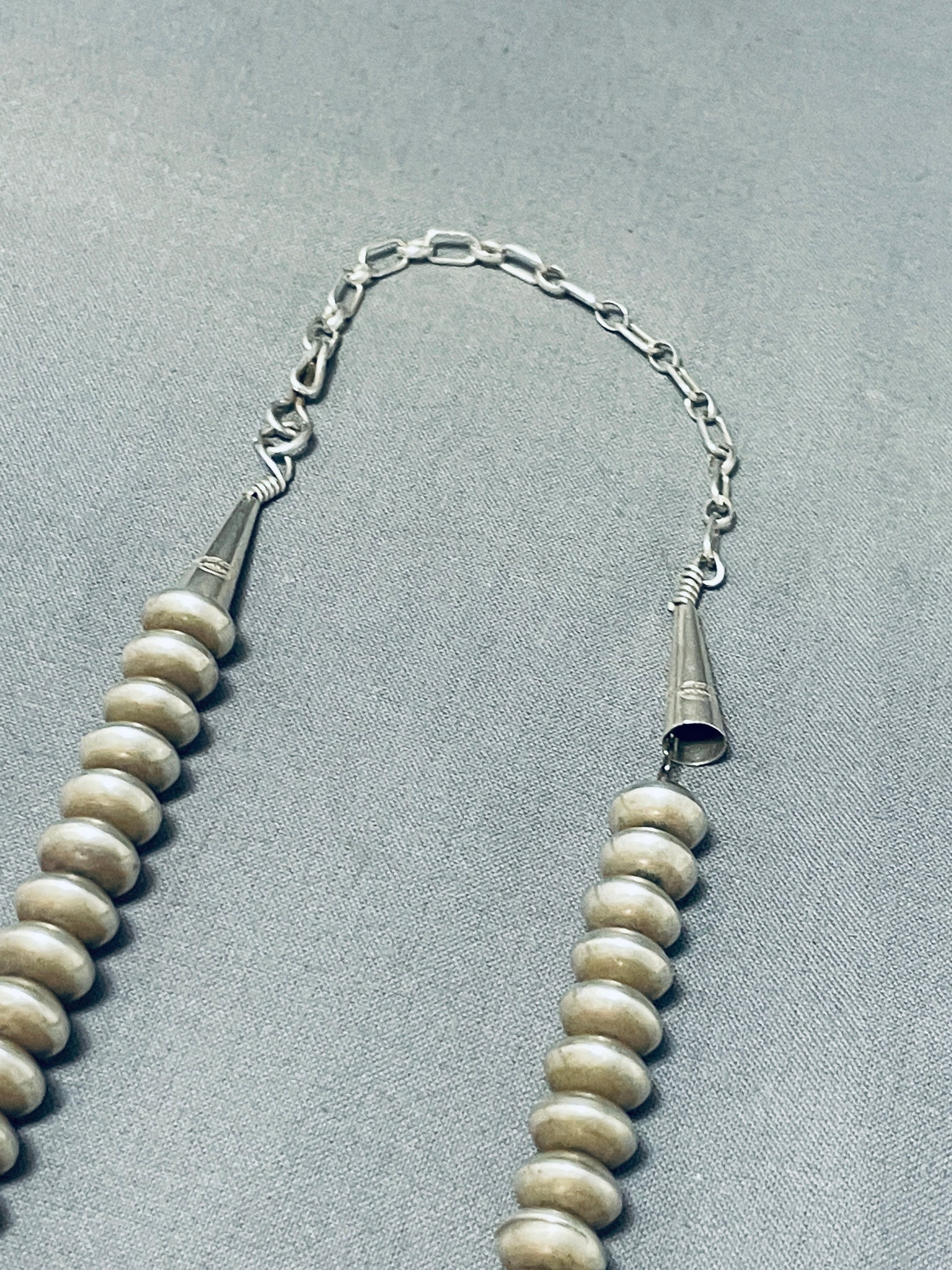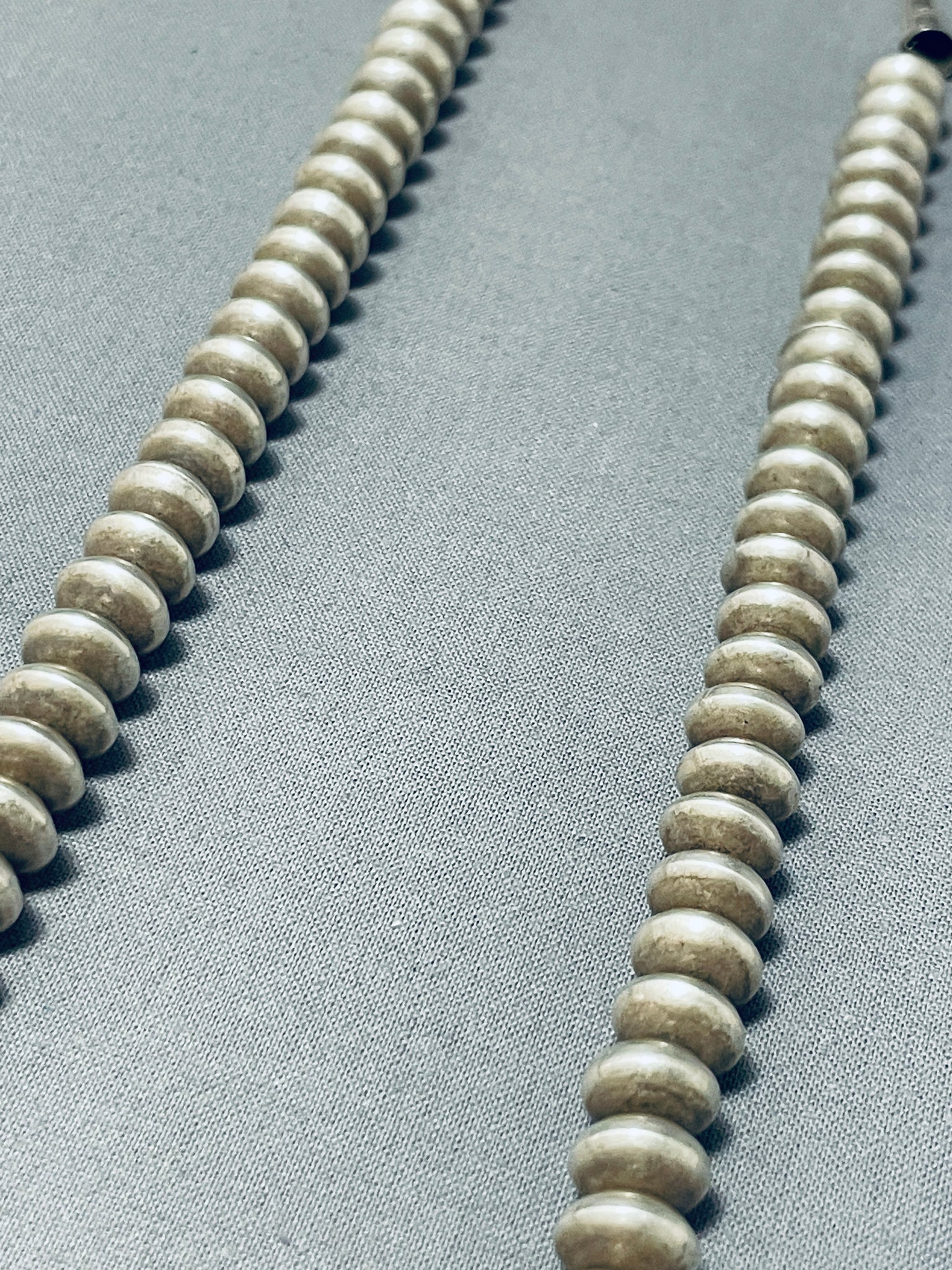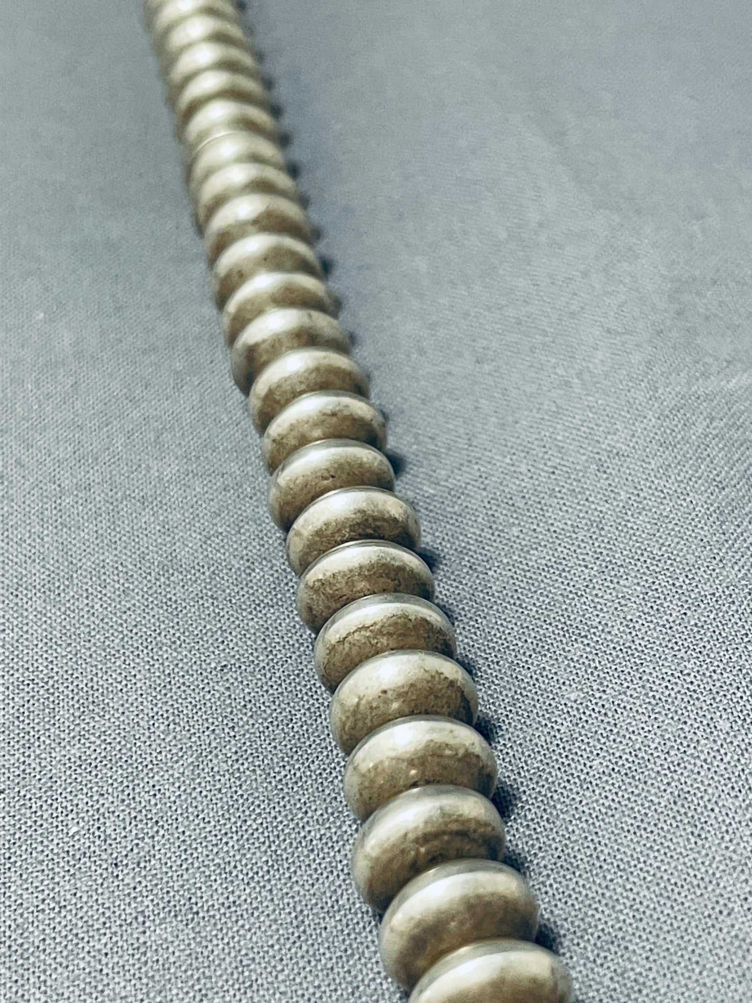 Superb Vintage Native American Navajo Sterling Silver Pillow Beads Cones Necklace