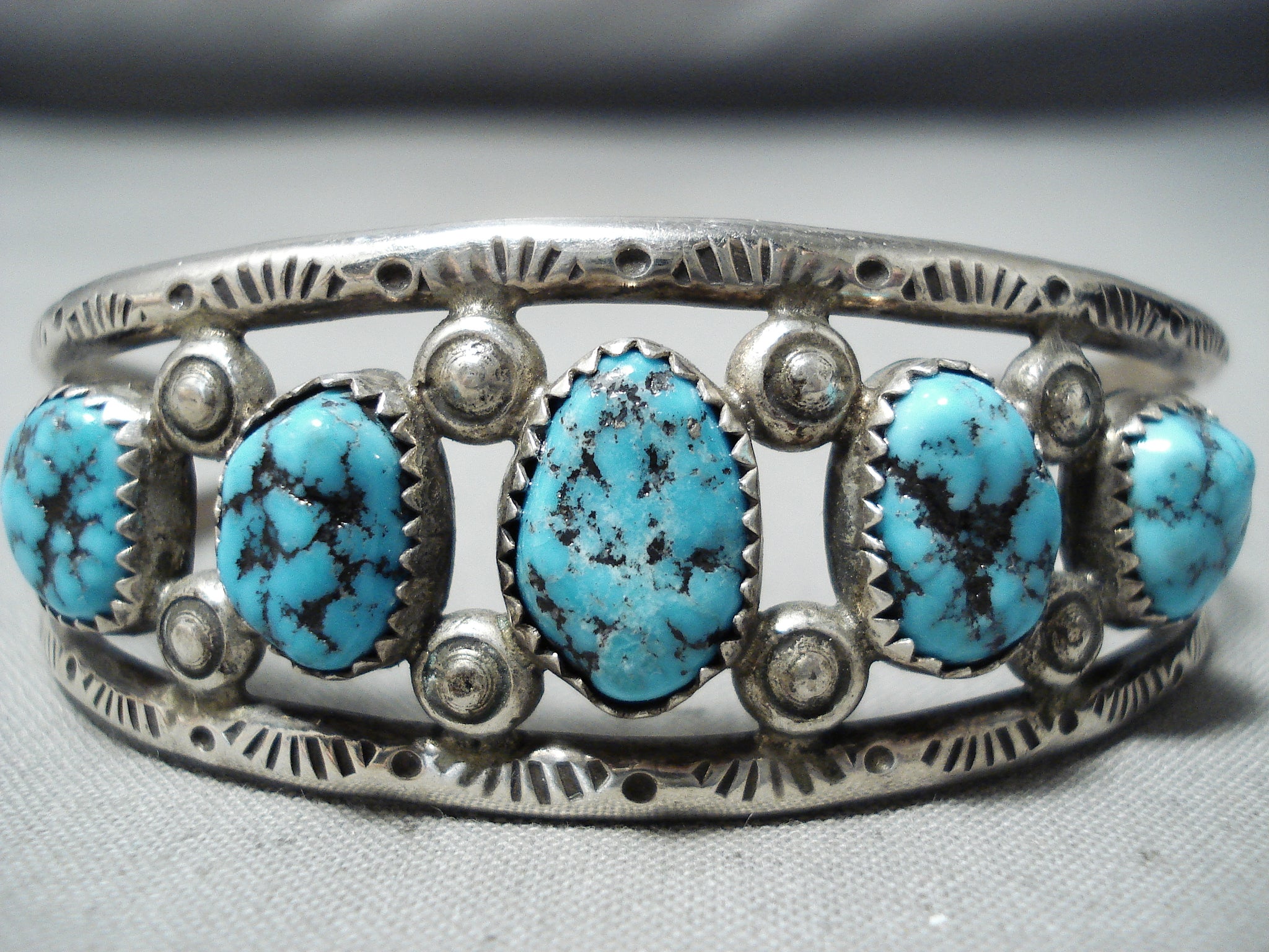 Superb Vintage Native American Navajo Turquoise Sterling Silver Bracelet