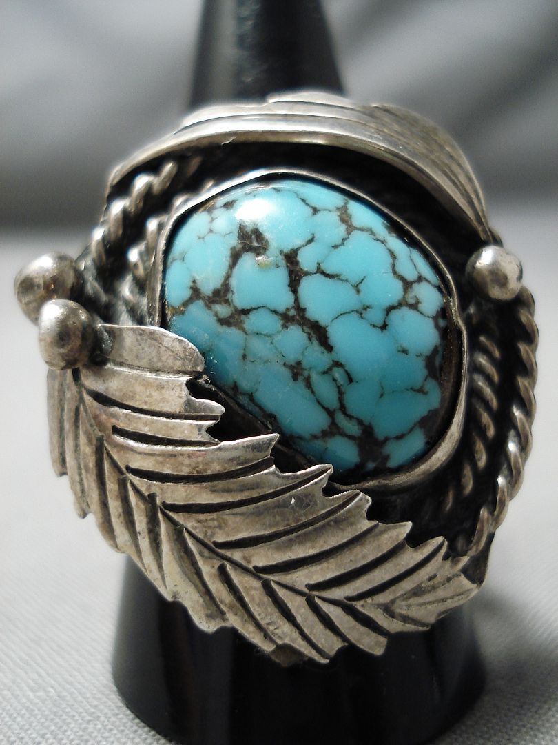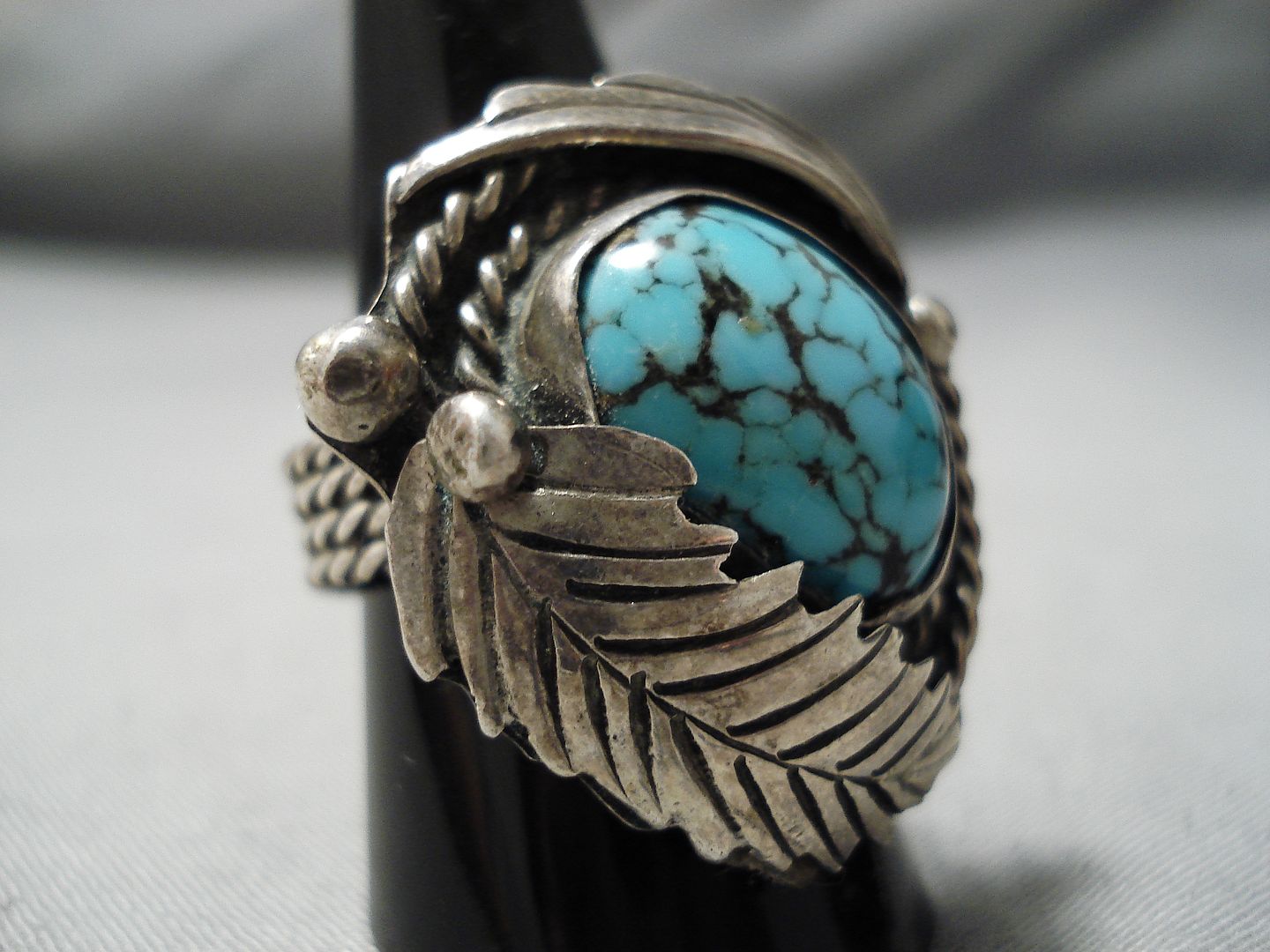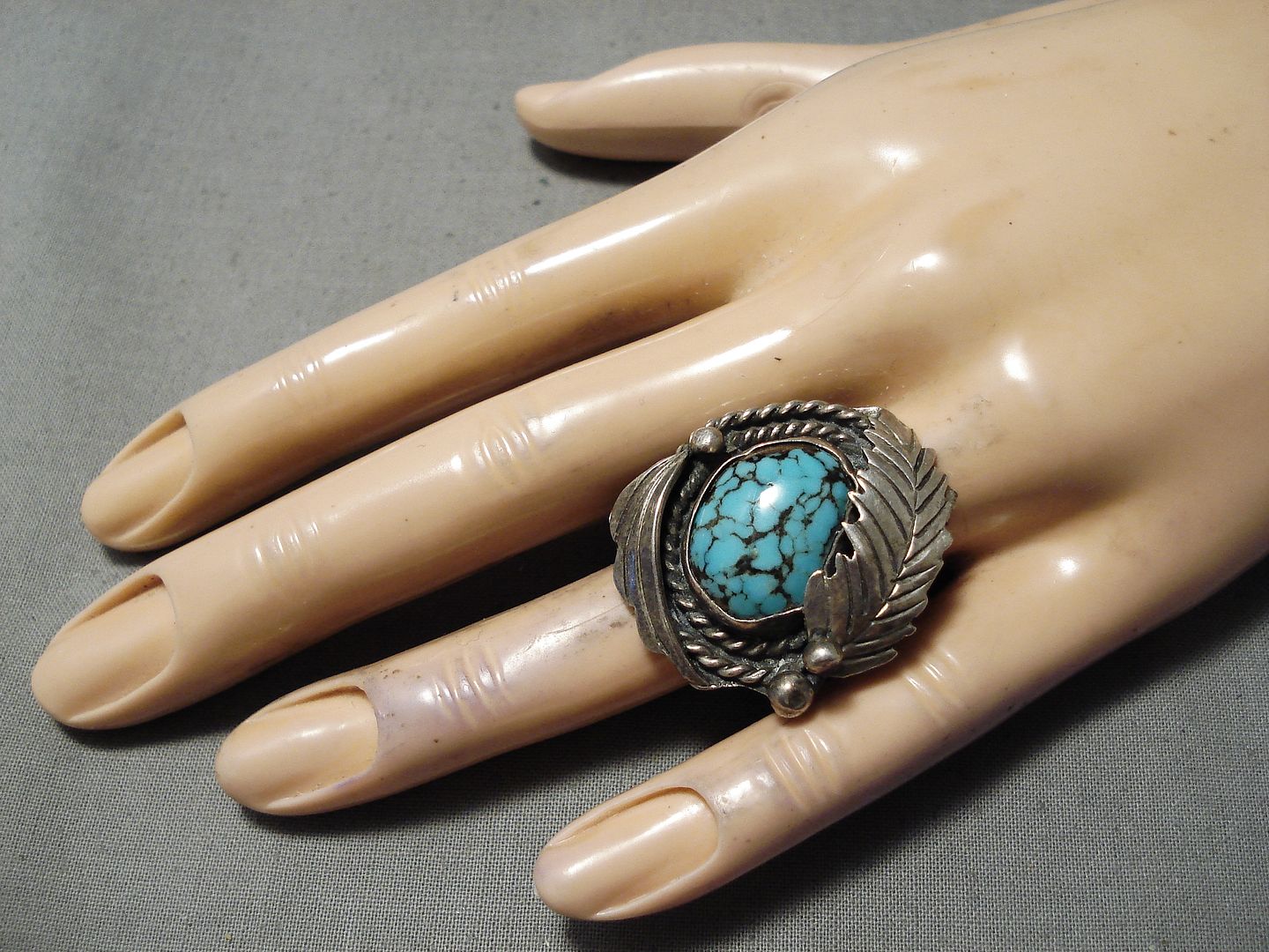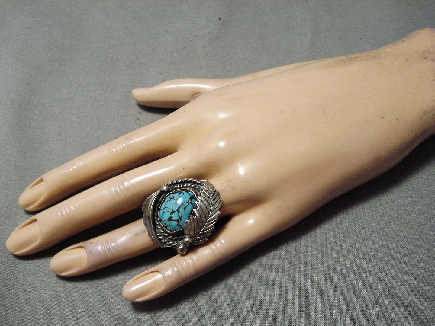 Superlative Vintage Native American Navajo Spiderweb Turquoise Sterling Silver Ring