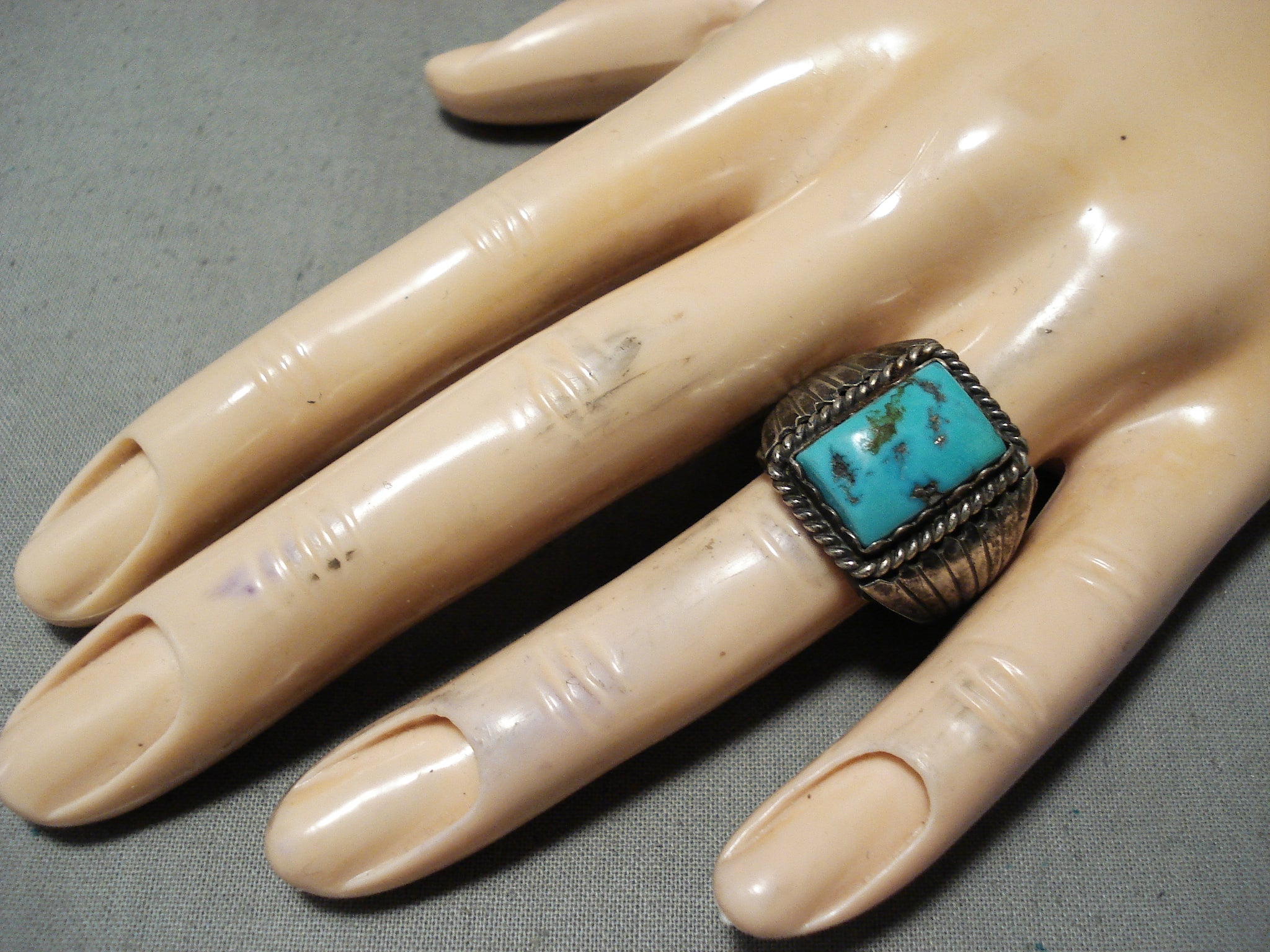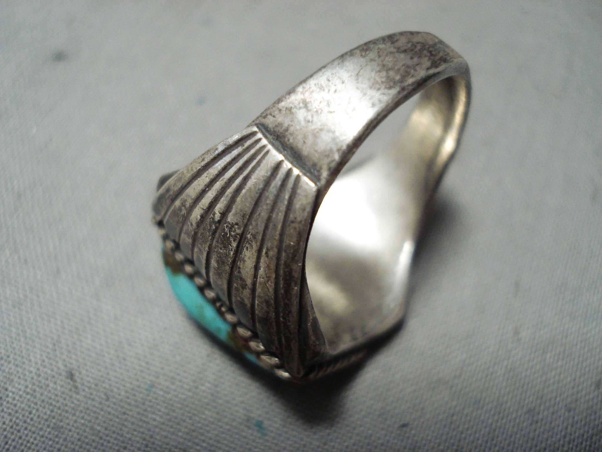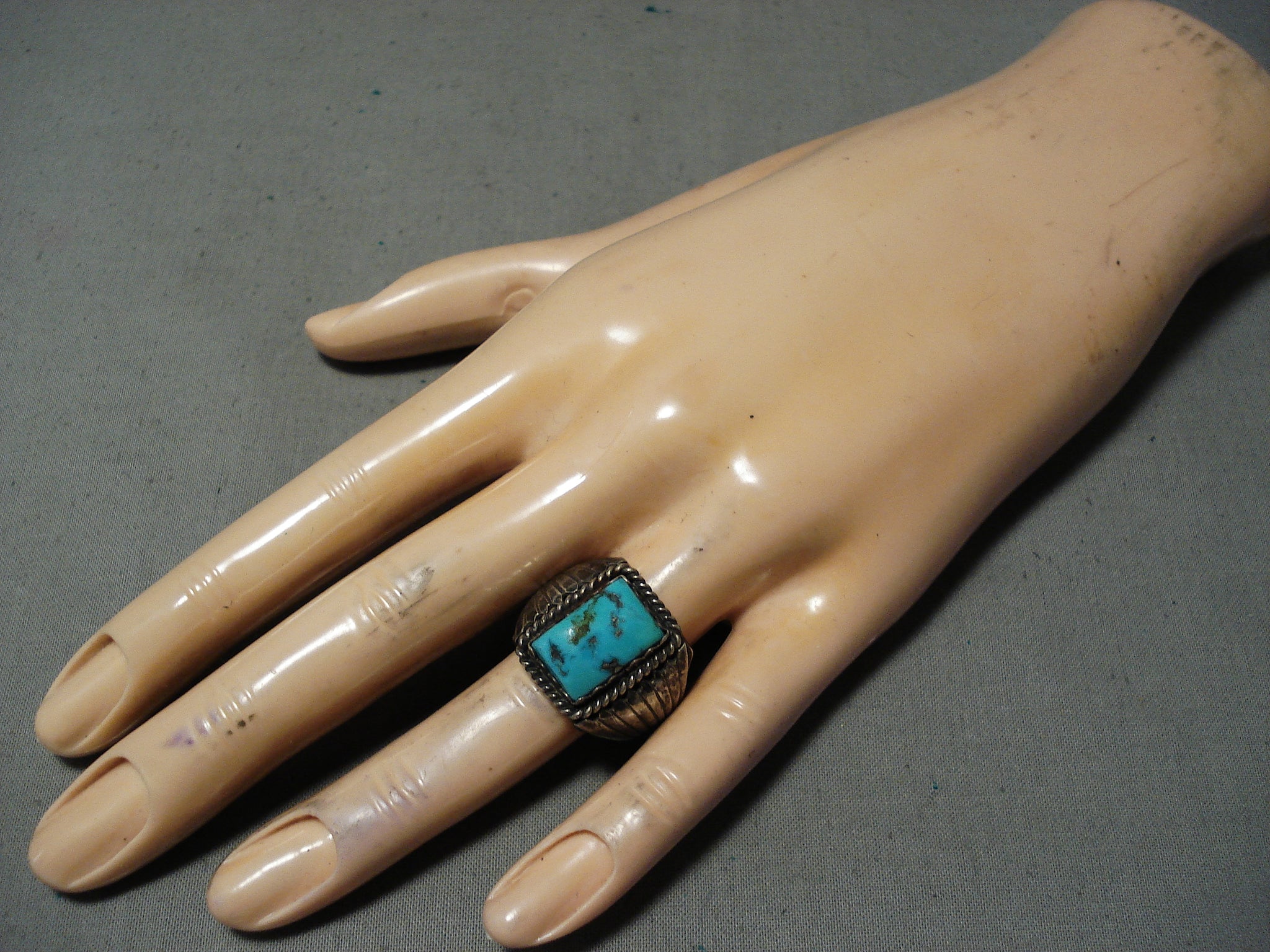 Superlative Vintage Navajo Turquoise Sterling Silver Ring Native American Old