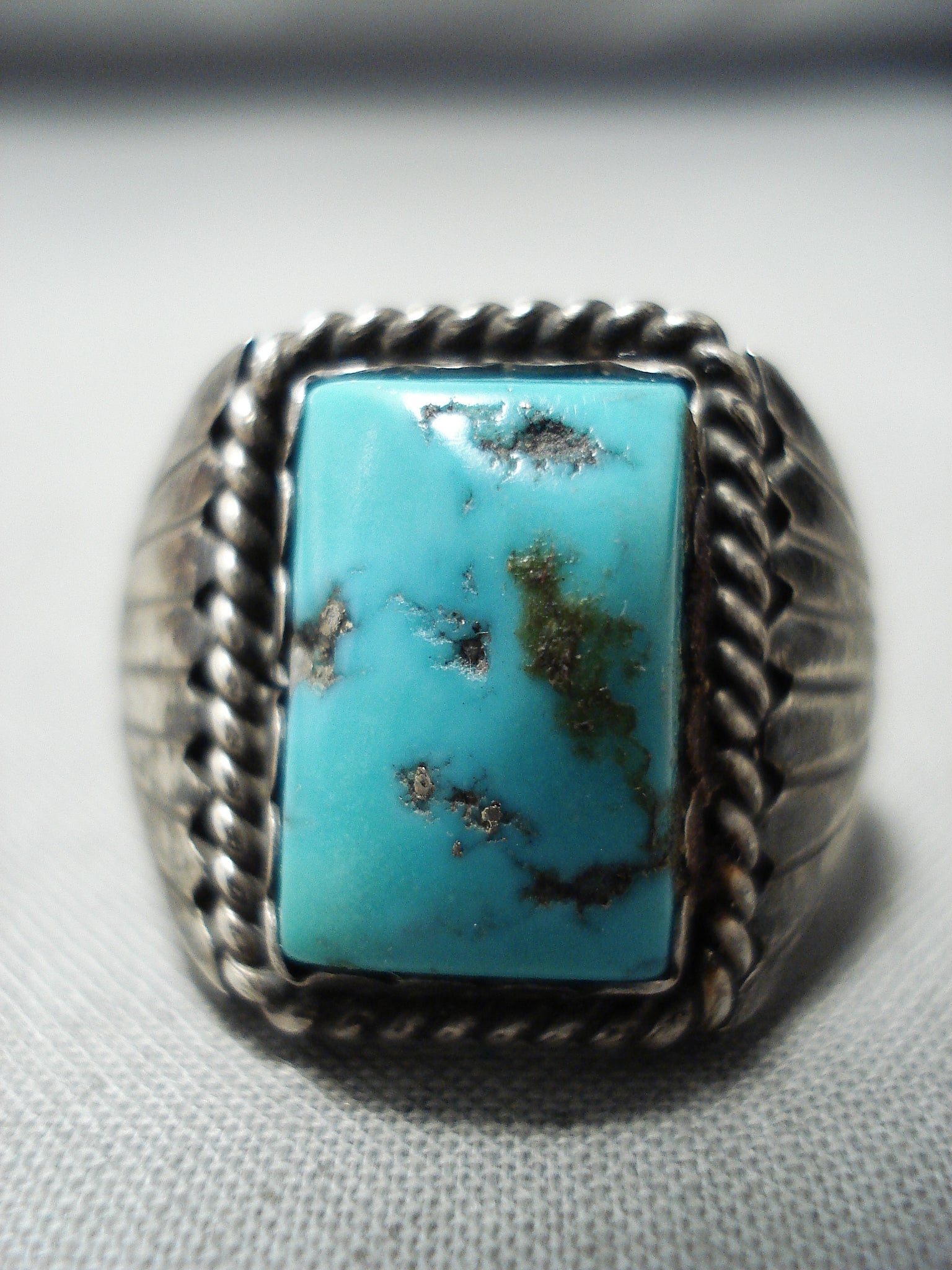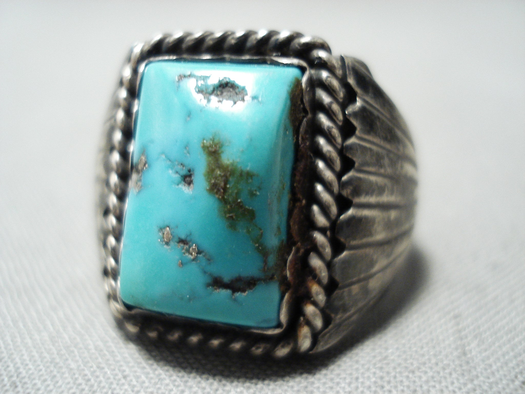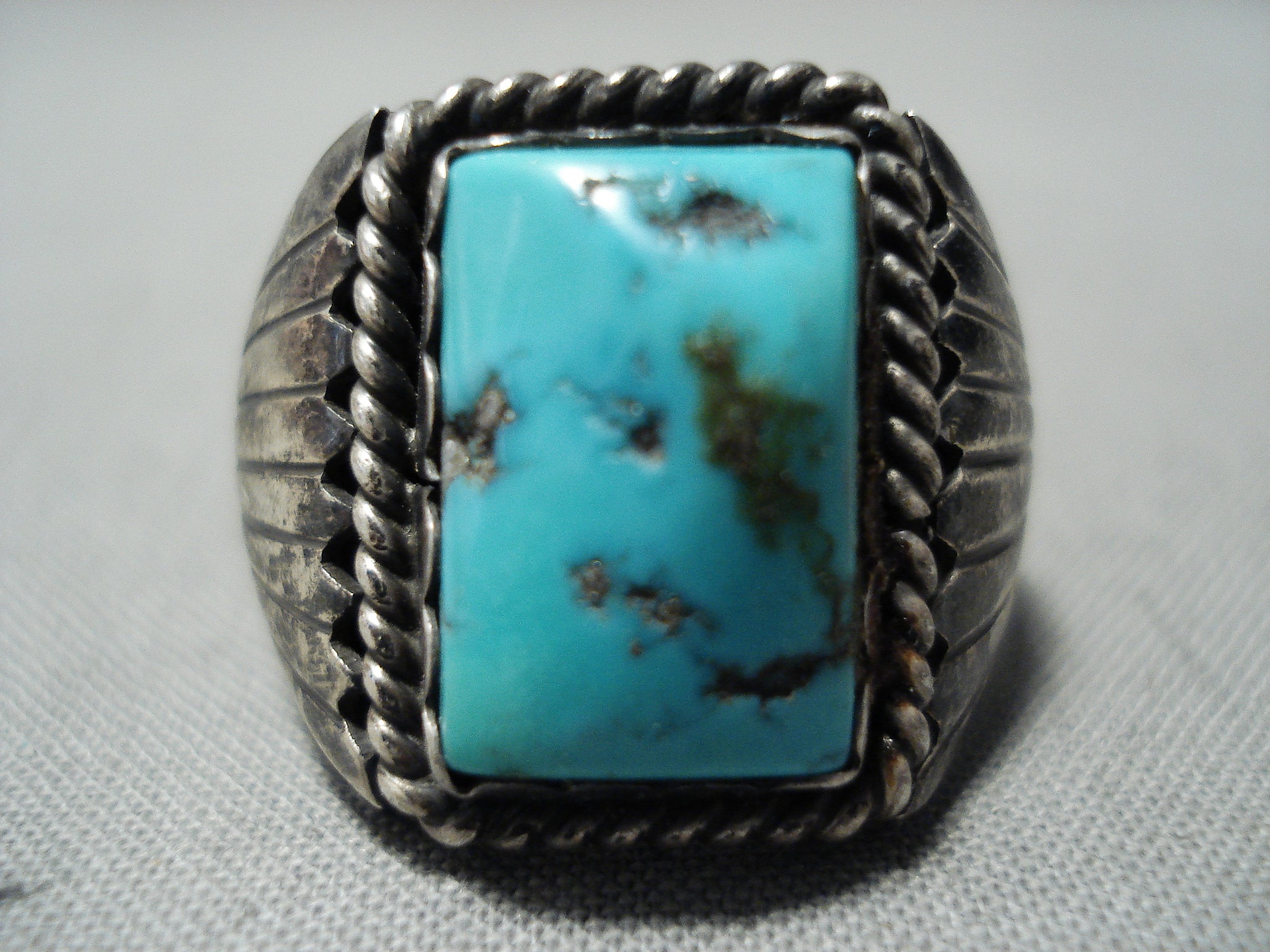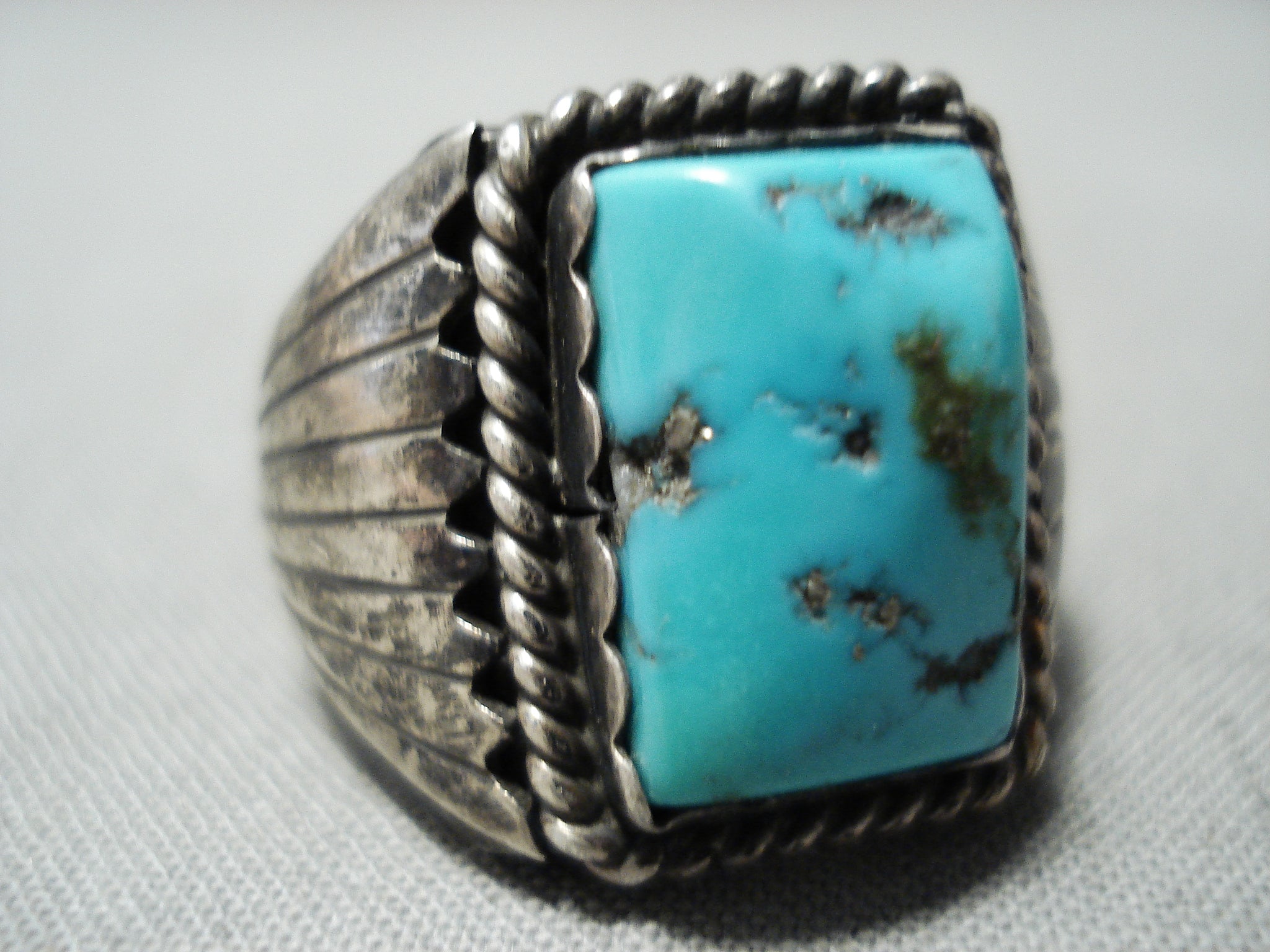 Superlative Vintage Navajo Turquoise Sterling Silver Ring Native American Old