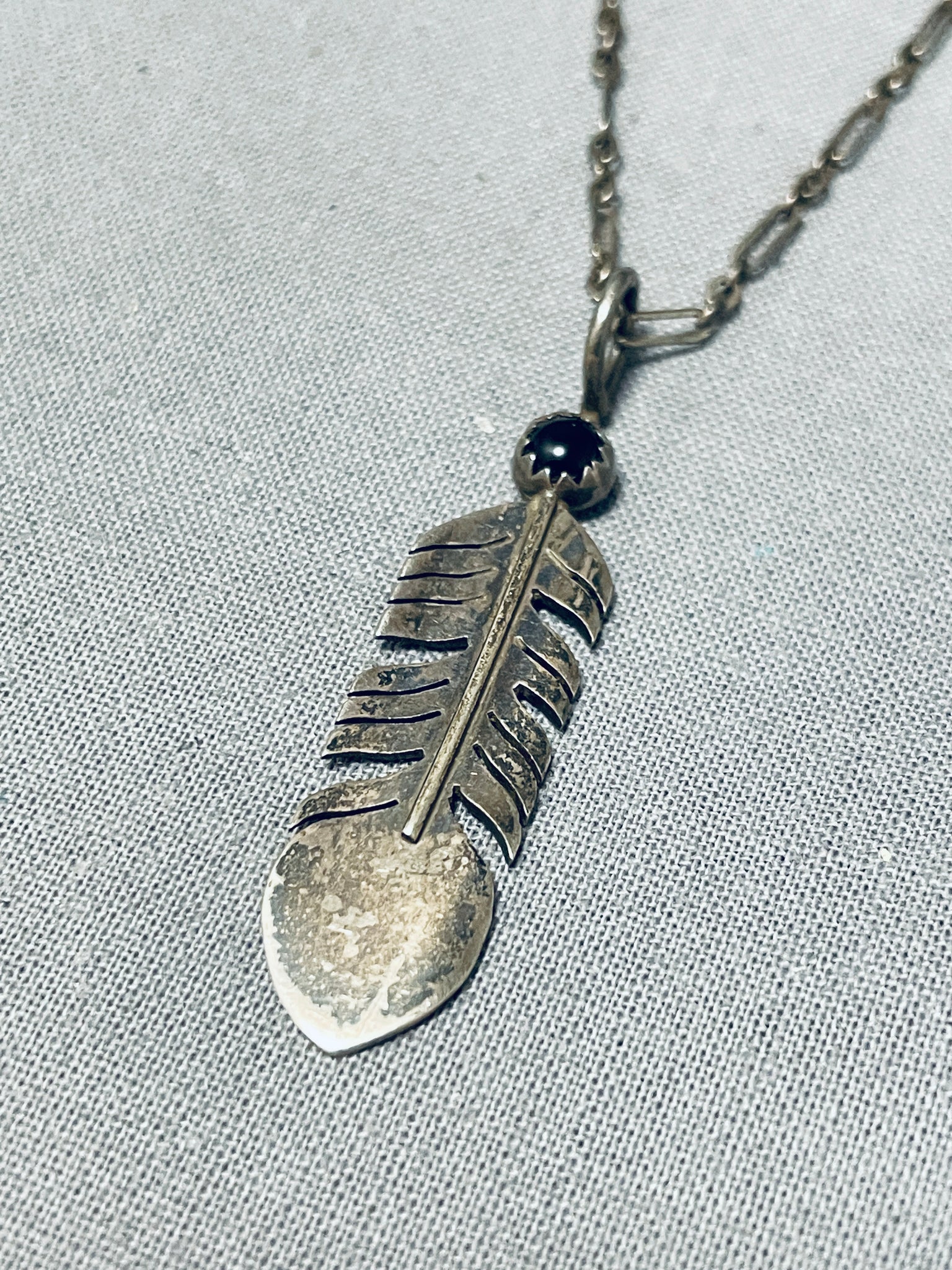 Sweet Vintage Native American Navajo Jet Stone Sterling Silver Necklace