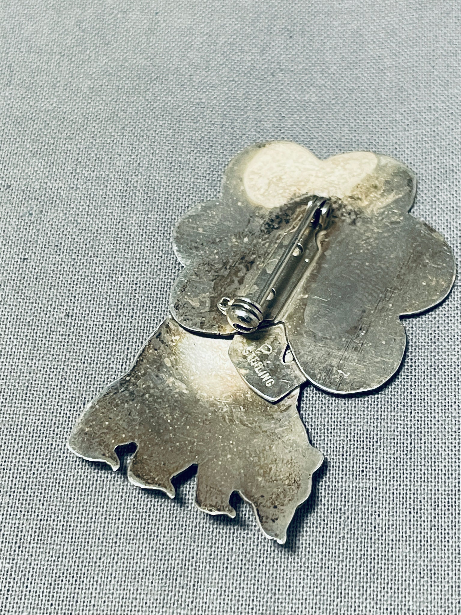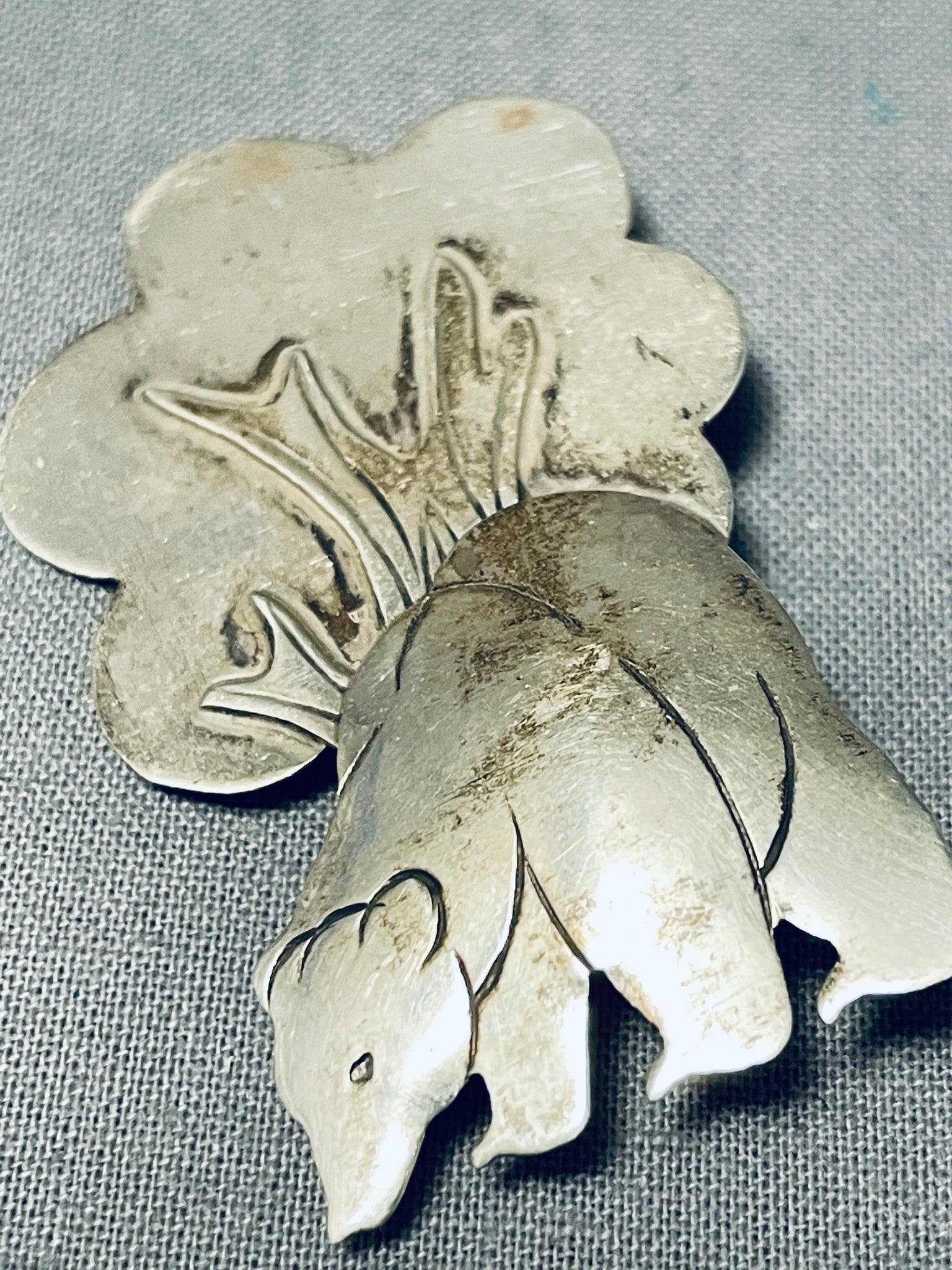 Sweet Vintage Native American Navajo Sterling Silver Bear Pin