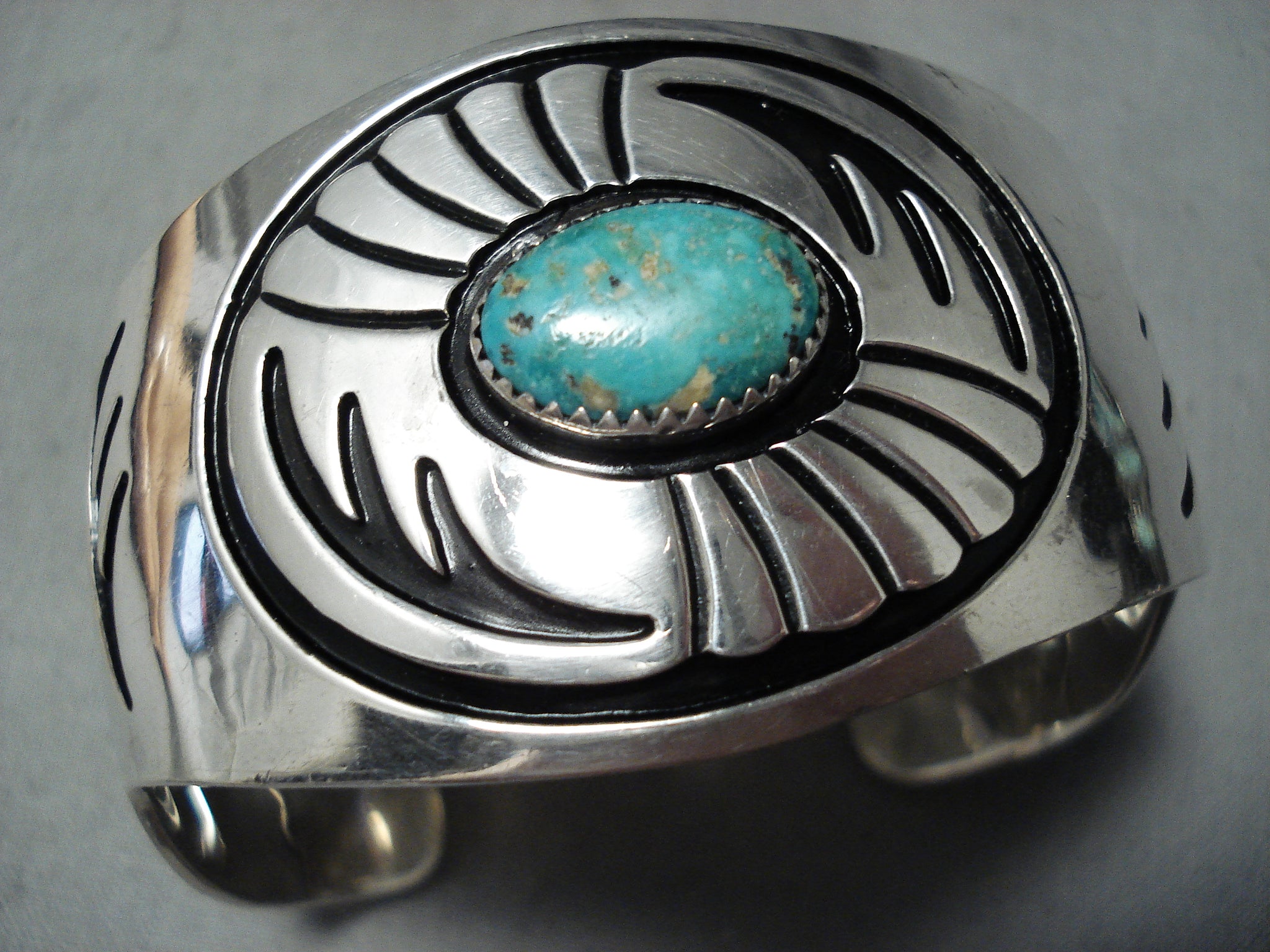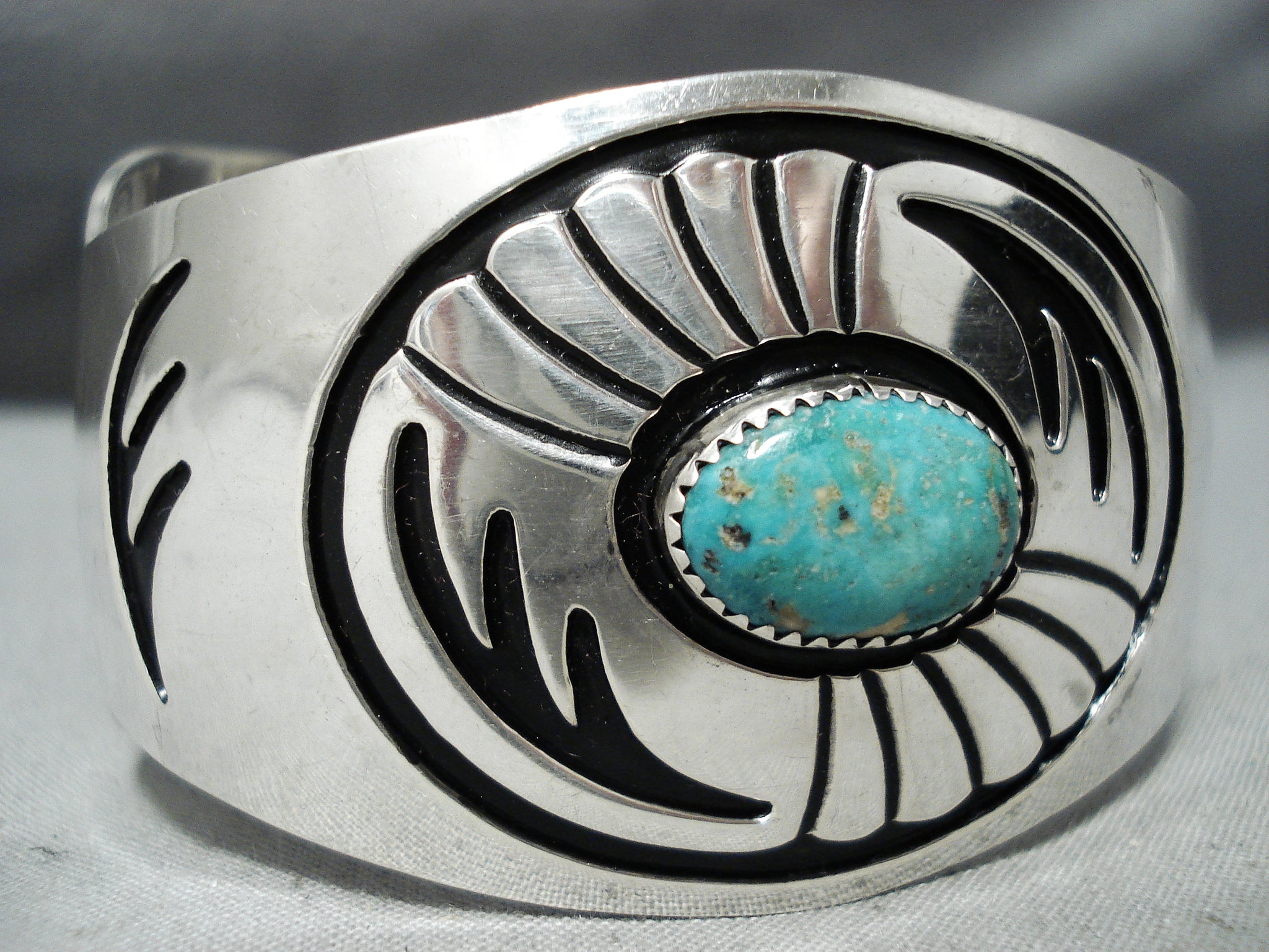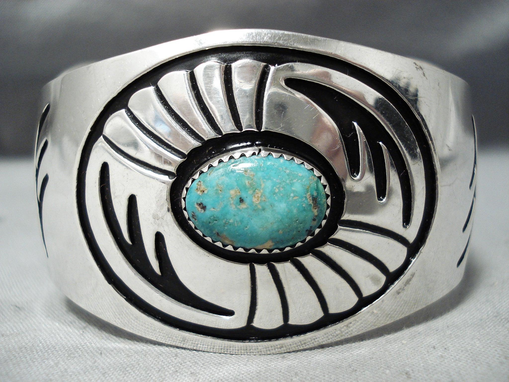 Swirling Mesmerizing Vintage Native American Navajo Blue Gem Turquoise Sterling Silver Bracelet