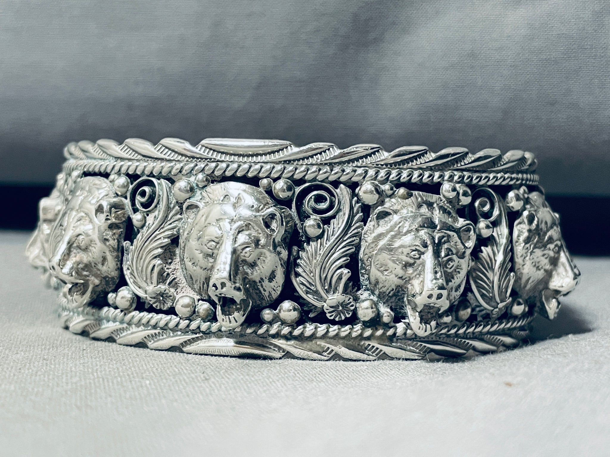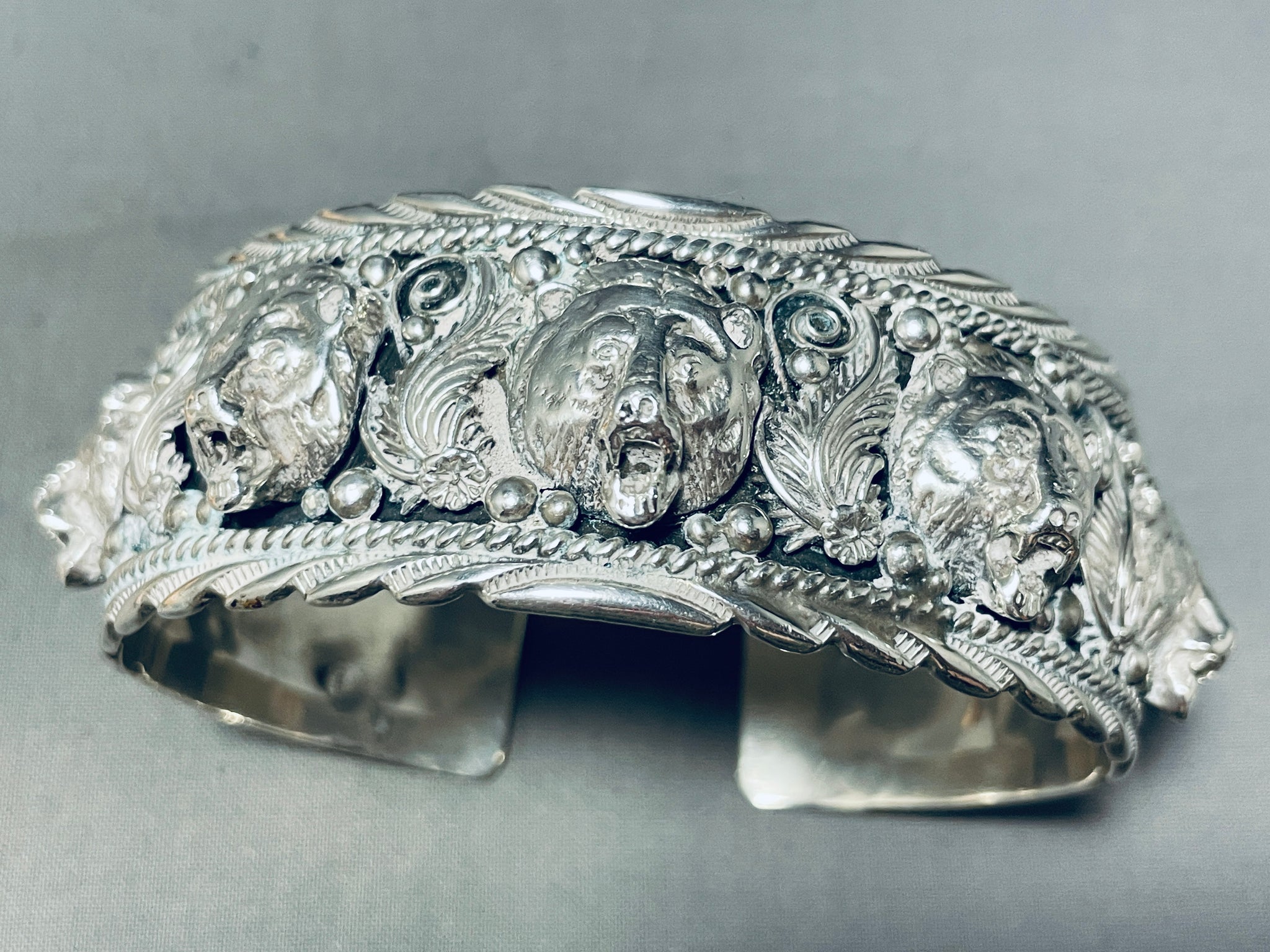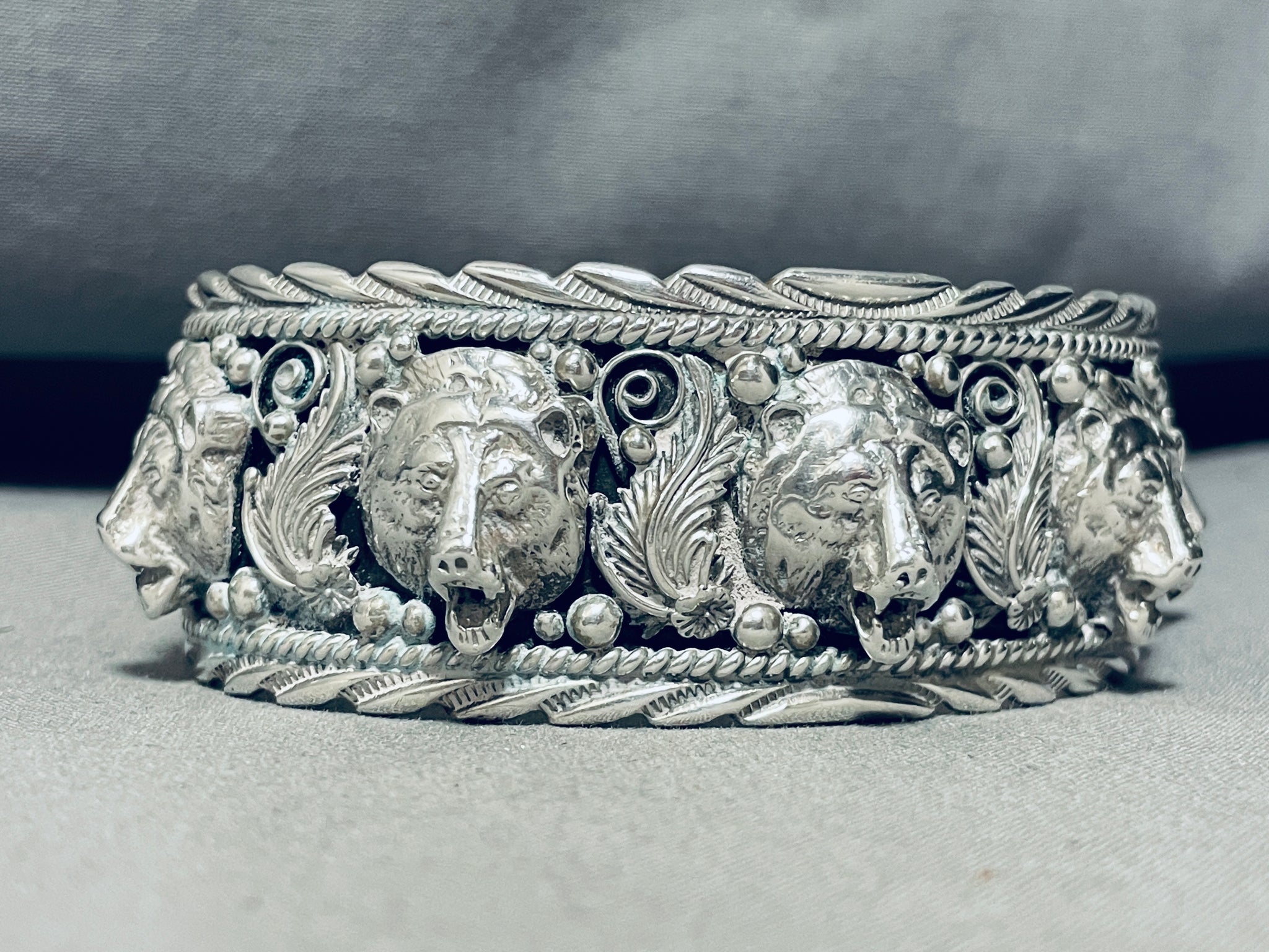 Symbolic Protection!! Bears Vintage Native American Navajo Sterling Silver Bracelet