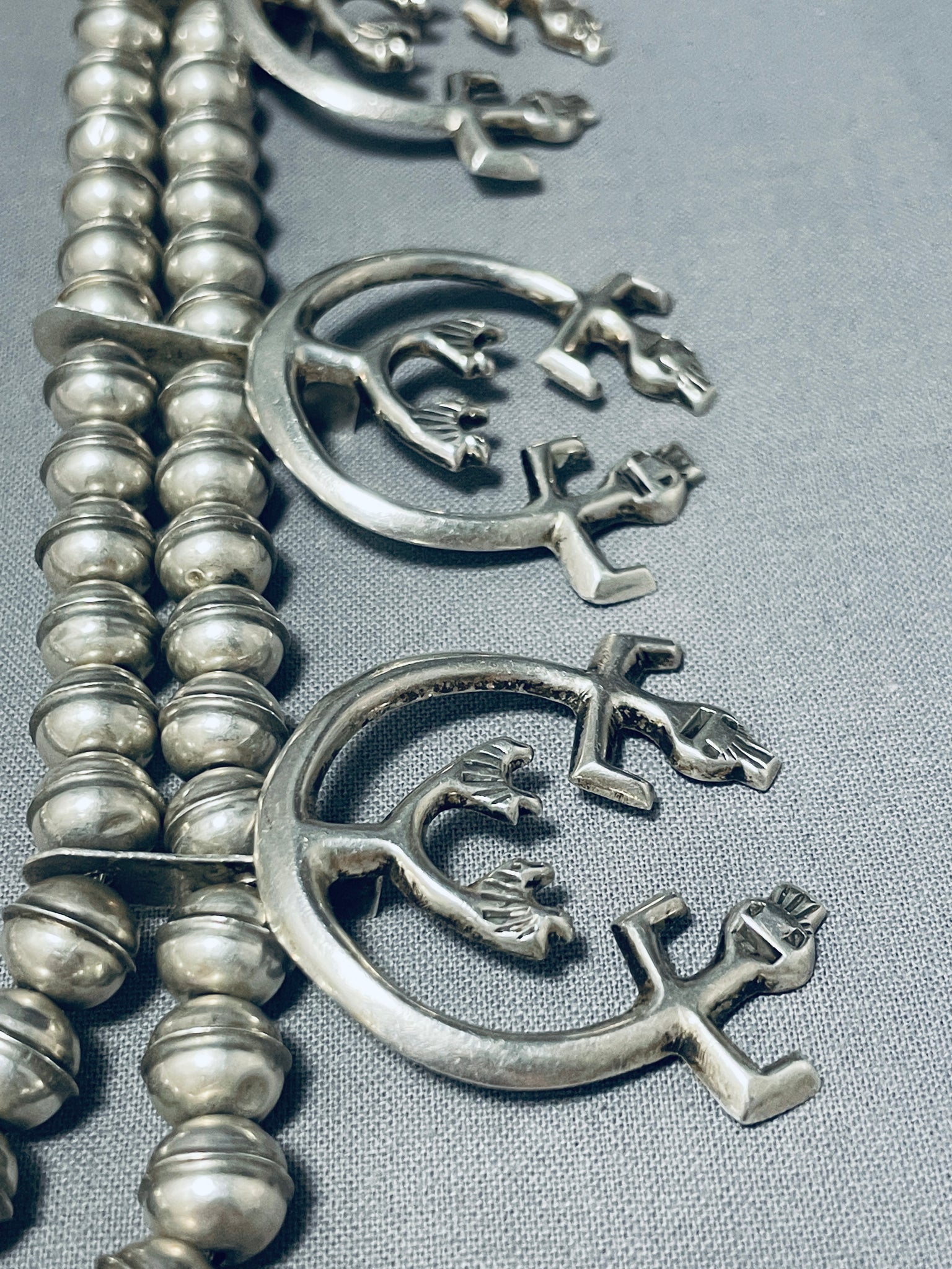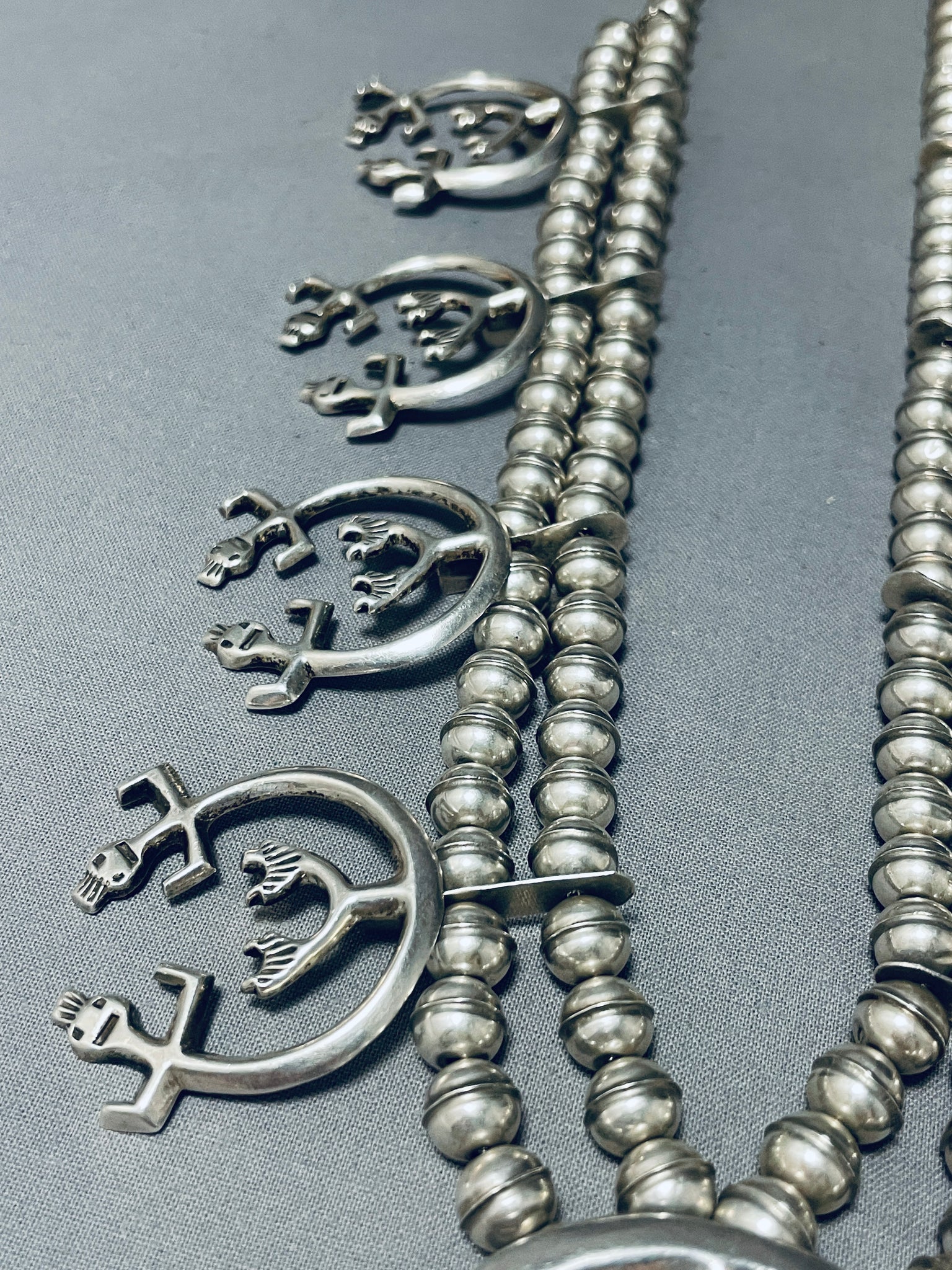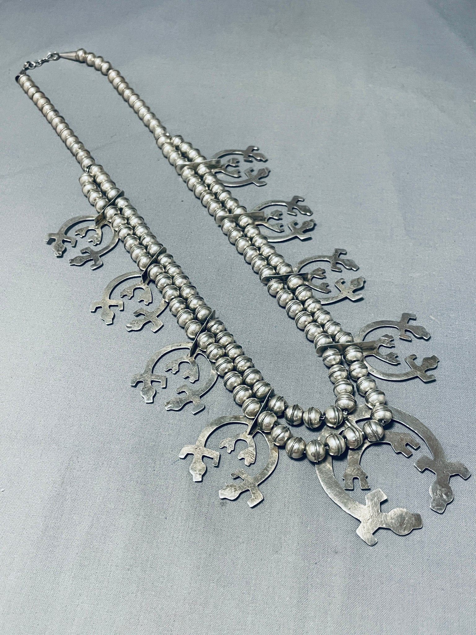 Symbolic Vintage Native American Navajo Sterling Silver Squash Blossom Necklace