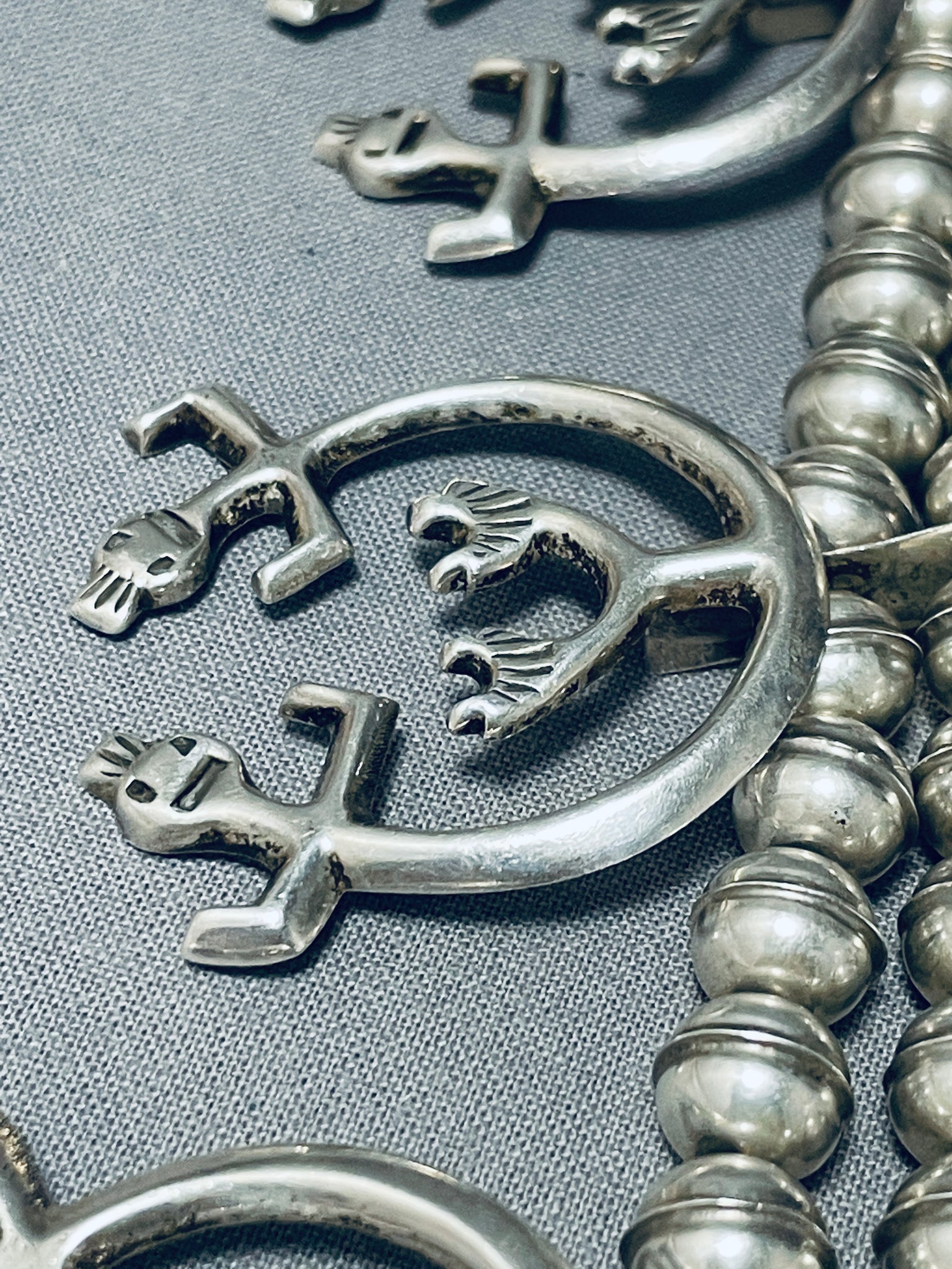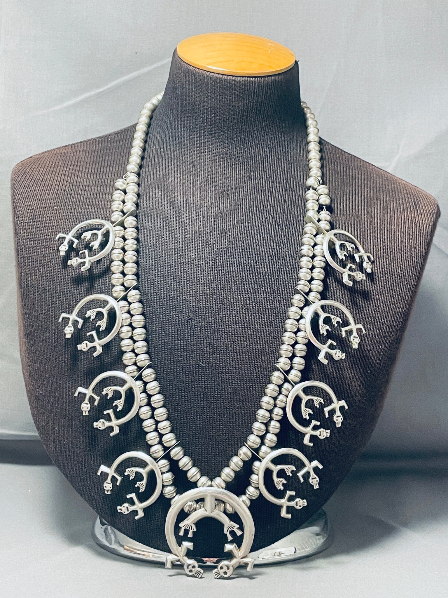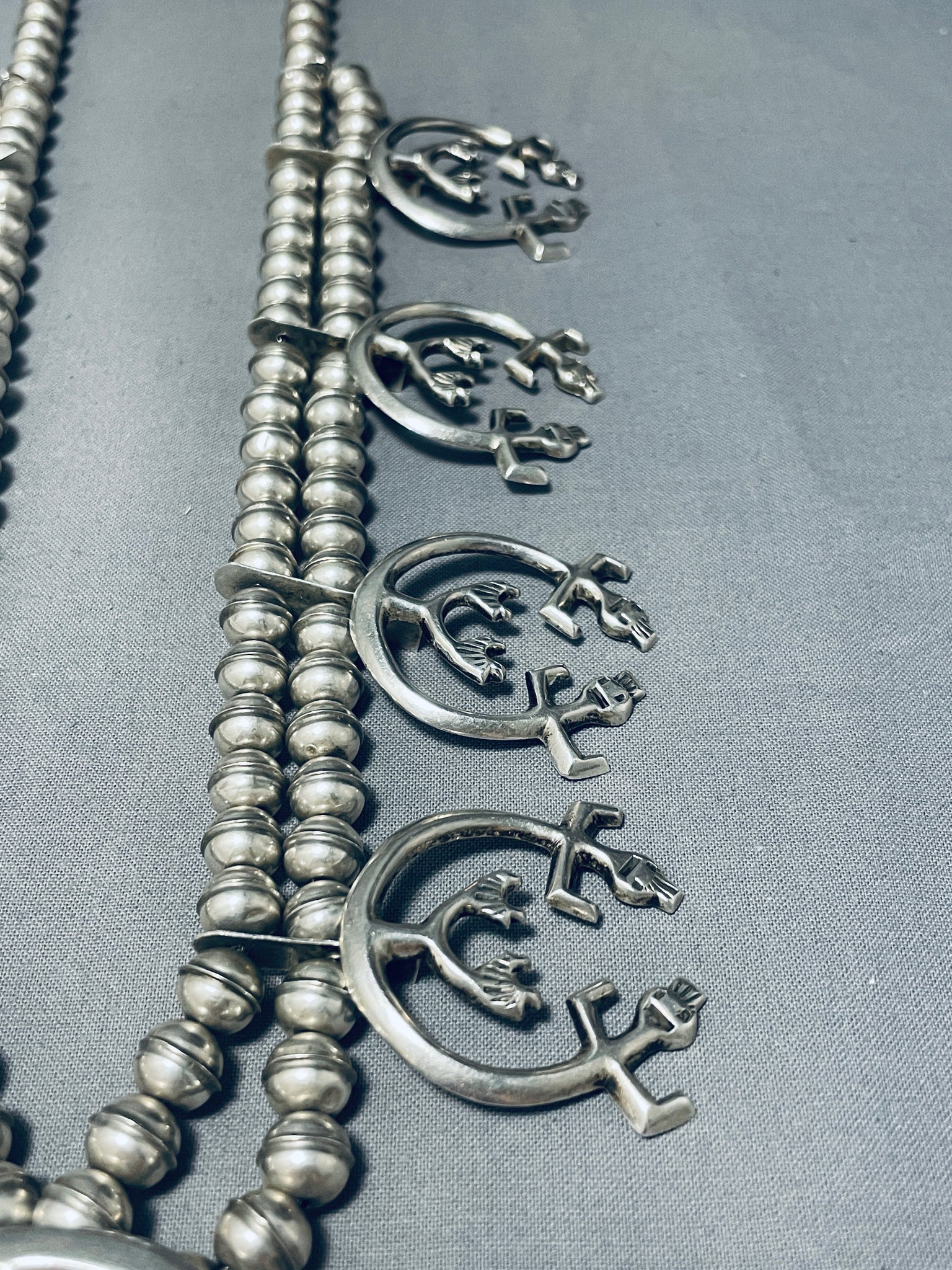 Symbolic Vintage Native American Navajo Sterling Silver Squash Blossom Necklace