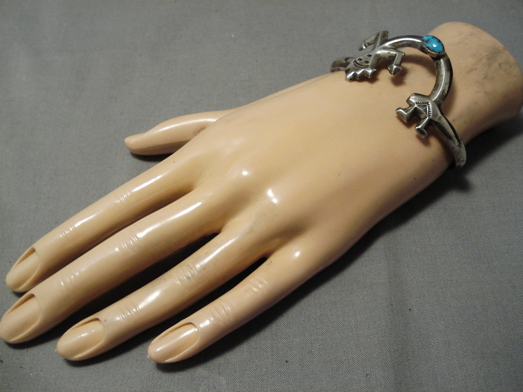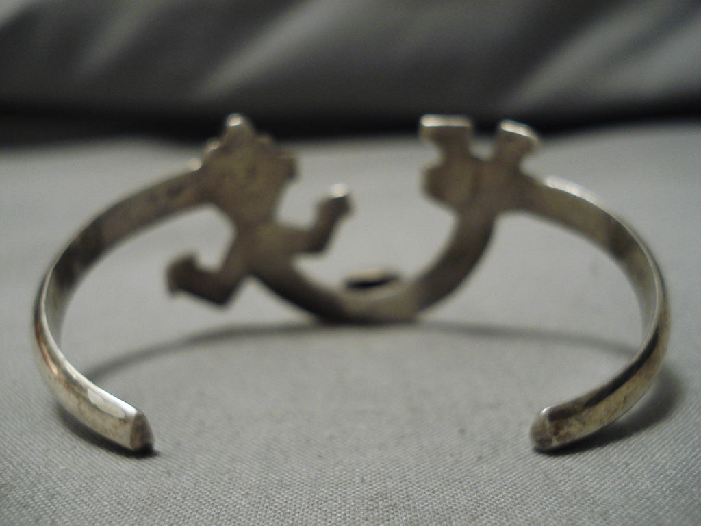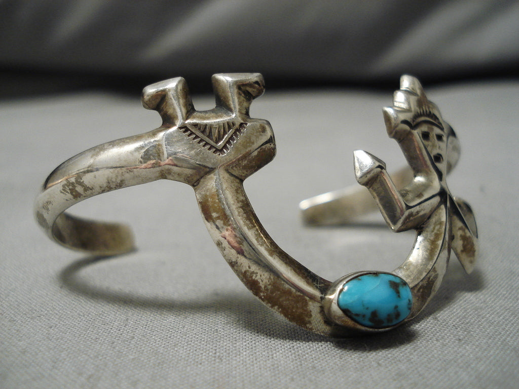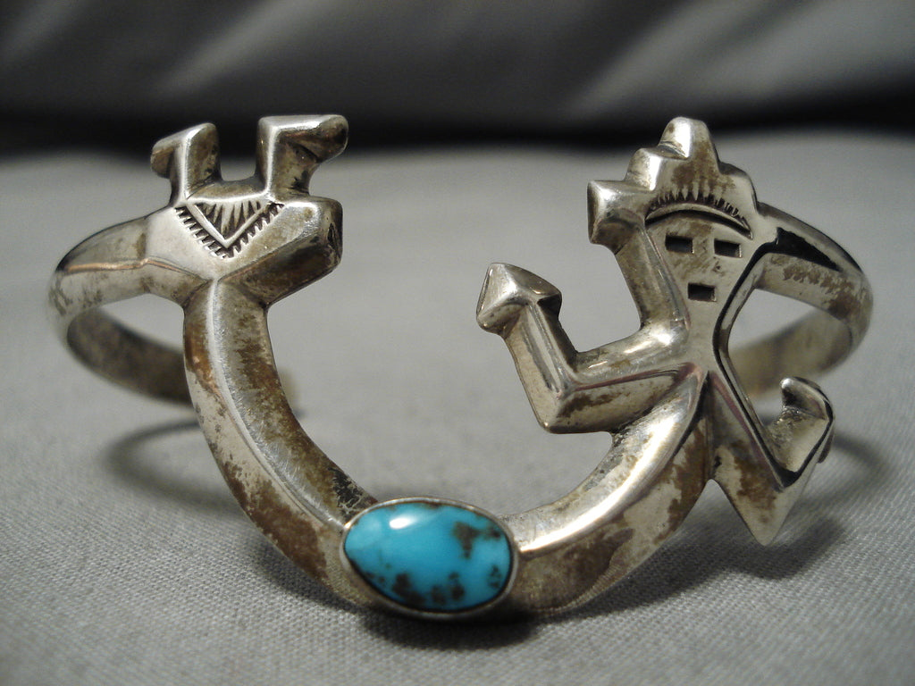 Symbolic Vintage Native American Navajo Turquoise Sterling Silver Kachina Bracelet Old
