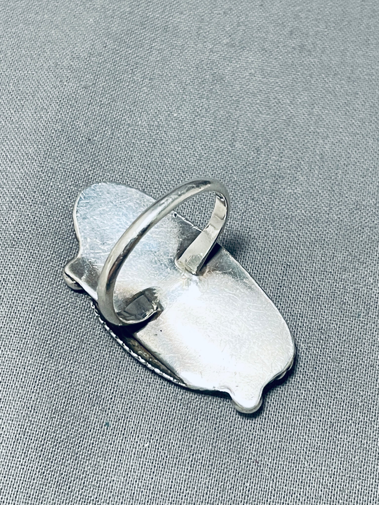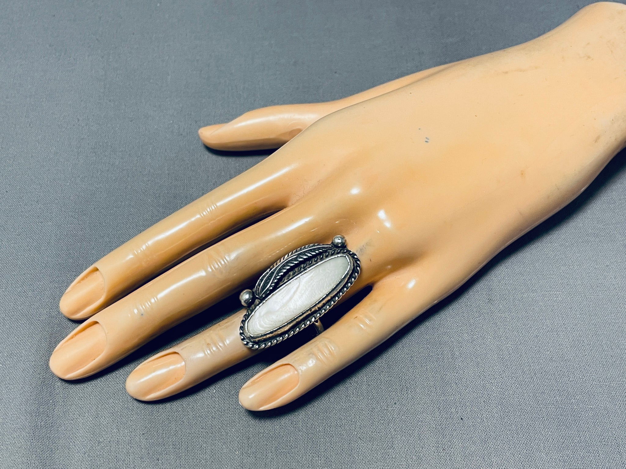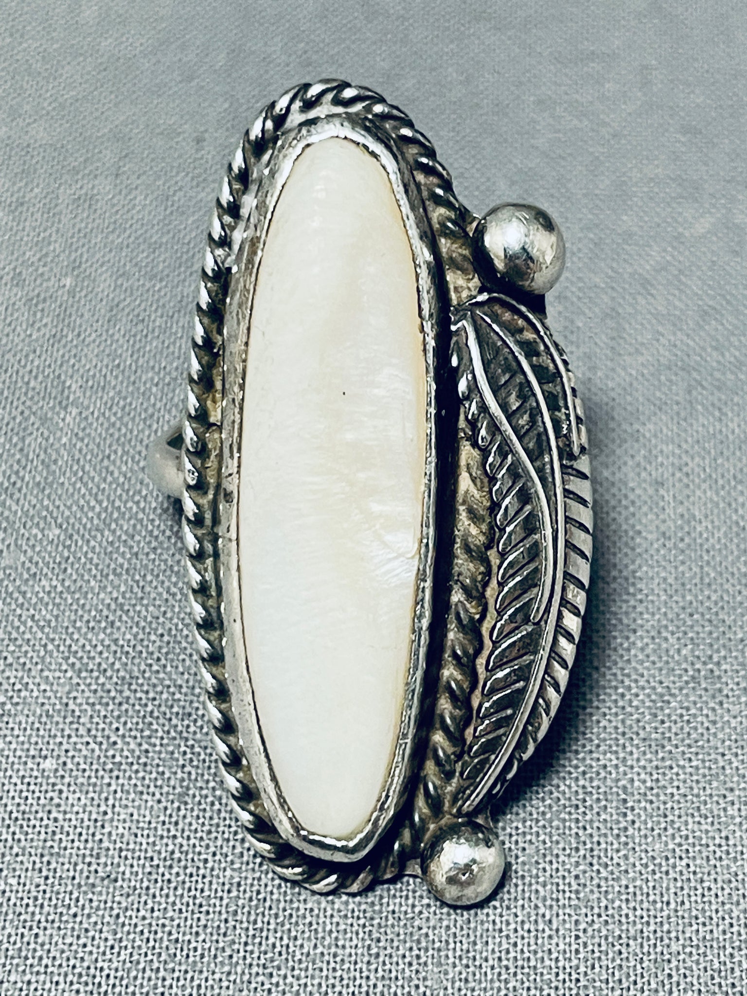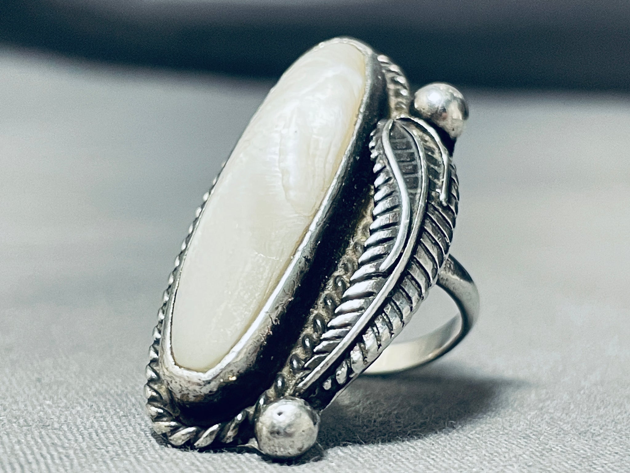 Taller Vintage Native American Navajo Pearl Sterling Silver Leaf Ring Old