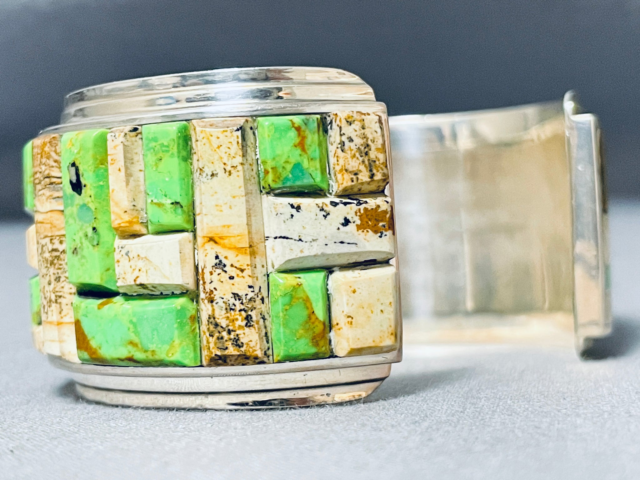 The Best Gaspeite Native American Navajo Sterling Silver Tan Stone Bracelet