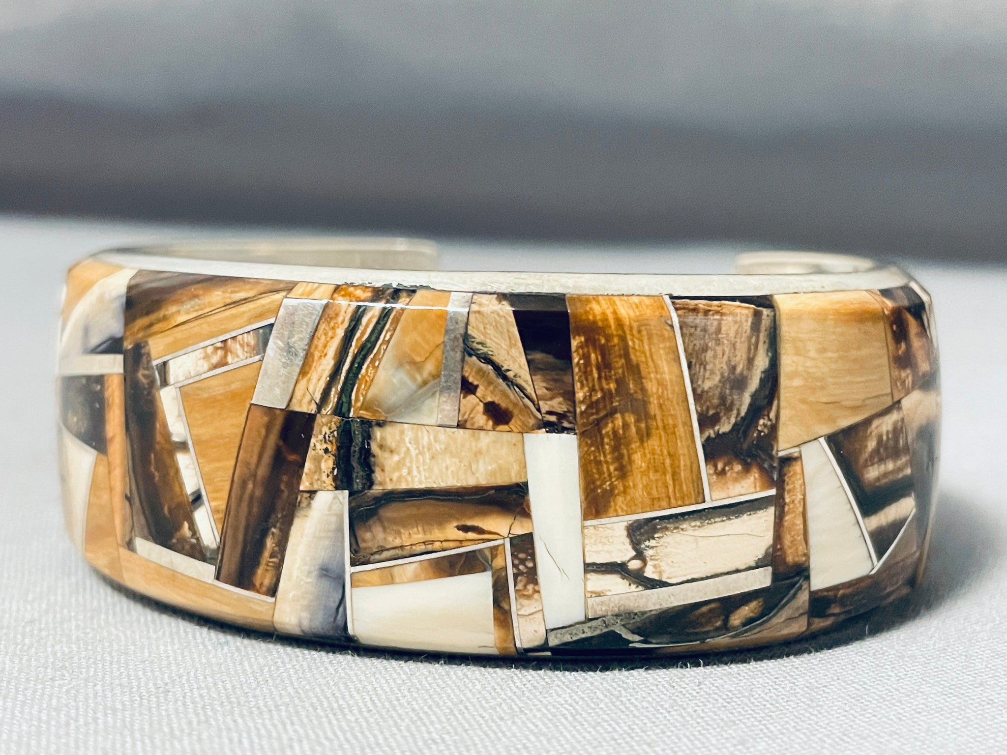 The Best Native American Navajo Inlaid Agate Sterling Silver Bracelet