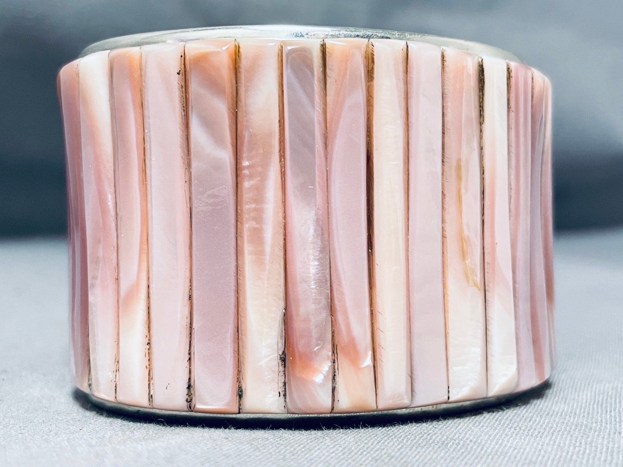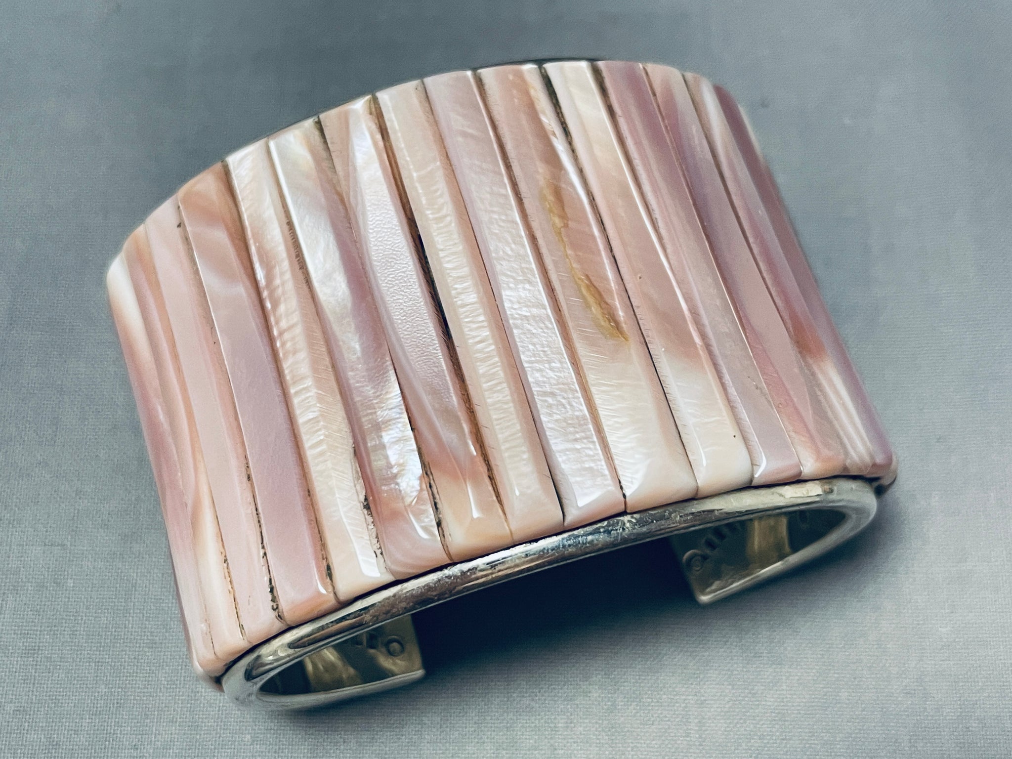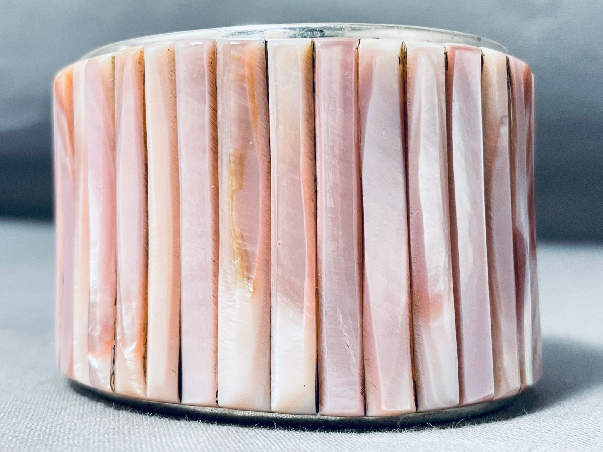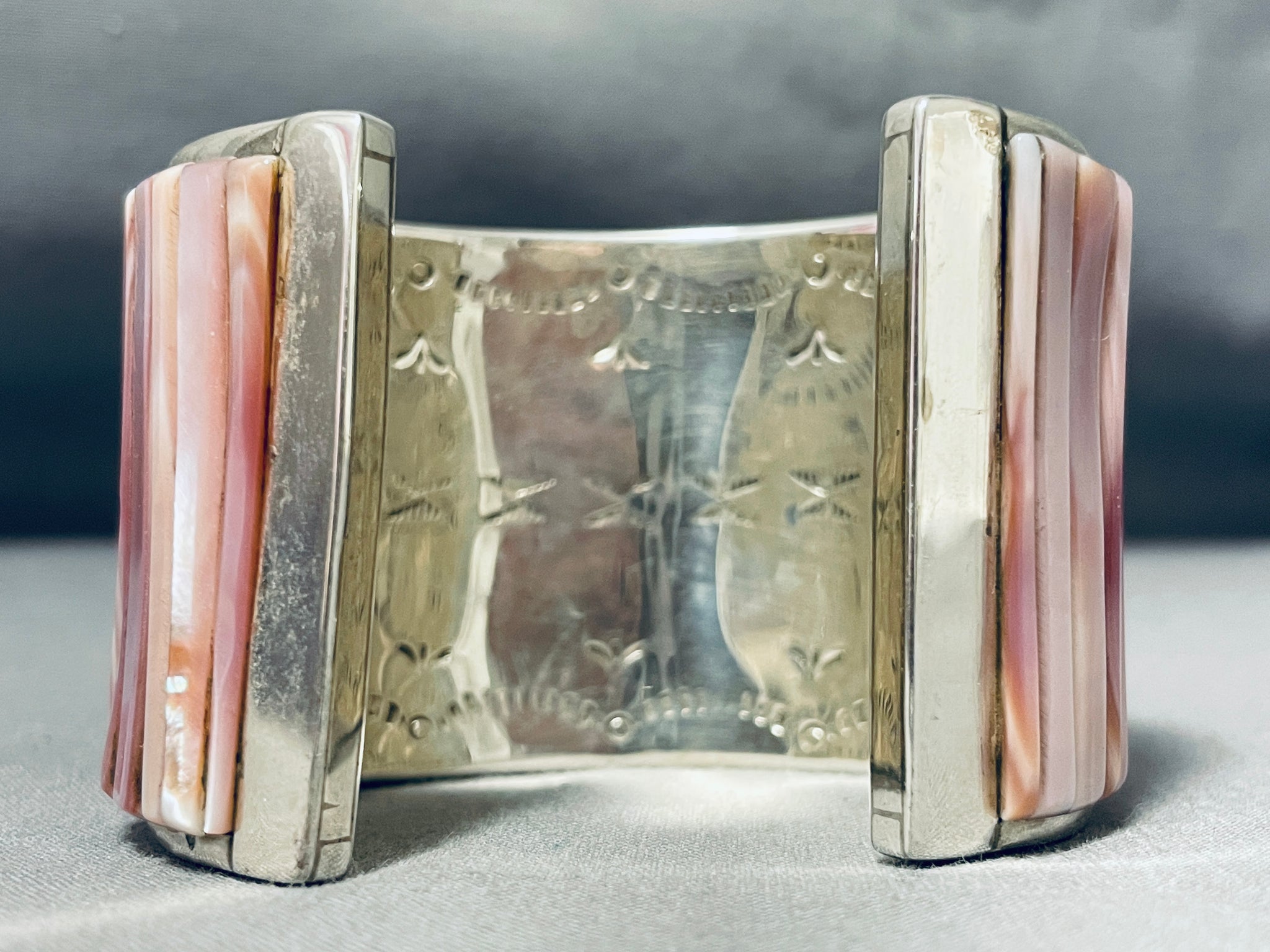 The Best Native American Navajo Pink Inlay Wide Sterling Silver Bracelet