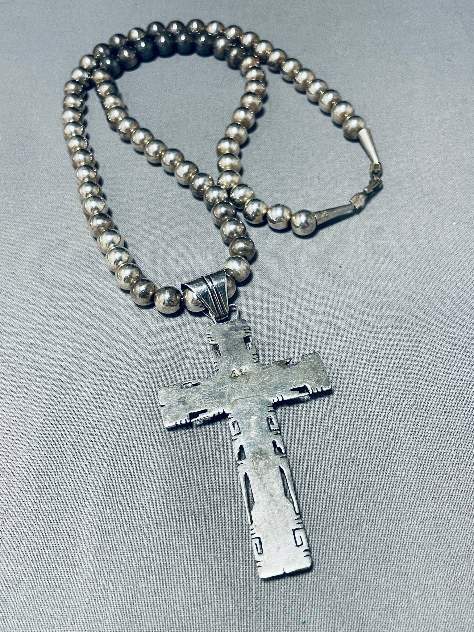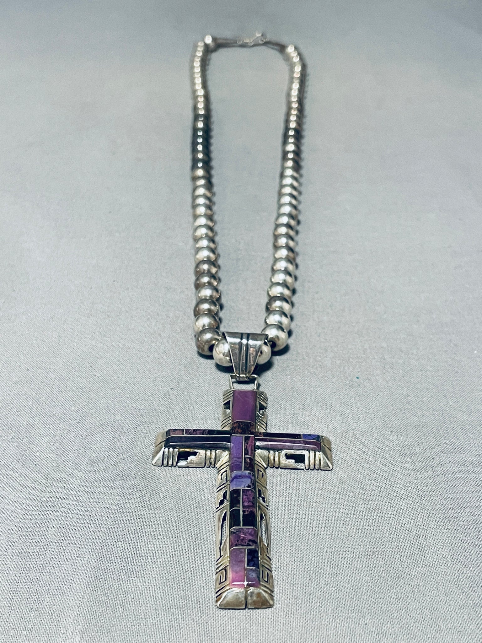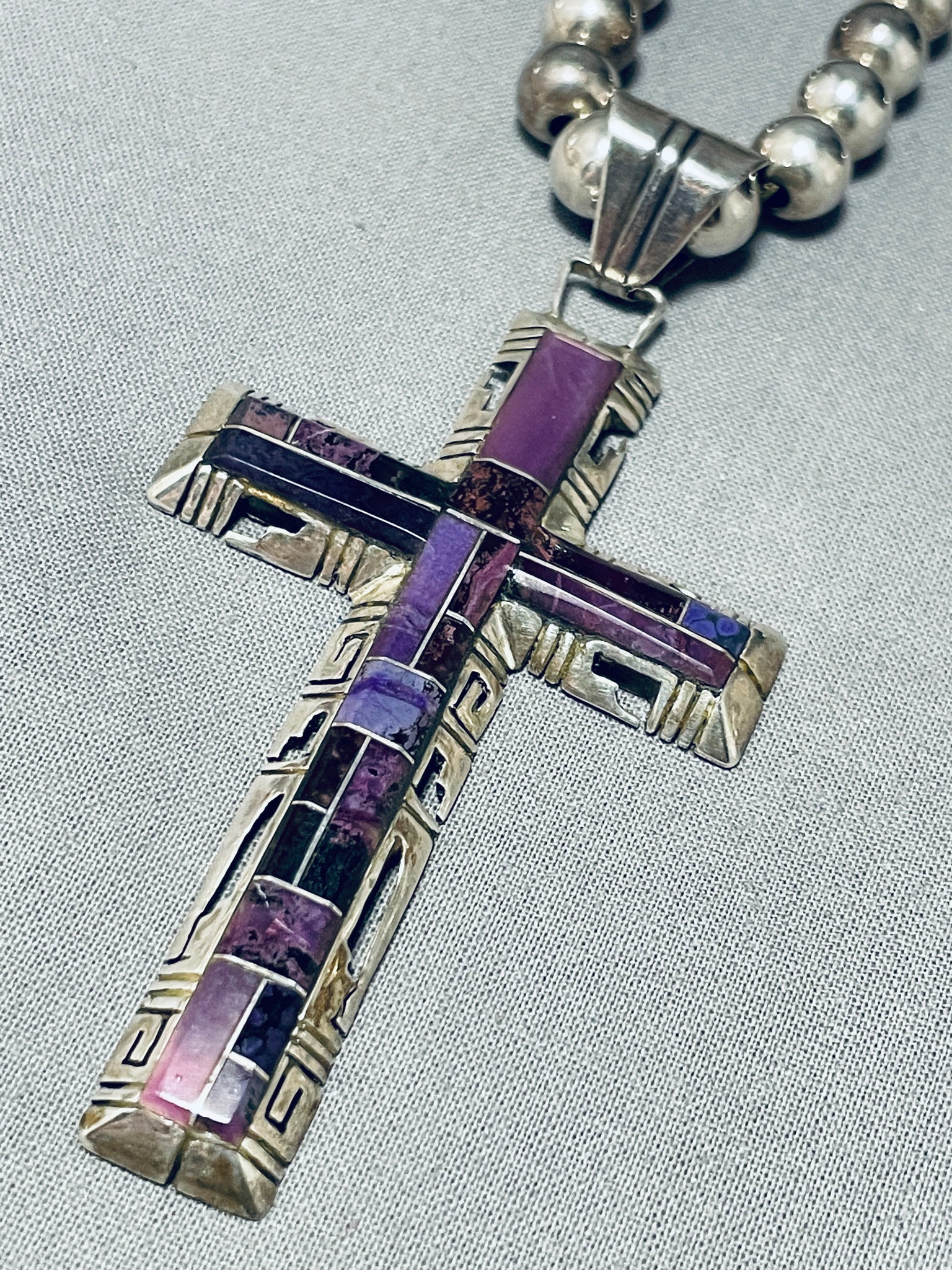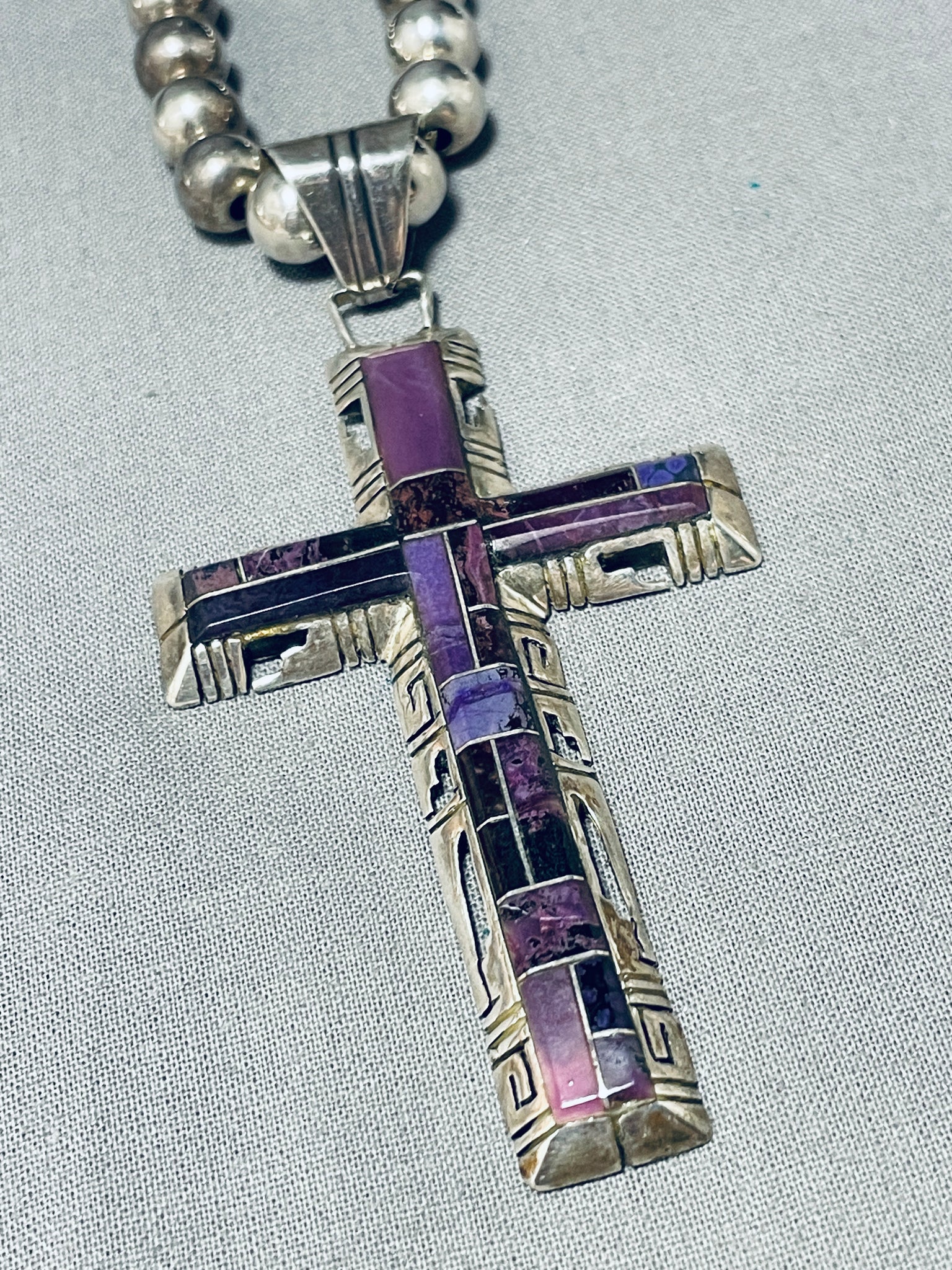 The Best Vintage Native American Navajo Charoite Cross Sterling Silver Necklace