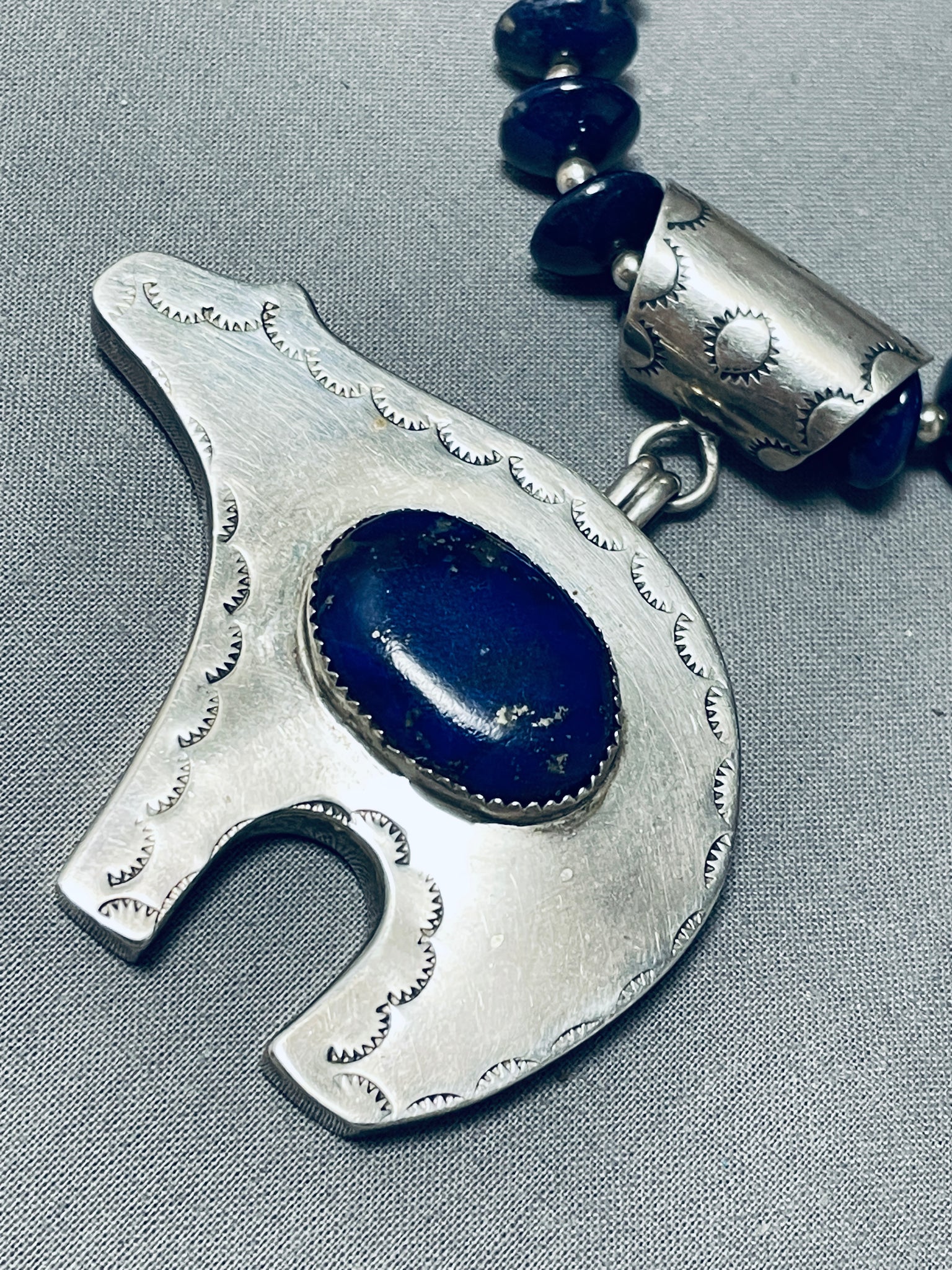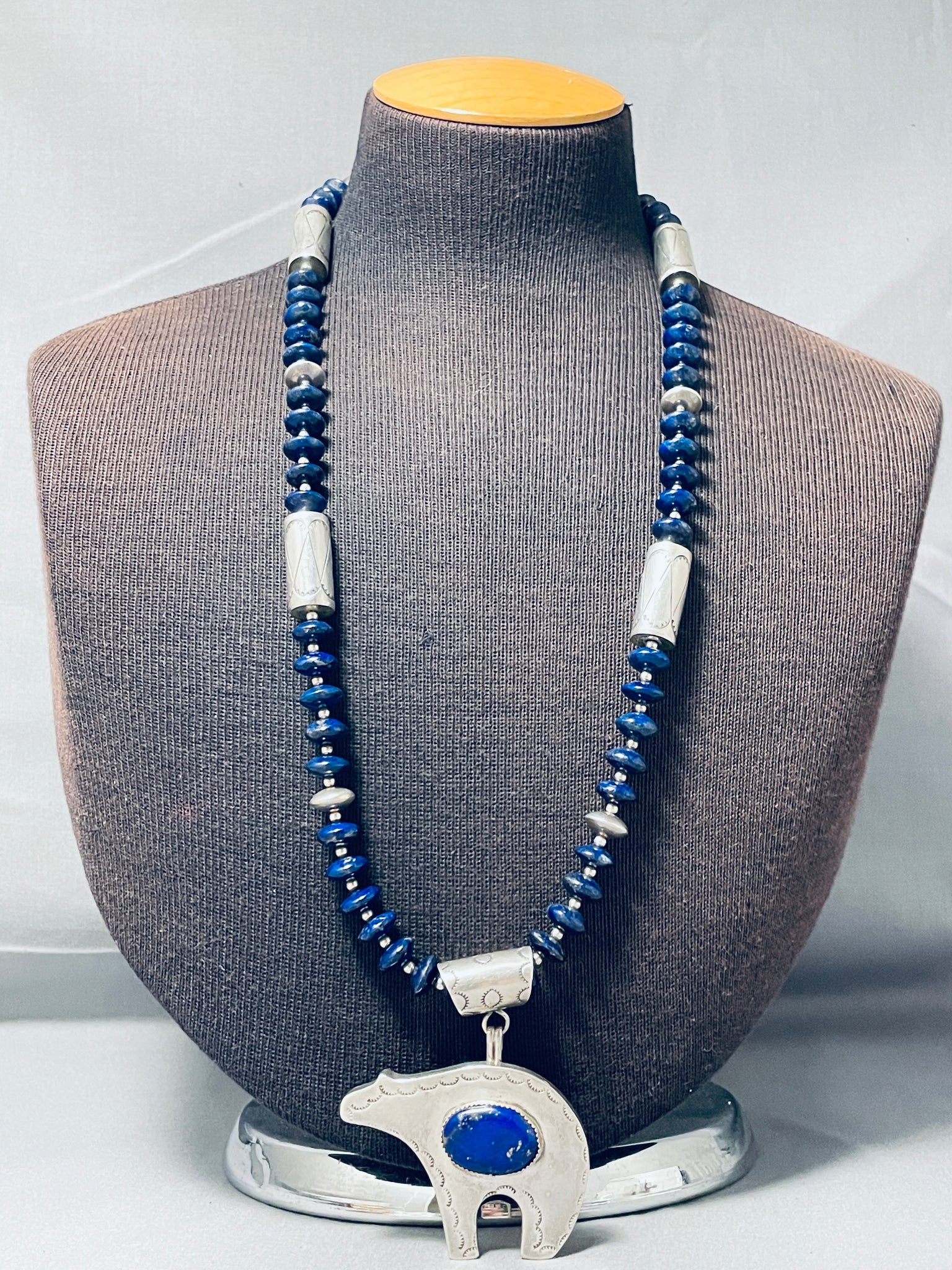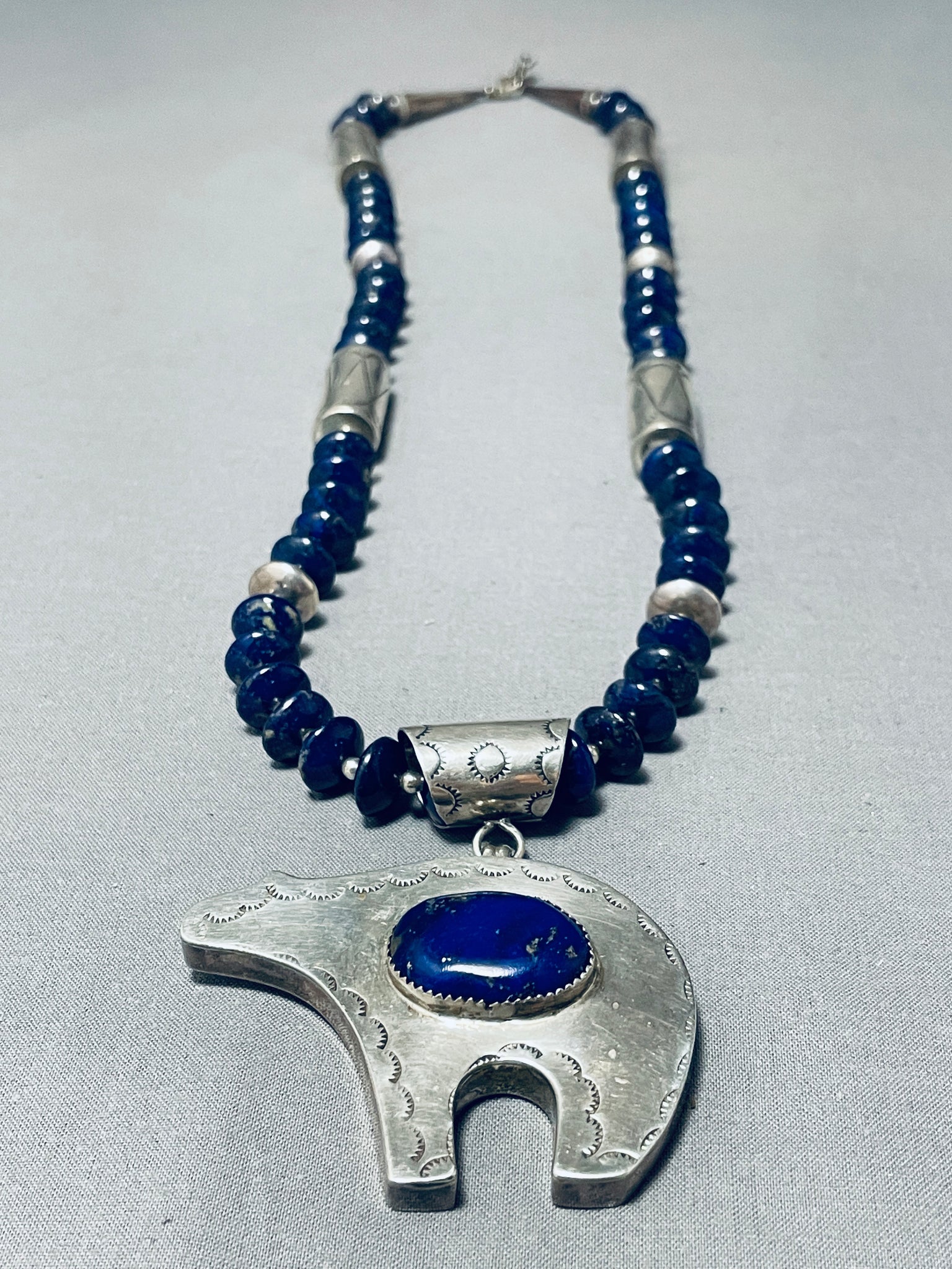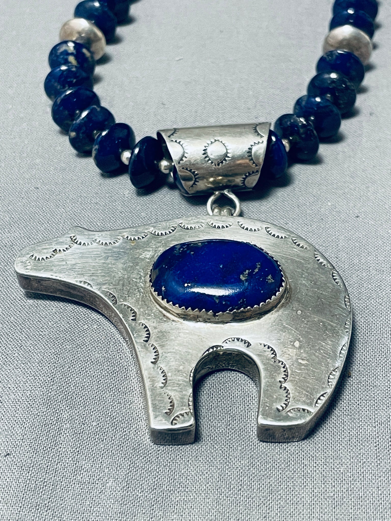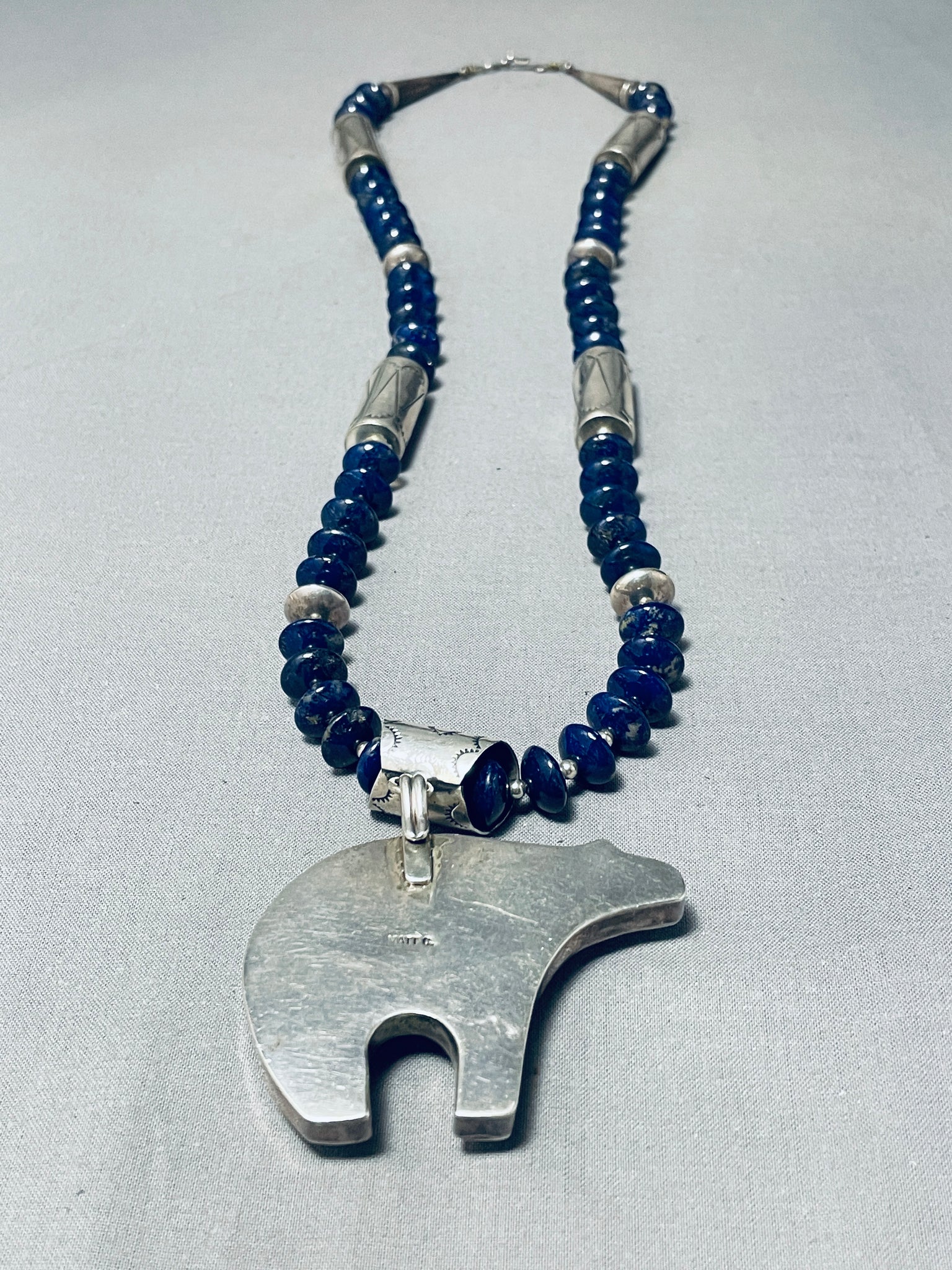 The Best Vintage Native American Navajo Lapis Bear Sterling Silver Necklace- Signed