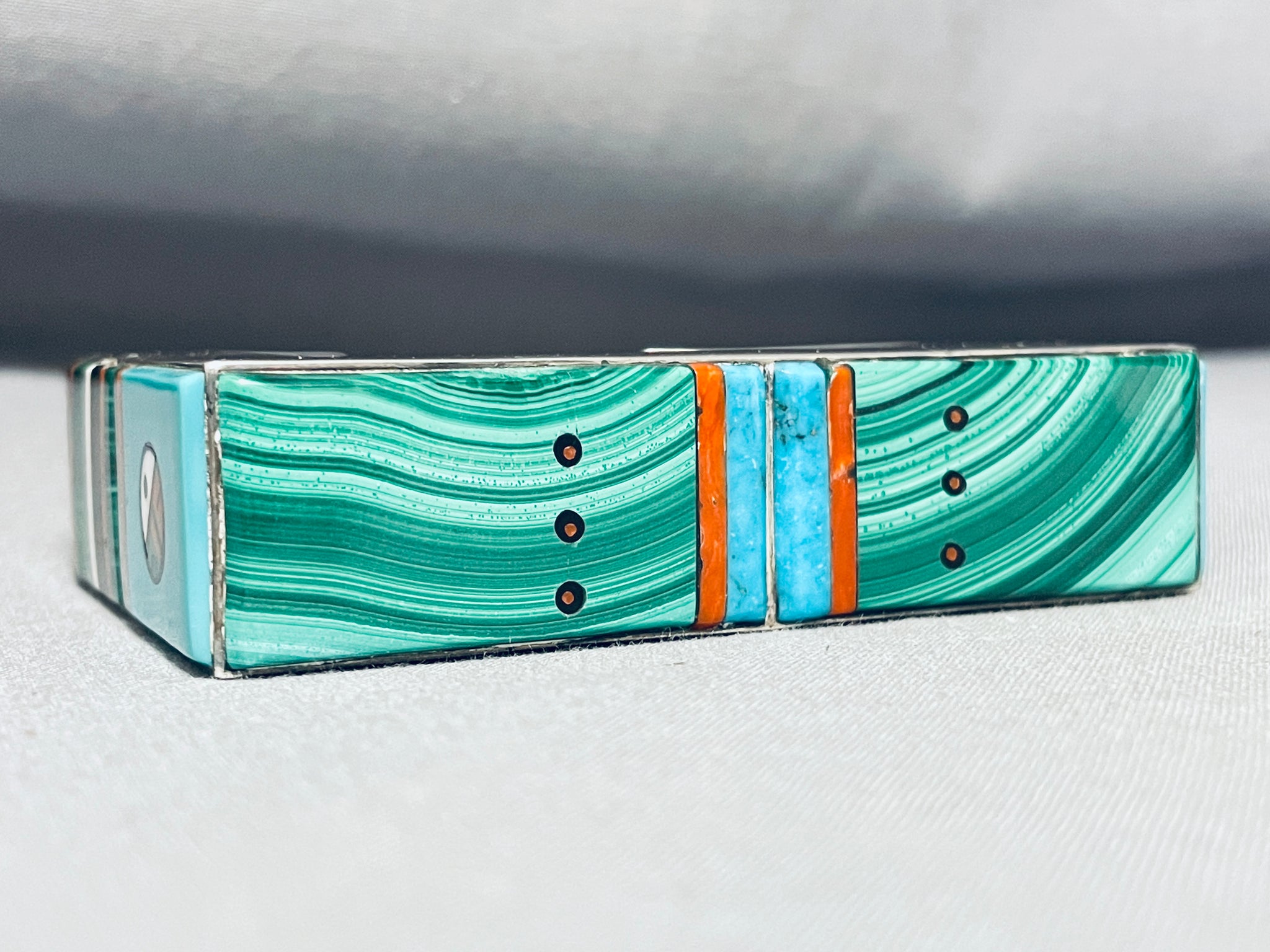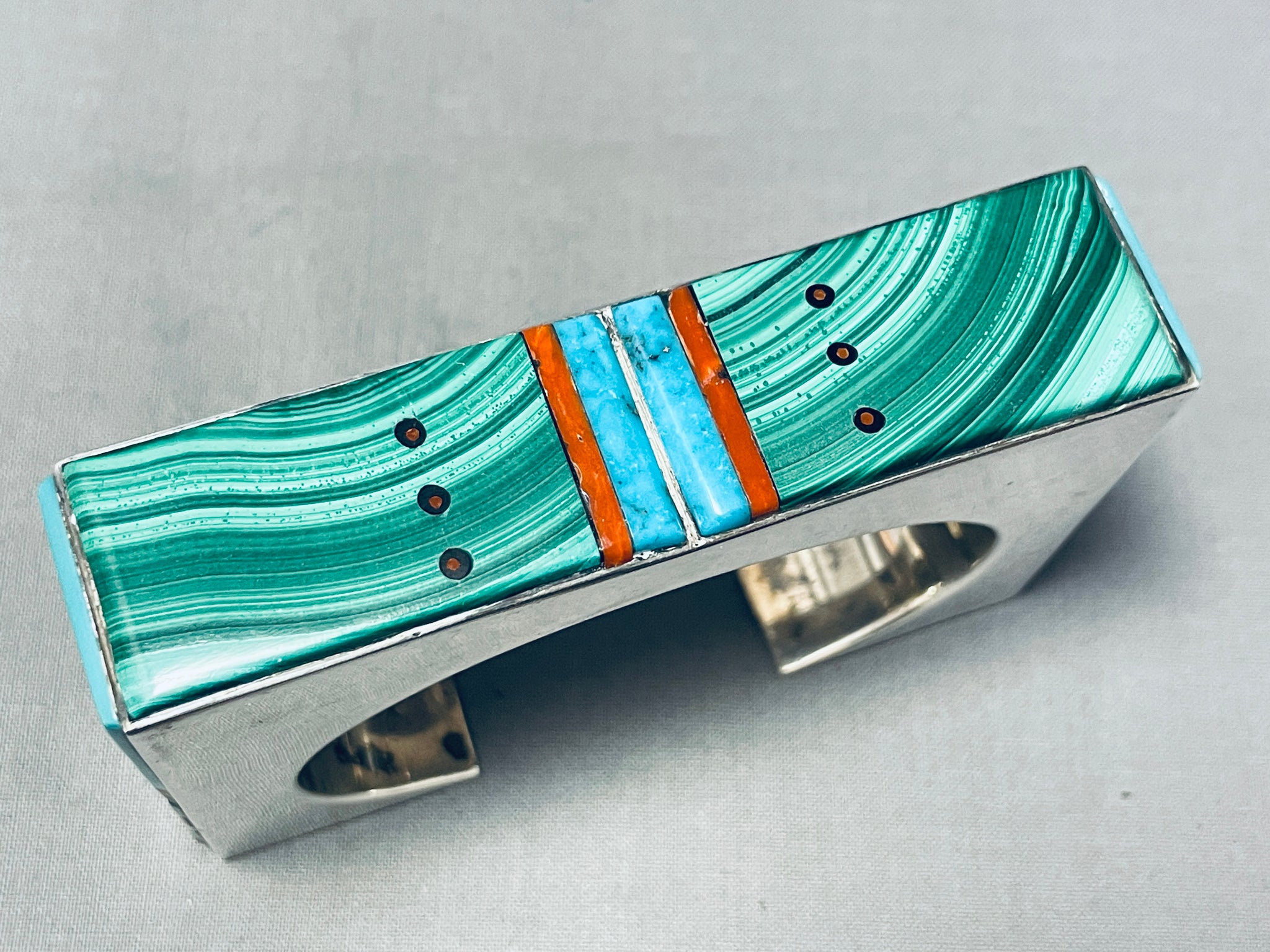 The Best Vintage Native American Navajo Malachite Turquoise Sterling Silver Bracelet