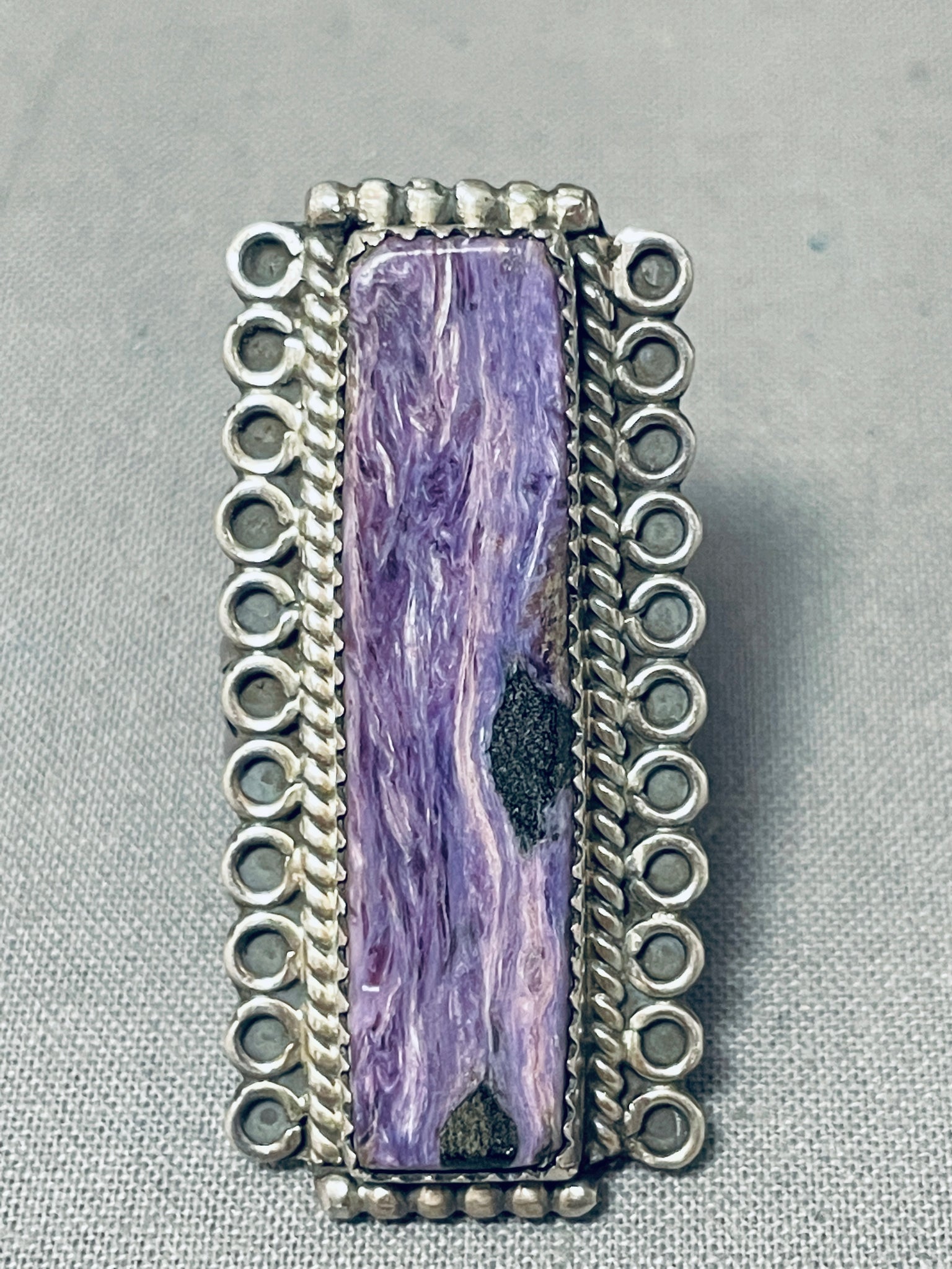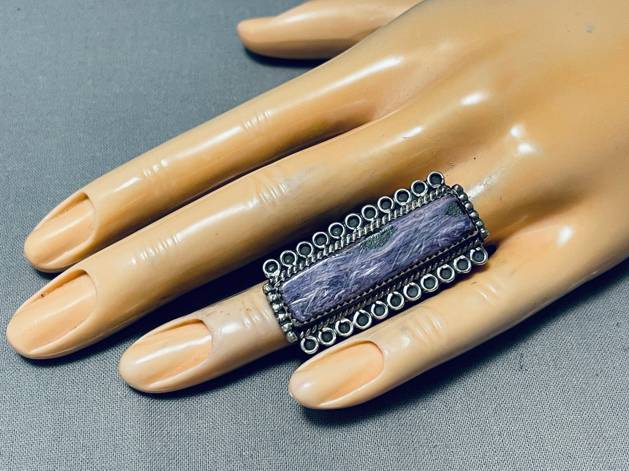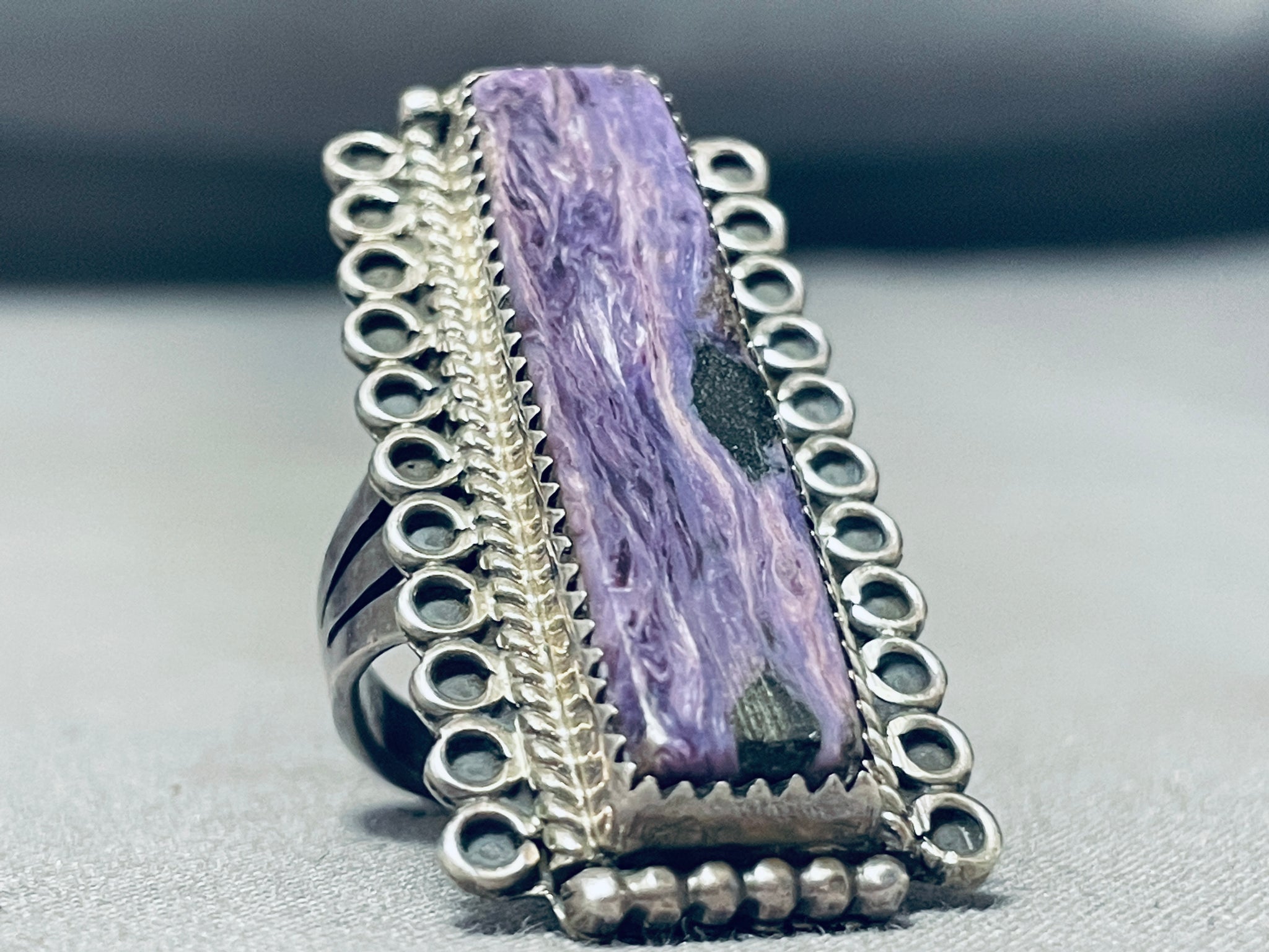 The Best Vintage Native American Navajo Rectangle Charoite Sterling Silver Ring Old