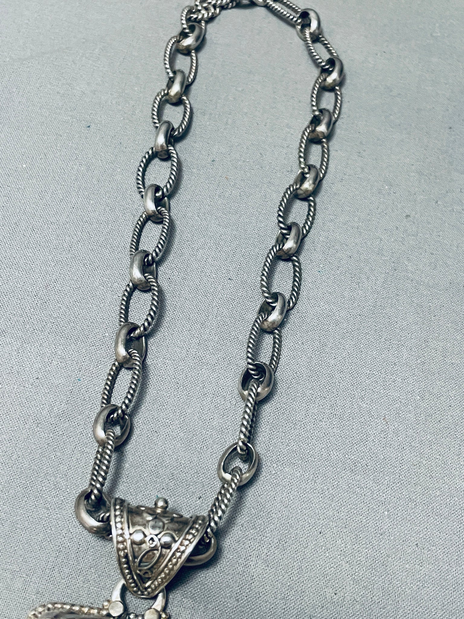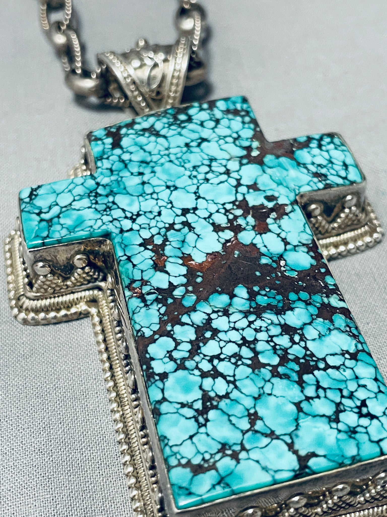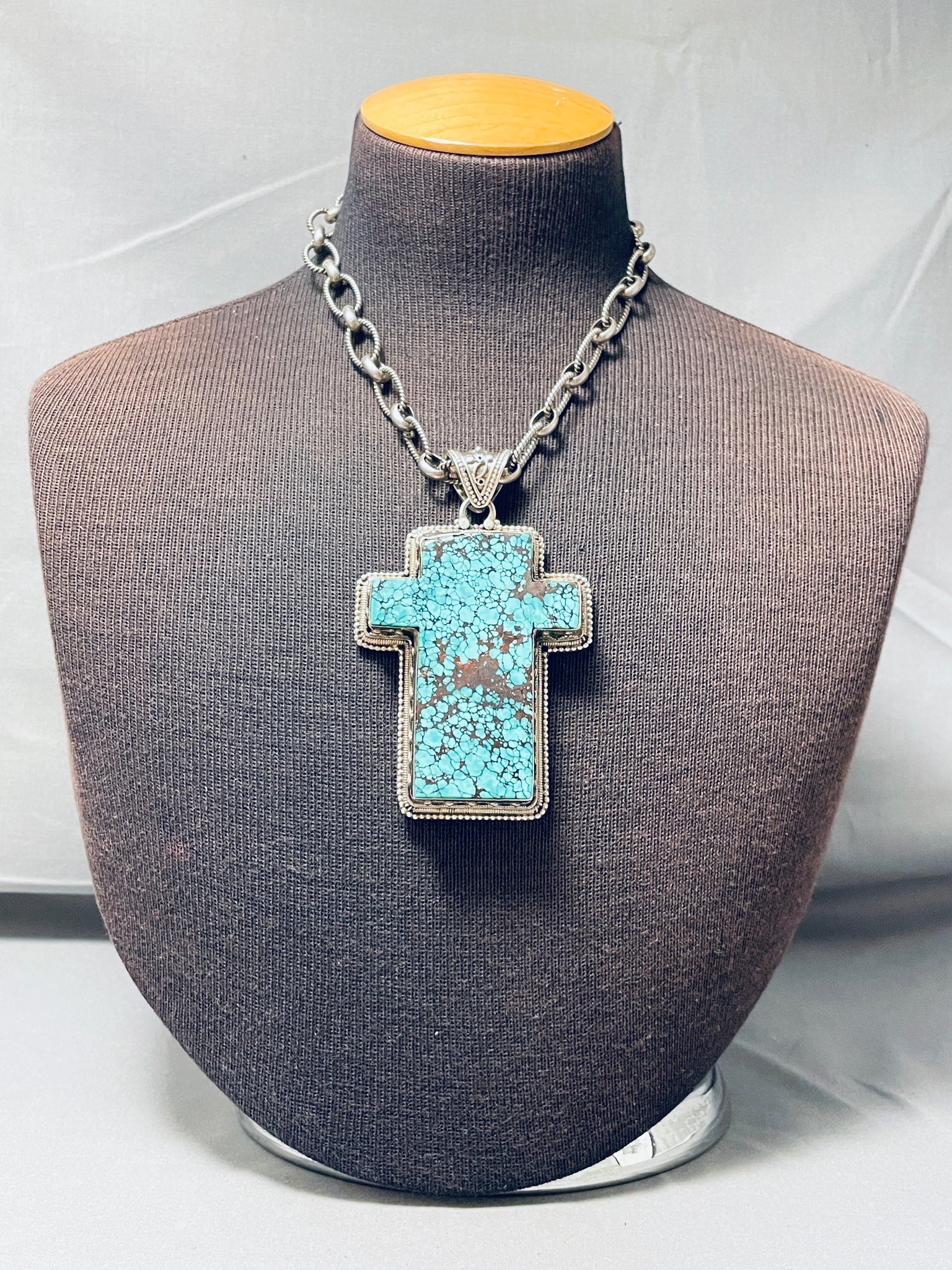 The Chunkiest Vintage Southwestern Turquoise Cross Sterling Silver Necklace