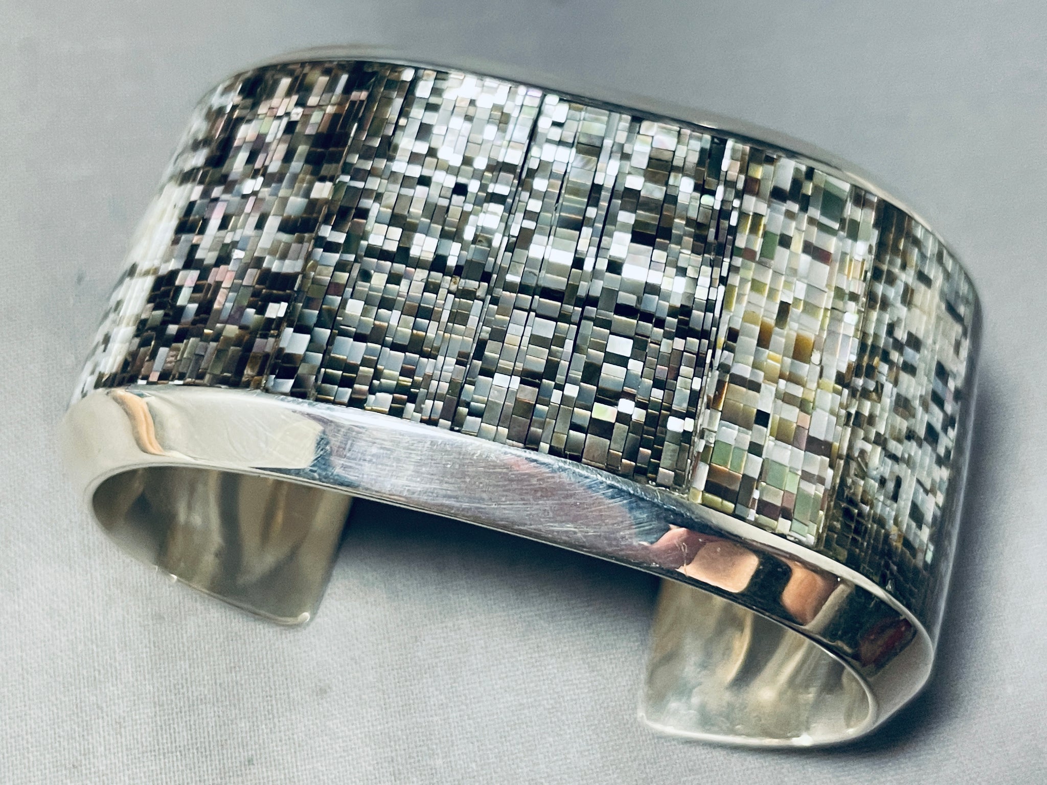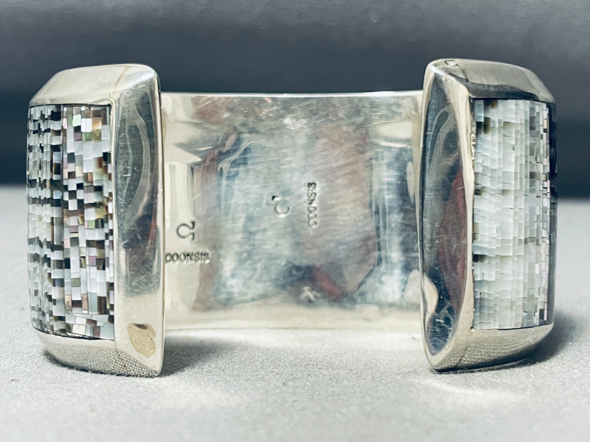 The Most Intricate Vintage Native American Zuni Peal Sterling Silver Bracelet