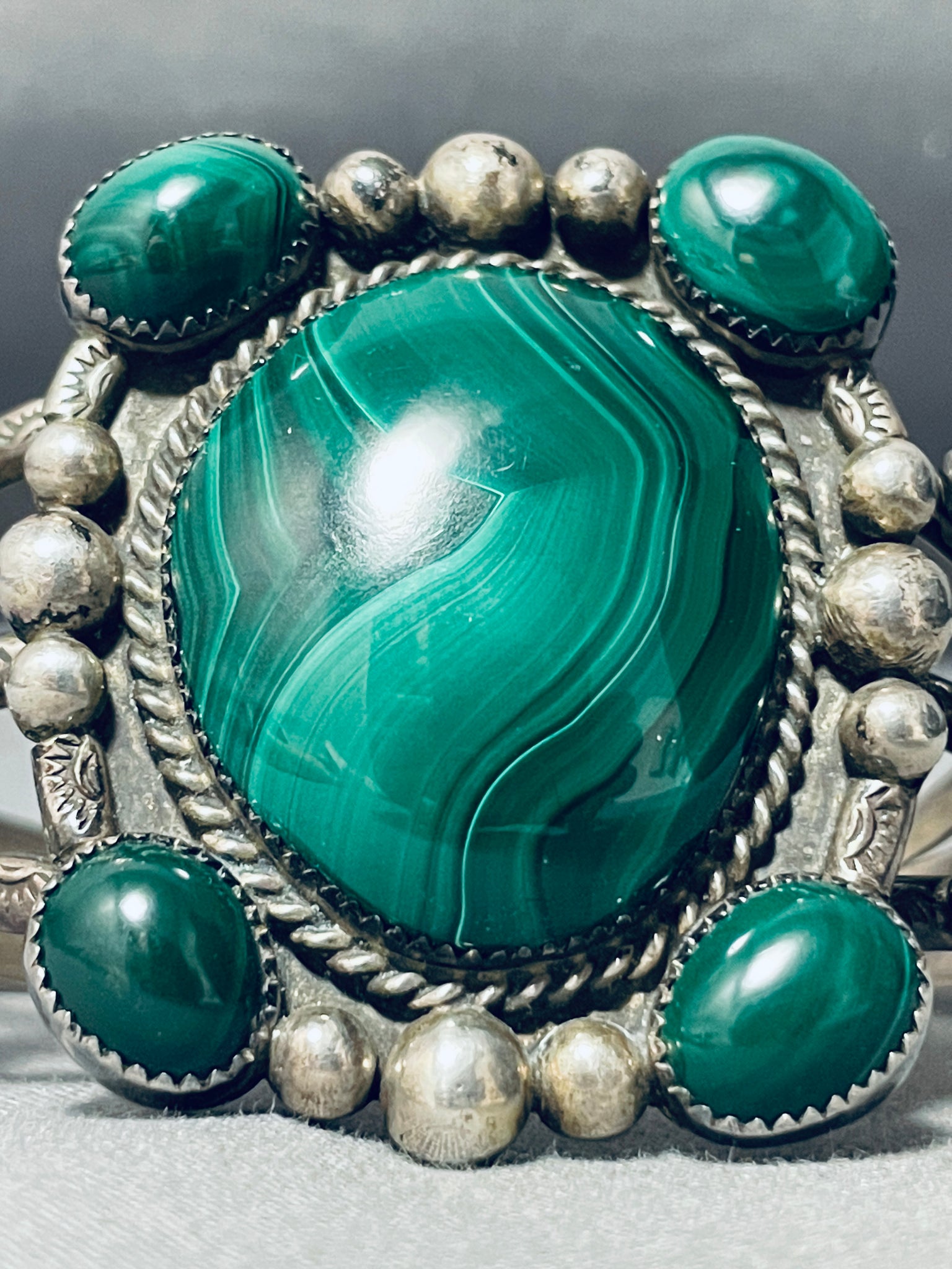 The Most Unique Vintage Native American Navajo Malachite Sterling Silver Bracelet Old