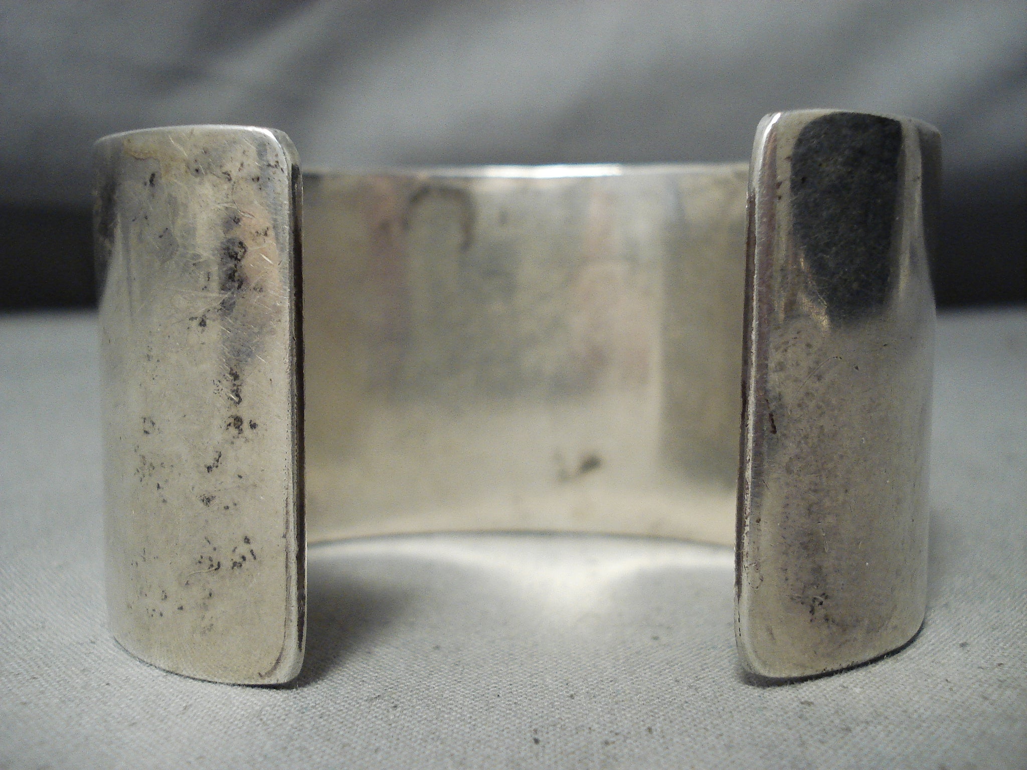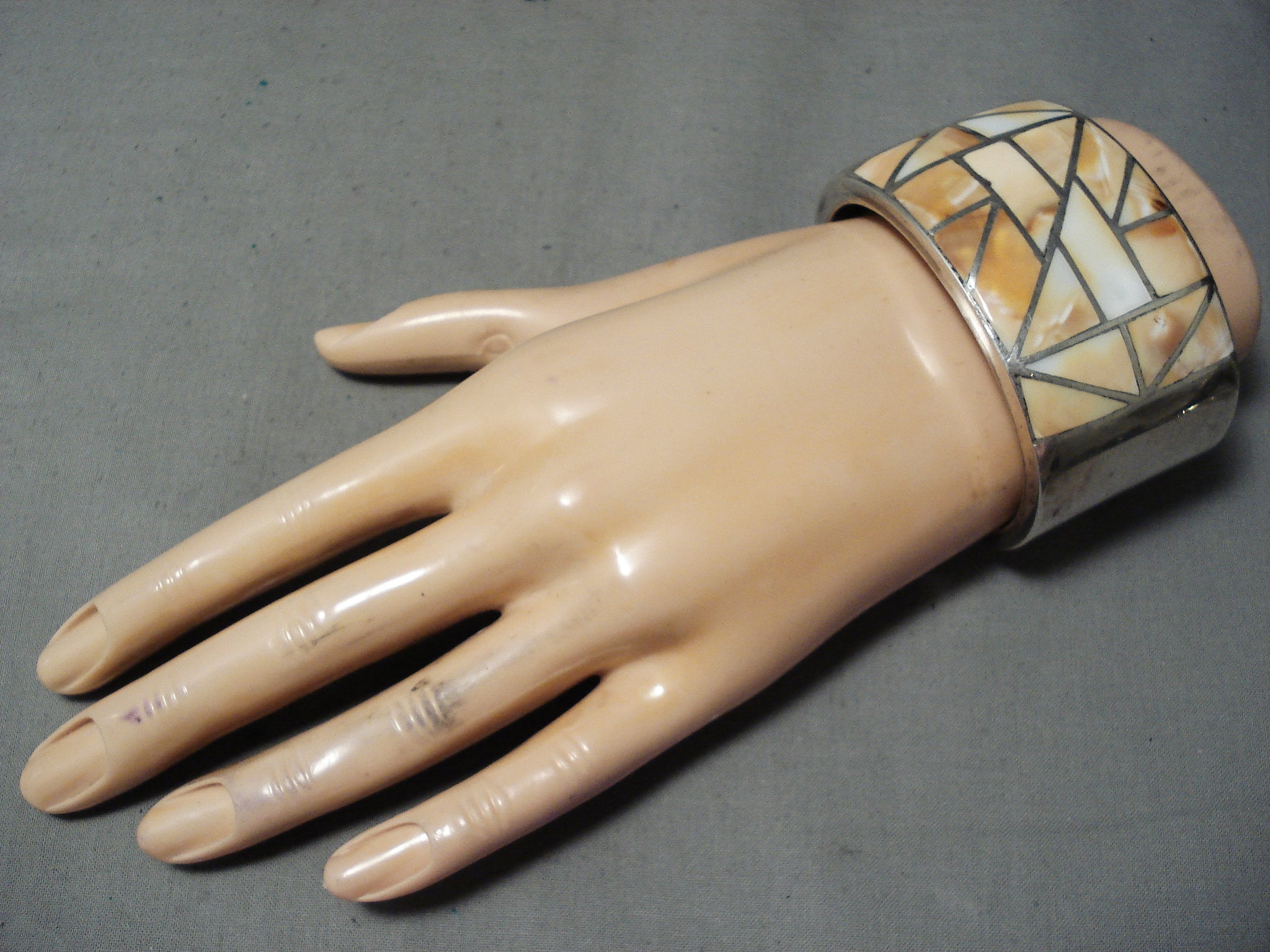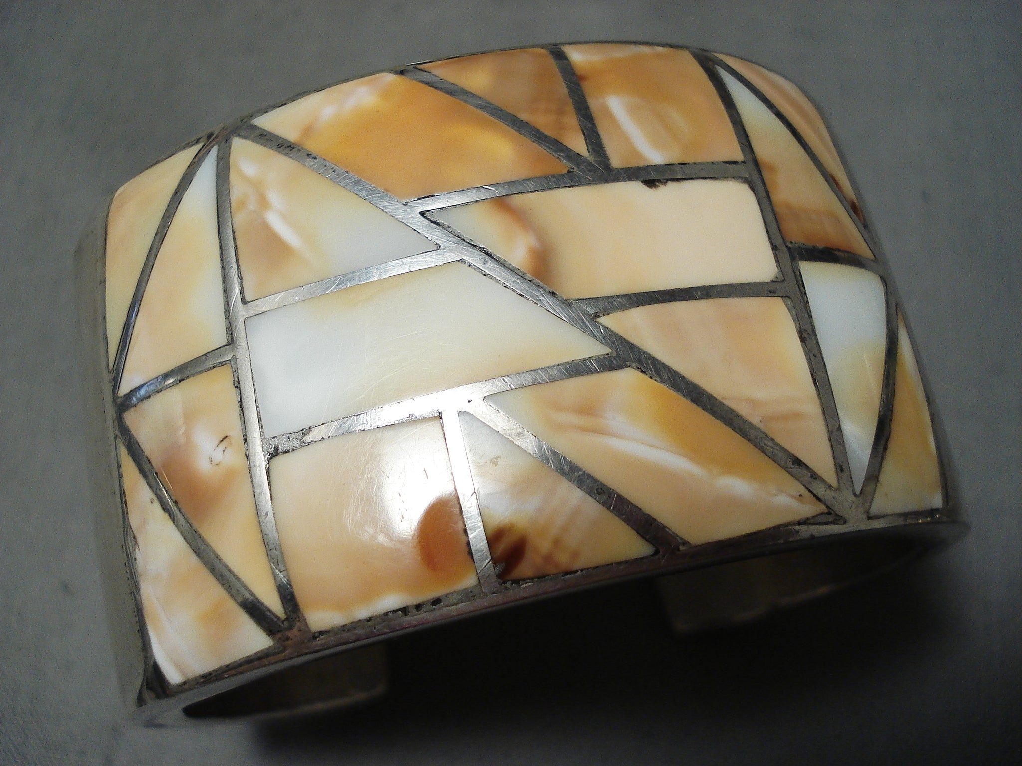 Thick 140 Gram Heavy Wide Vintage Native American Navajo Shell Sterling Silver Bracelet