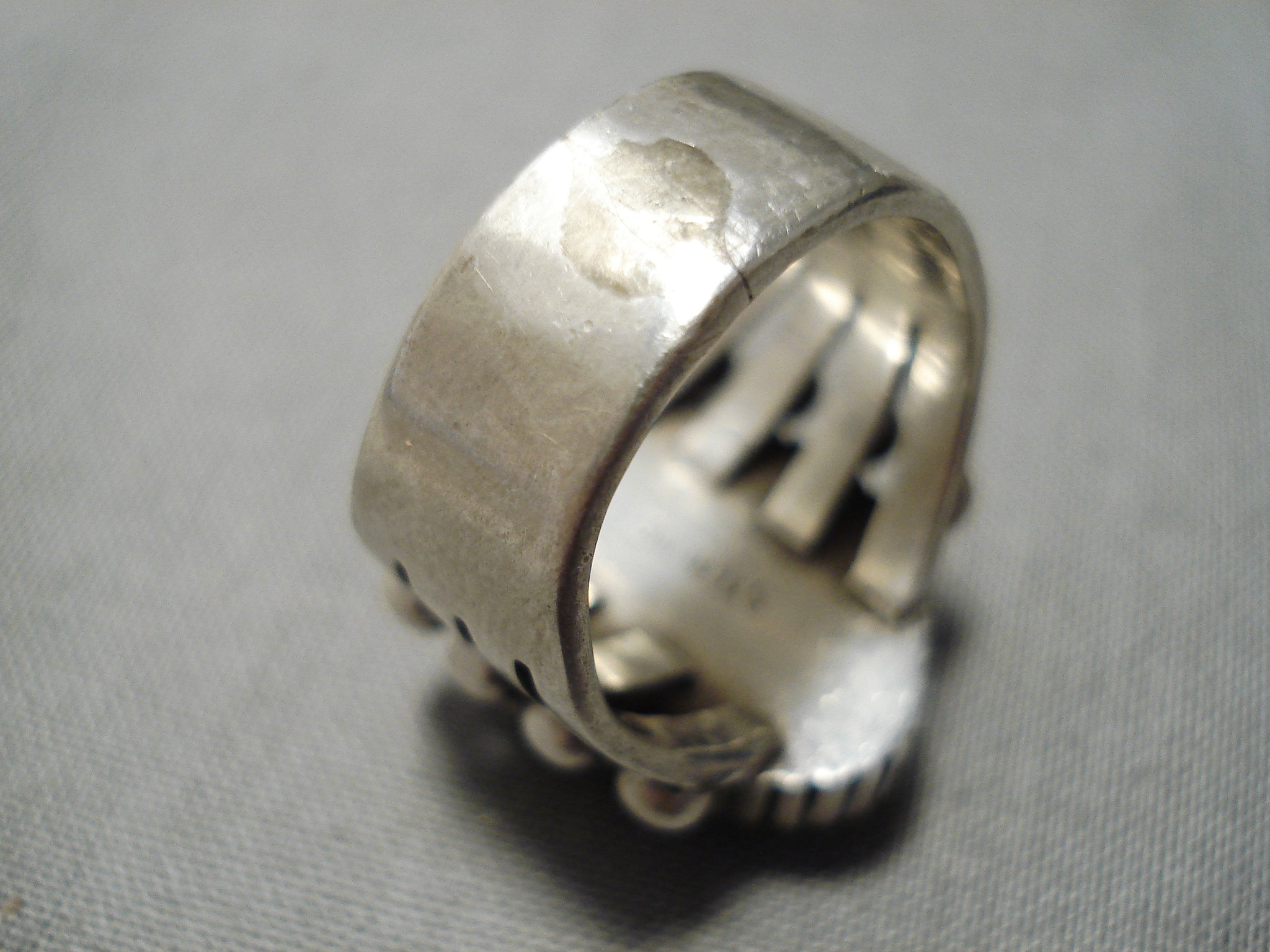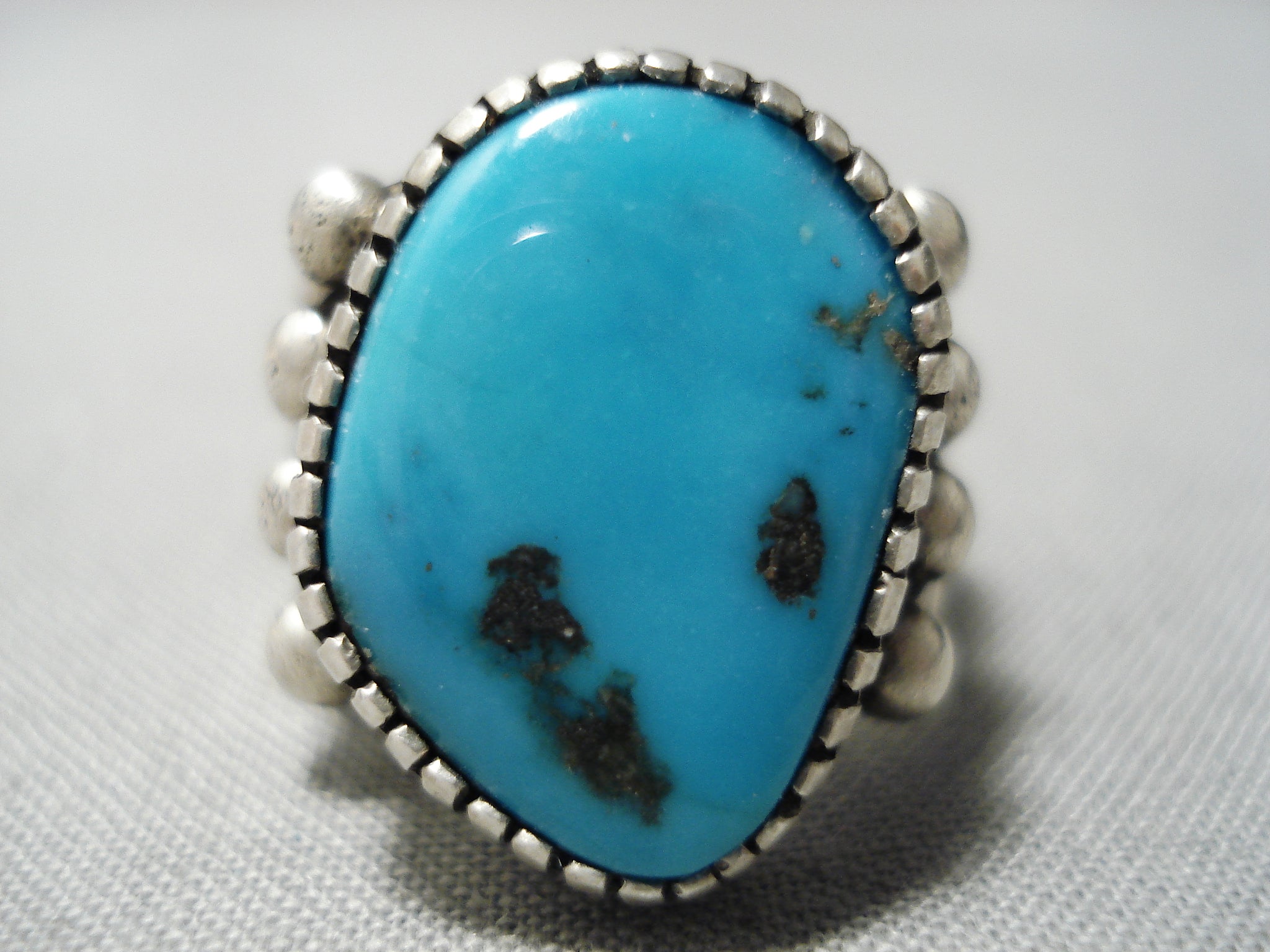 Thick And Heavy!! Vintage Native American Navajo Deep Blue Turquoise Sterling Silver Ring