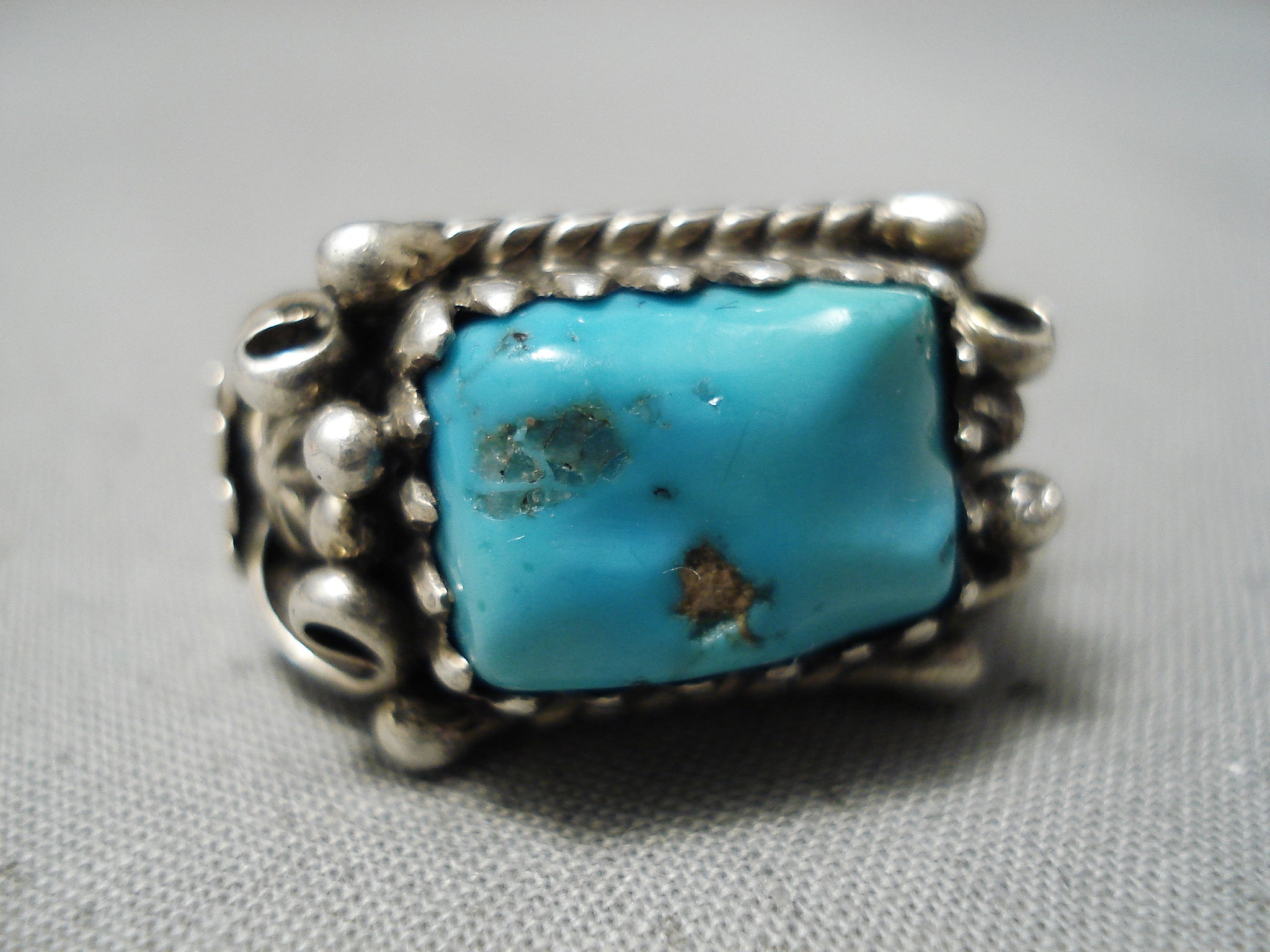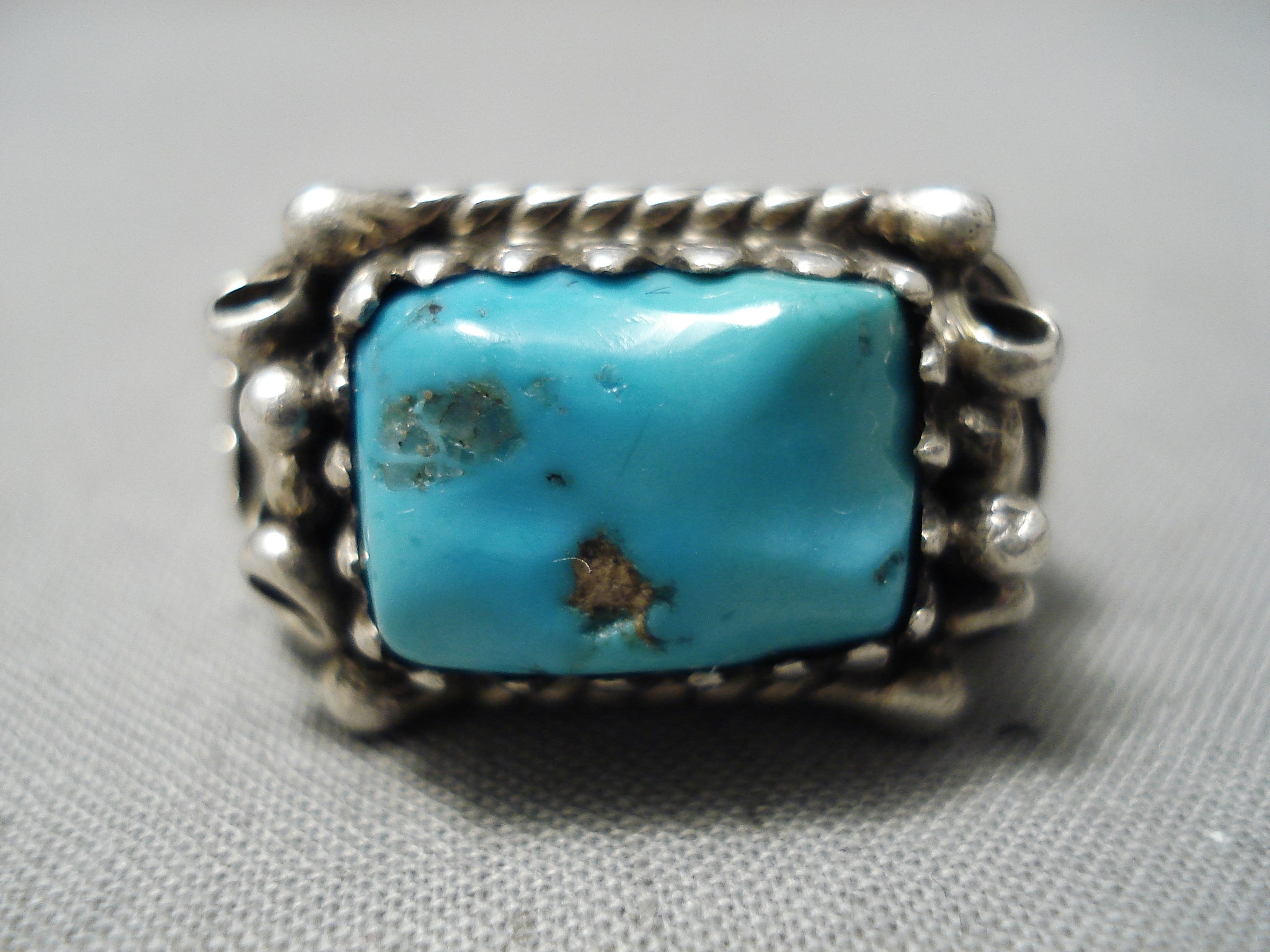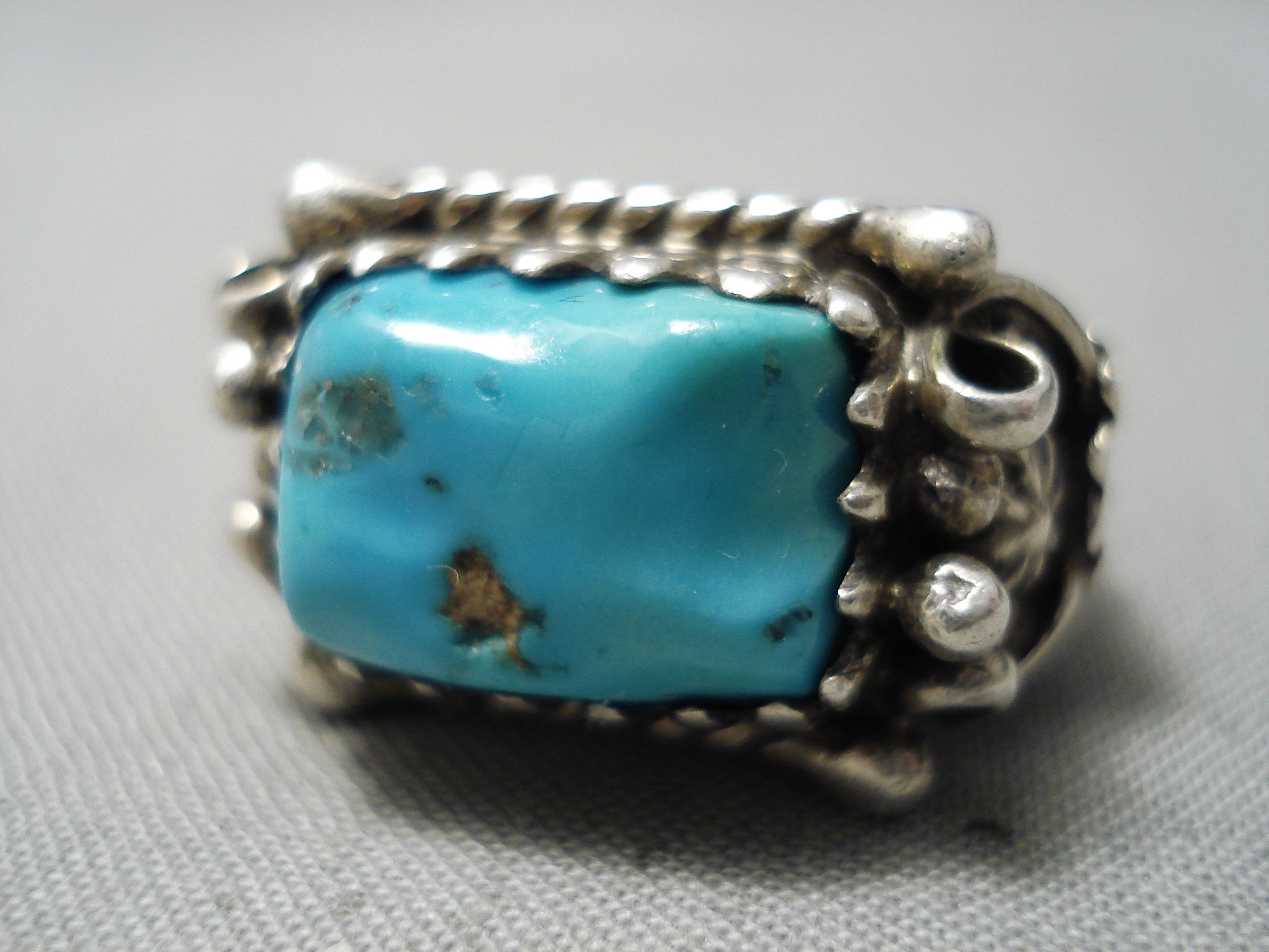 Thick And Heavy!! Vintage Native American Navajo Turquoise Sterling Silver Ring Old