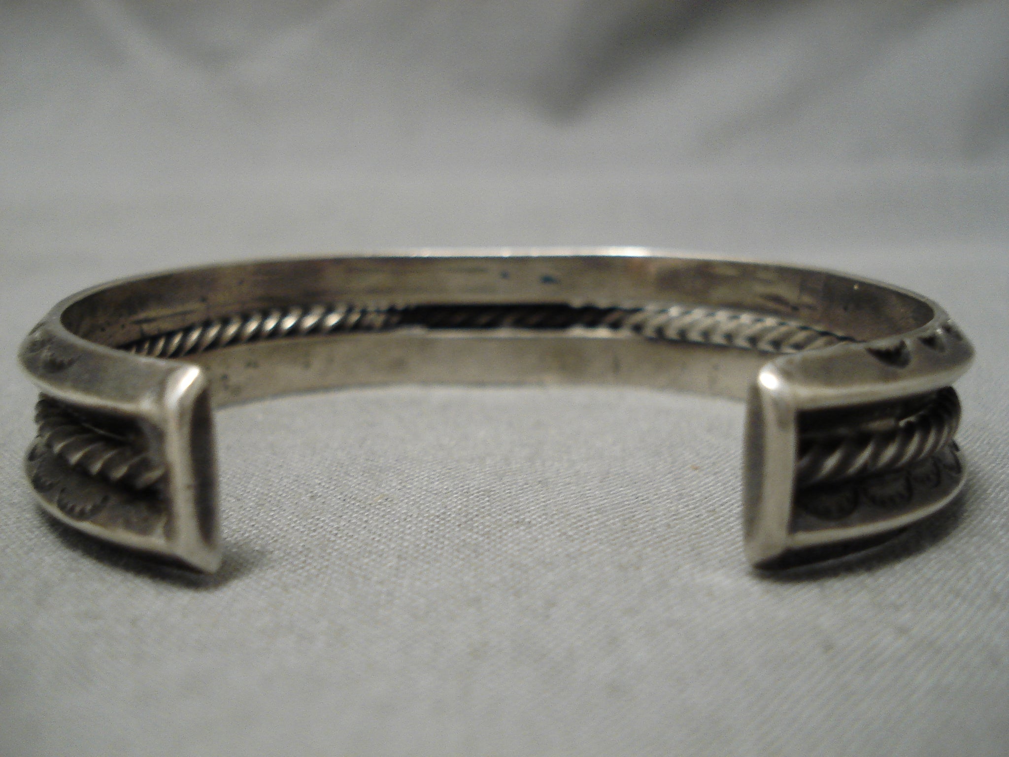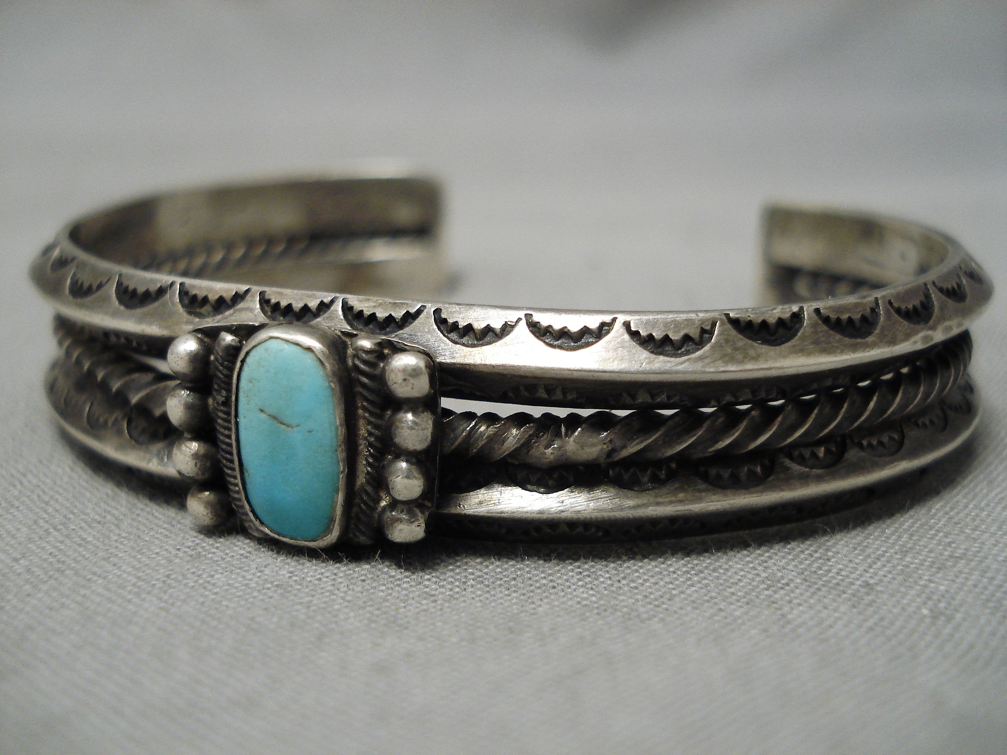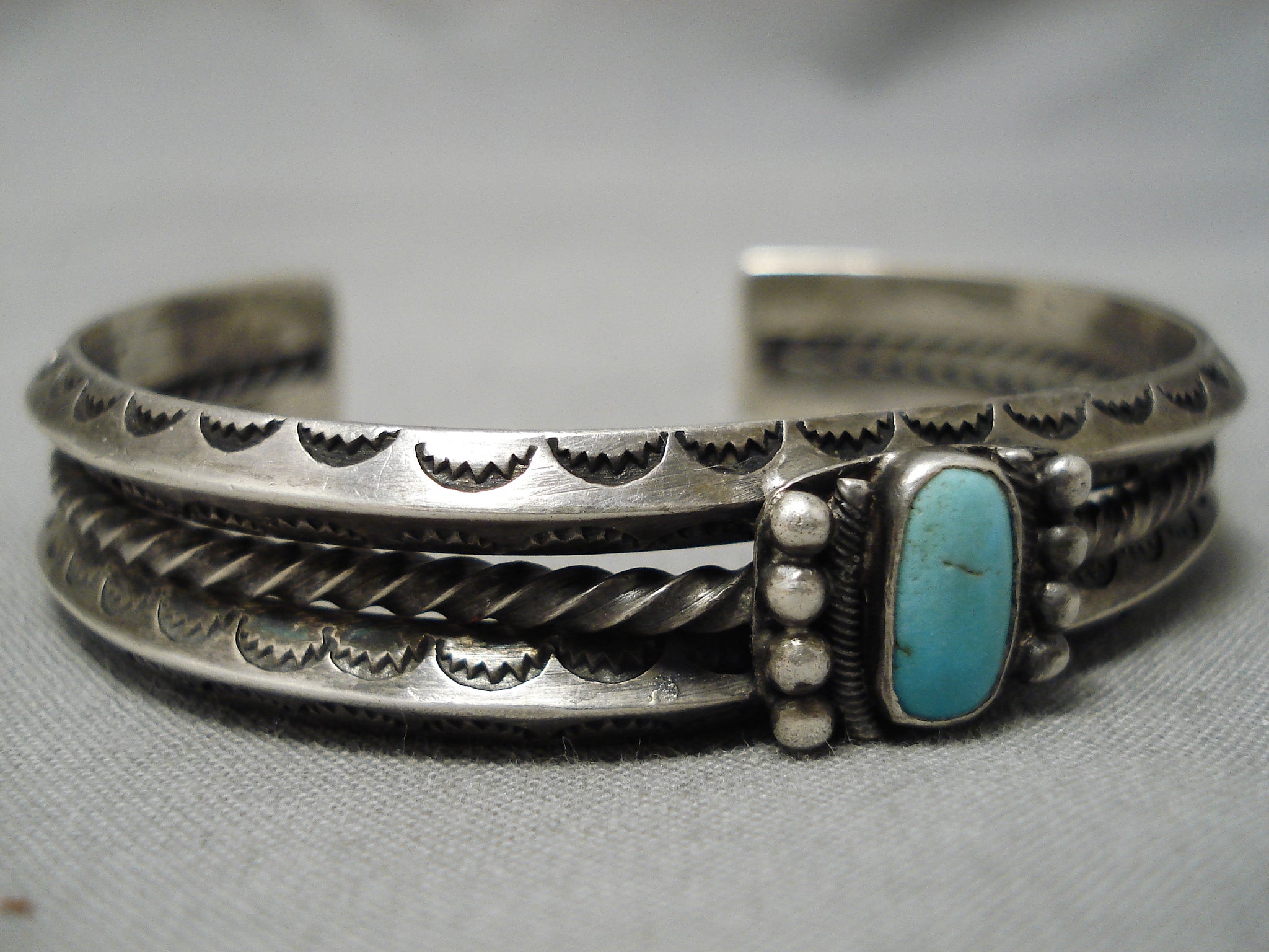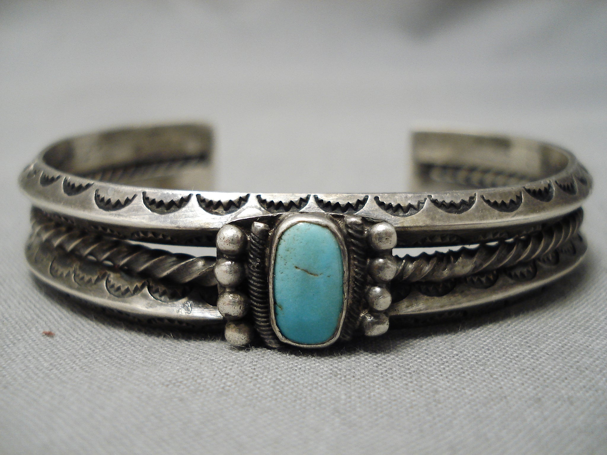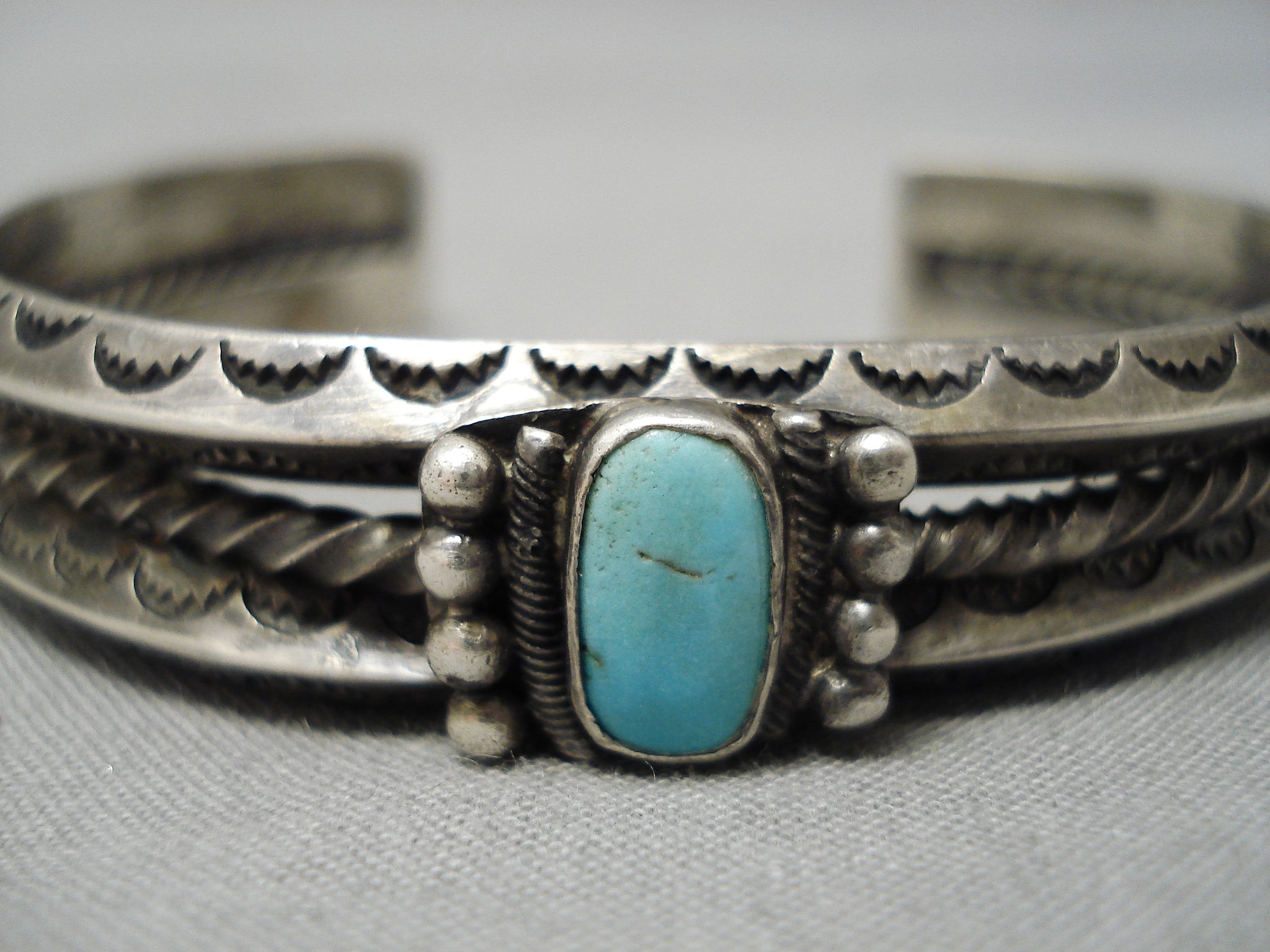 Thick And Very Old!! Vintage Native American Navajo Turquoise Sterling Silver Bracelet Old